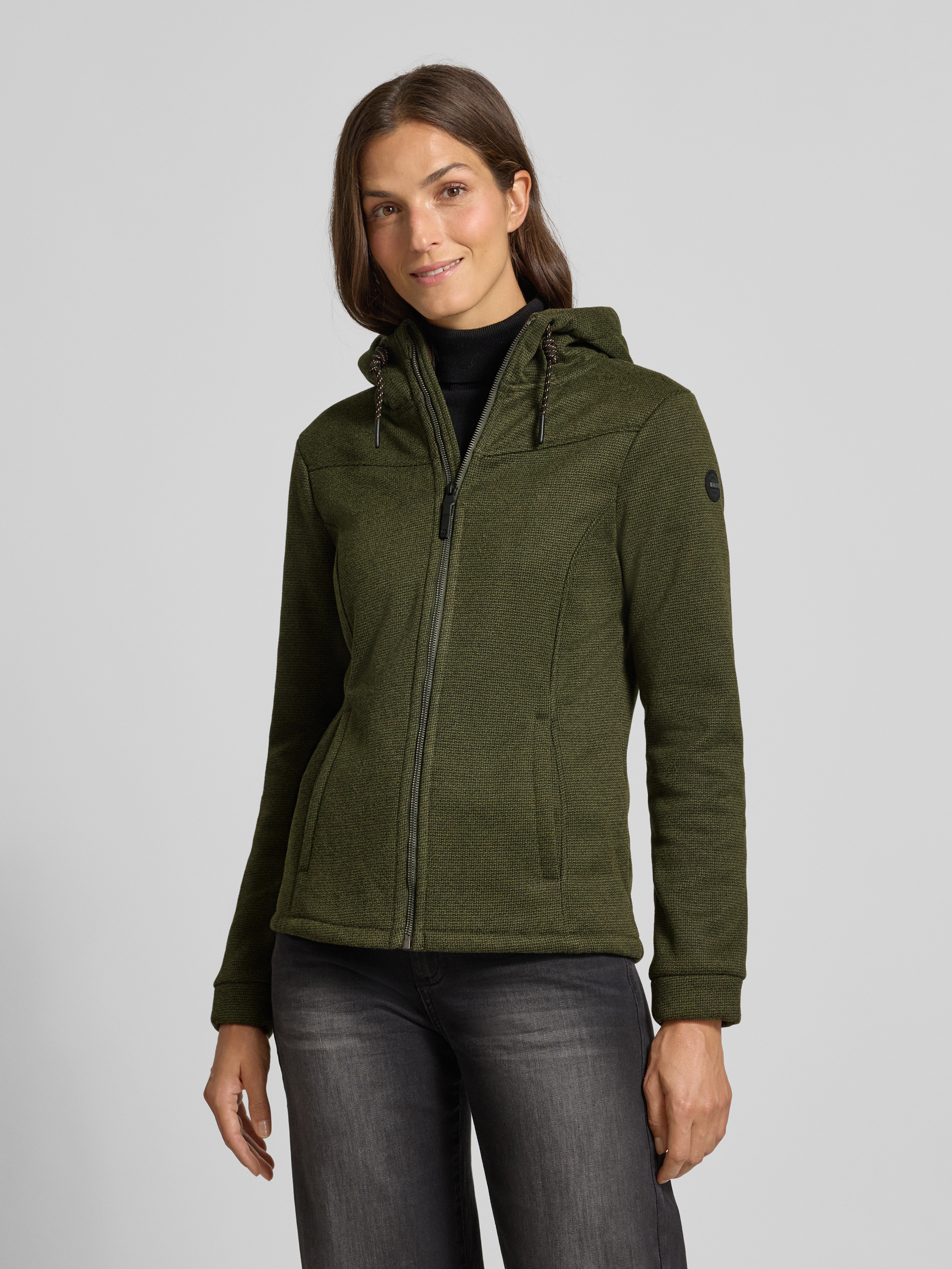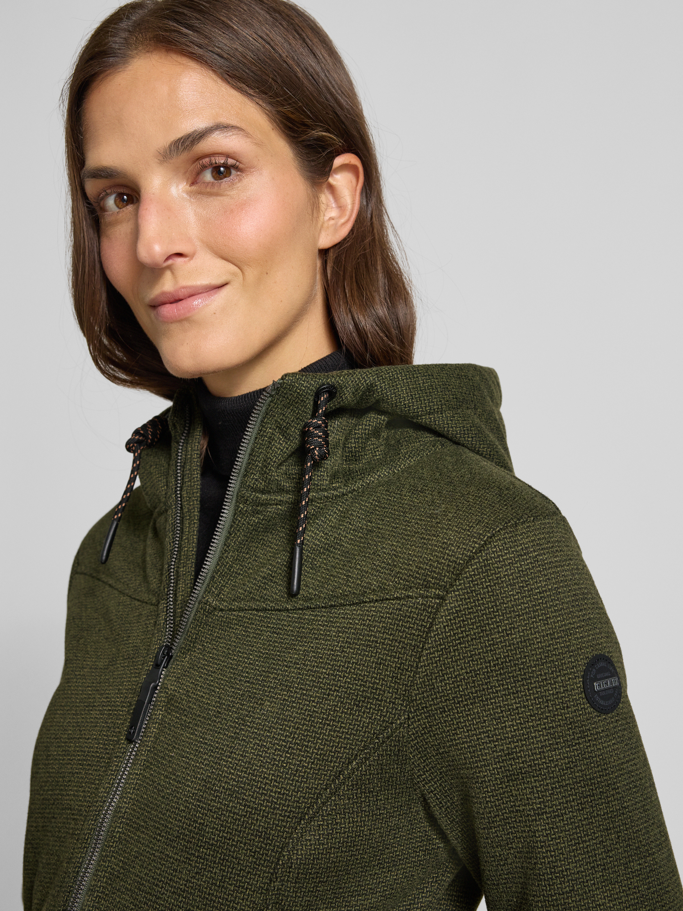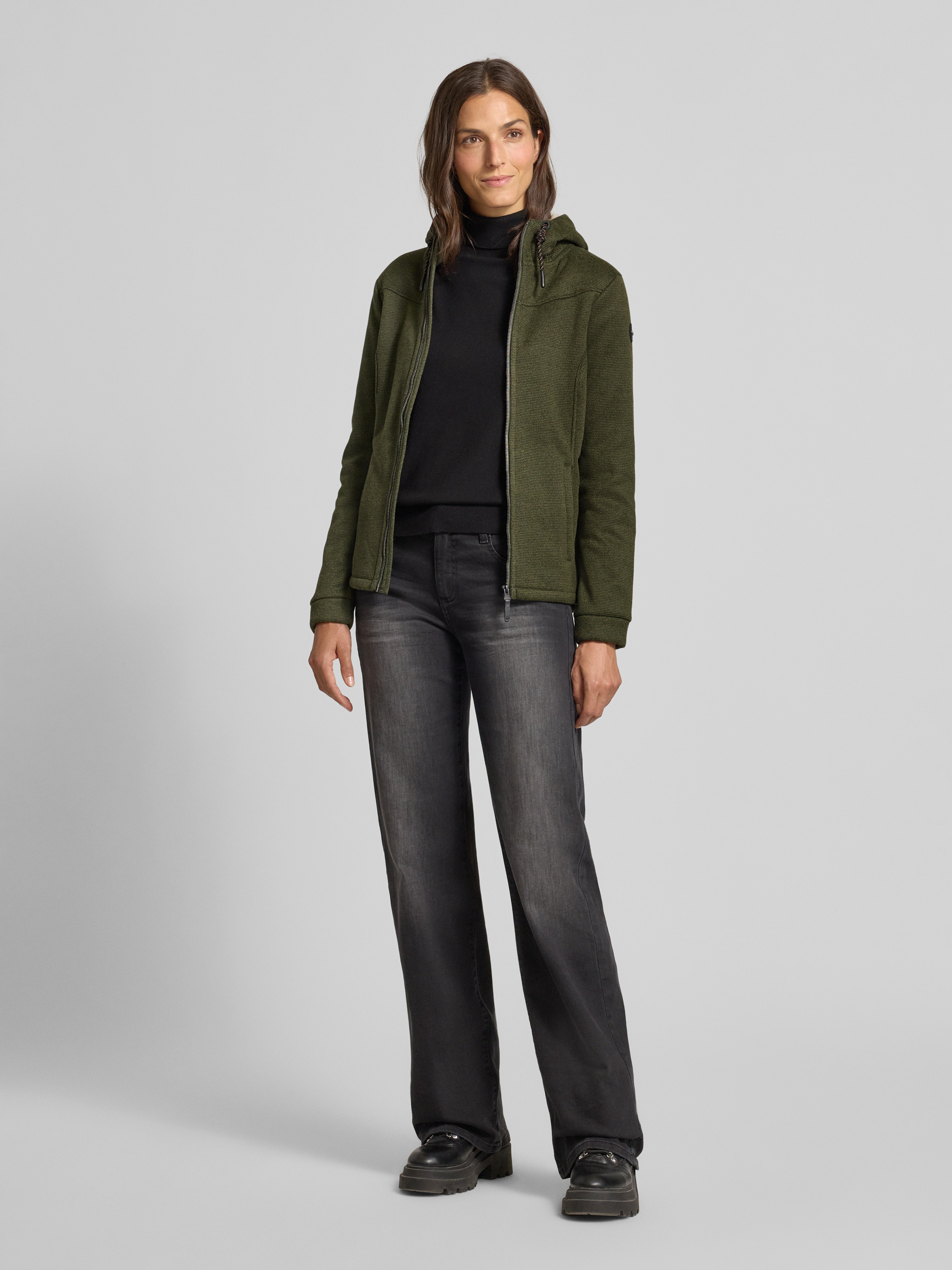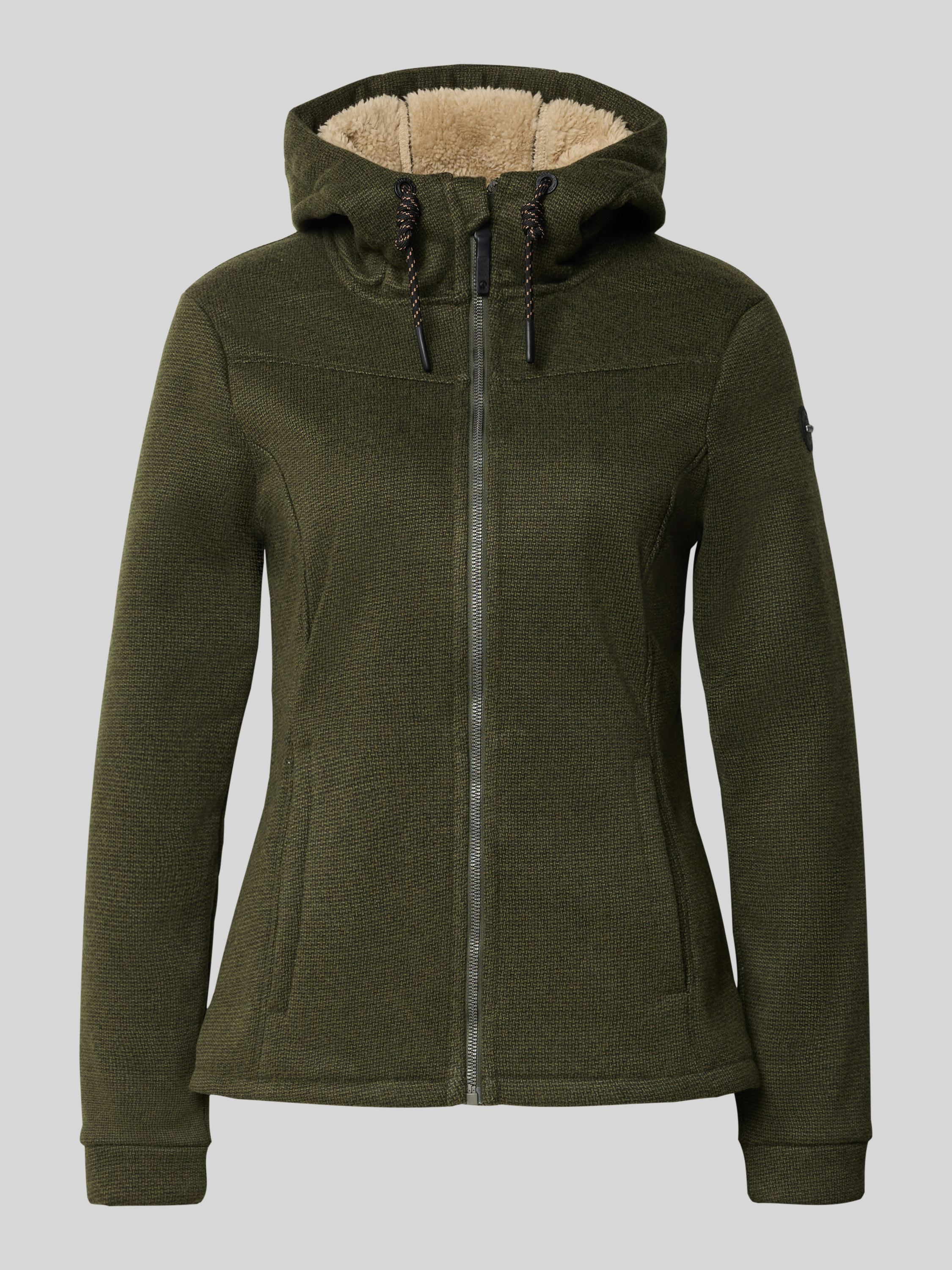 Kurtka z kapturem i podszewką z futerka - oliwkowy melanż