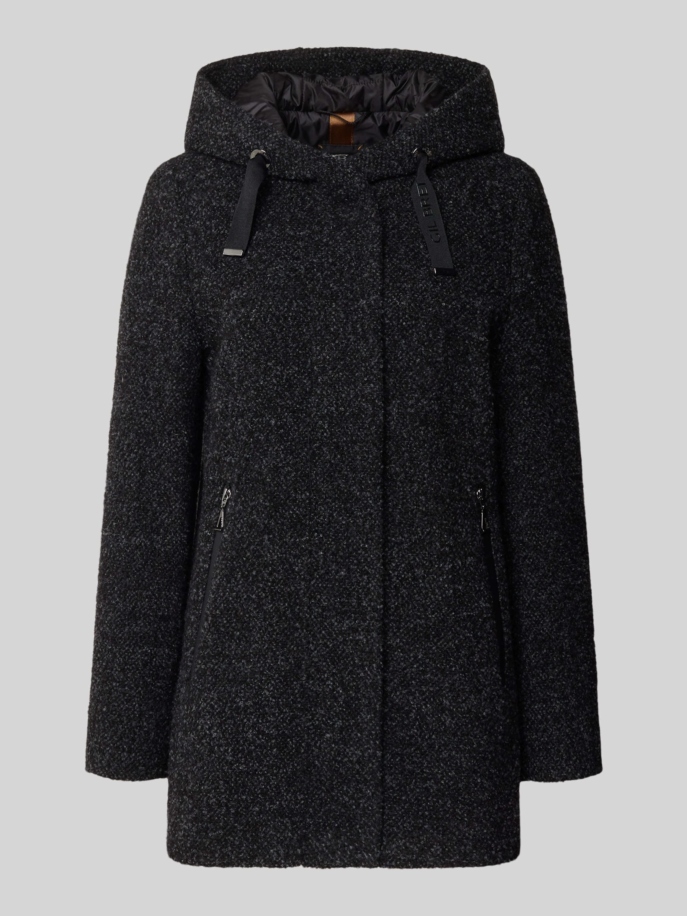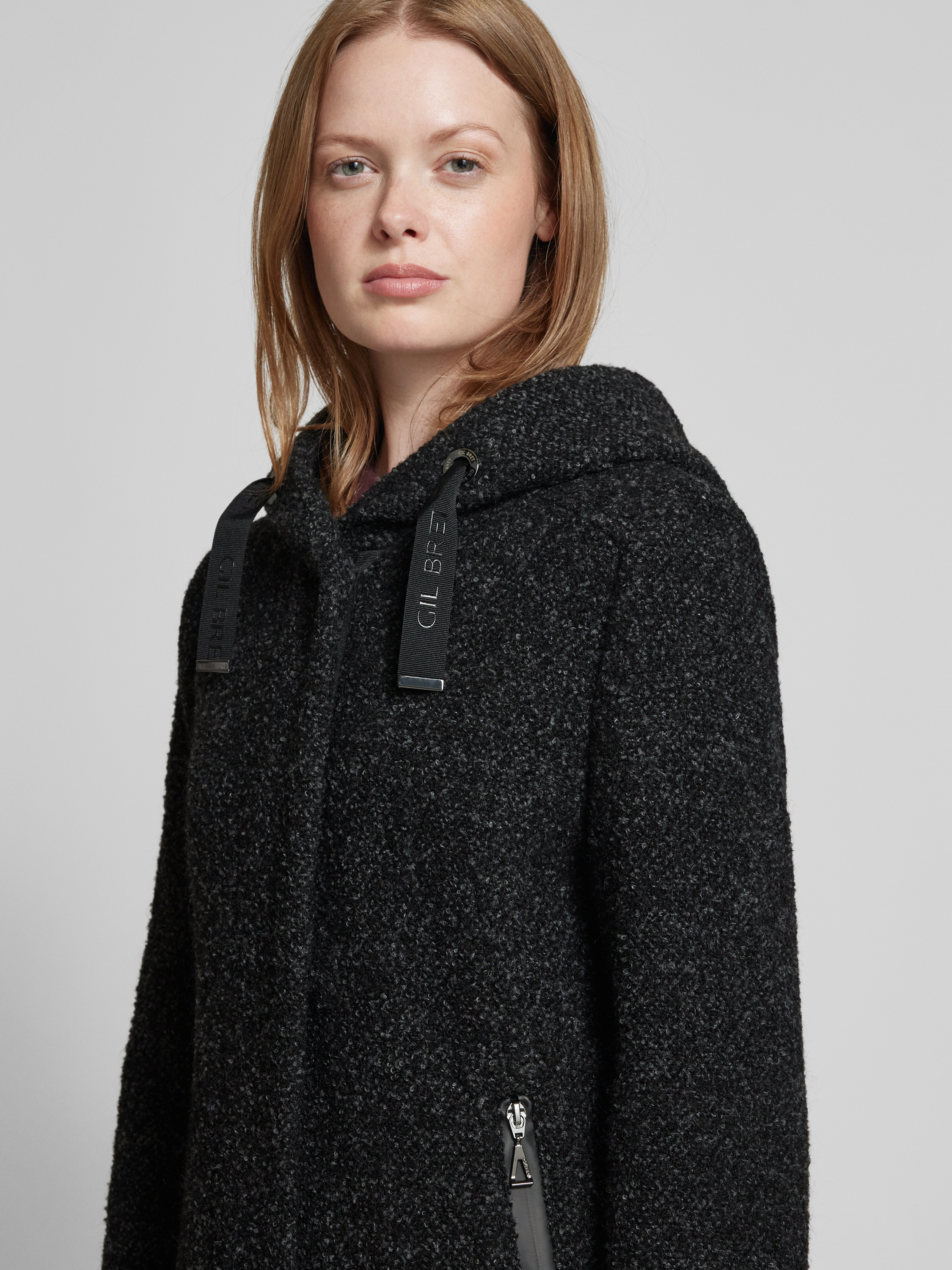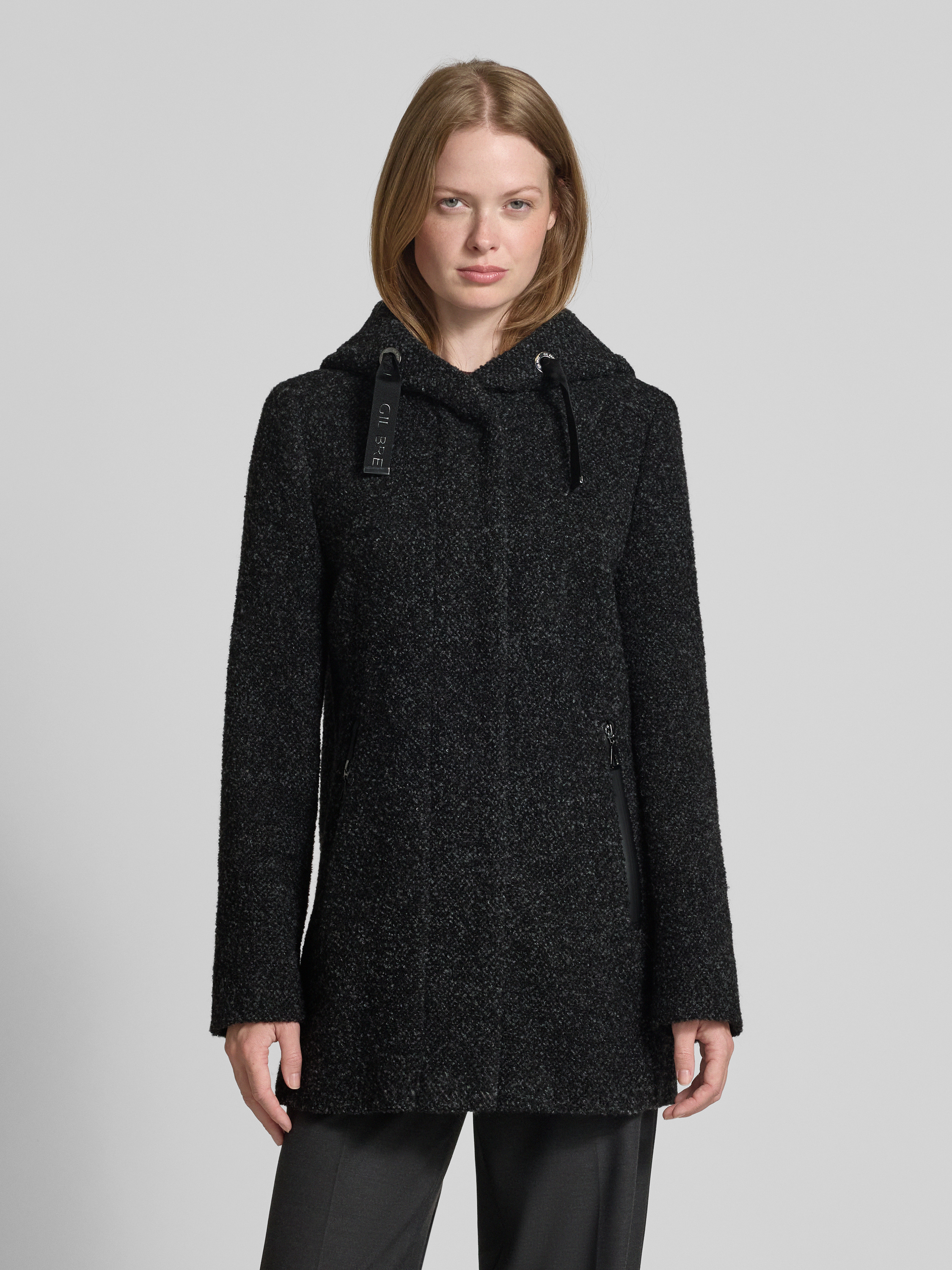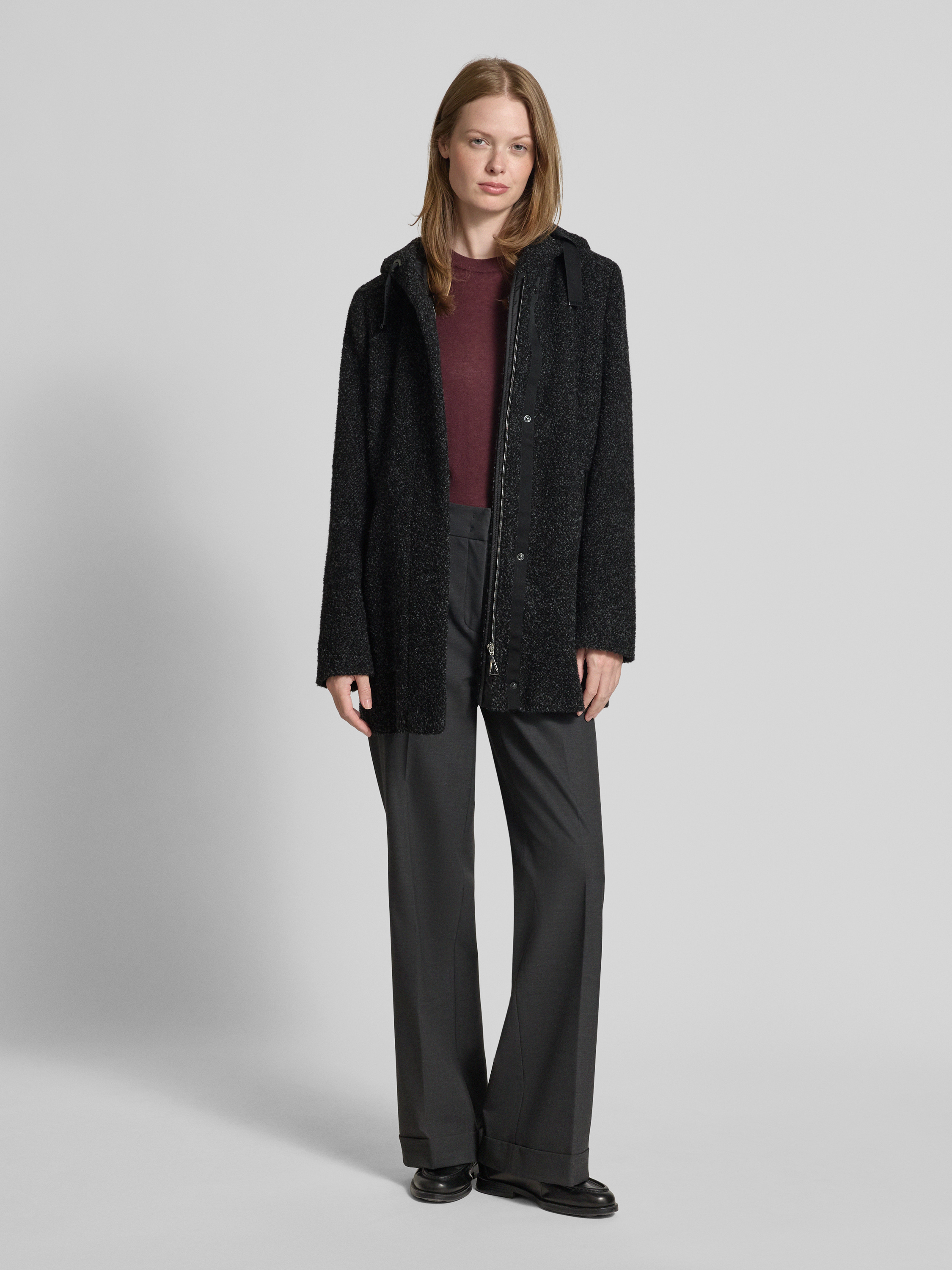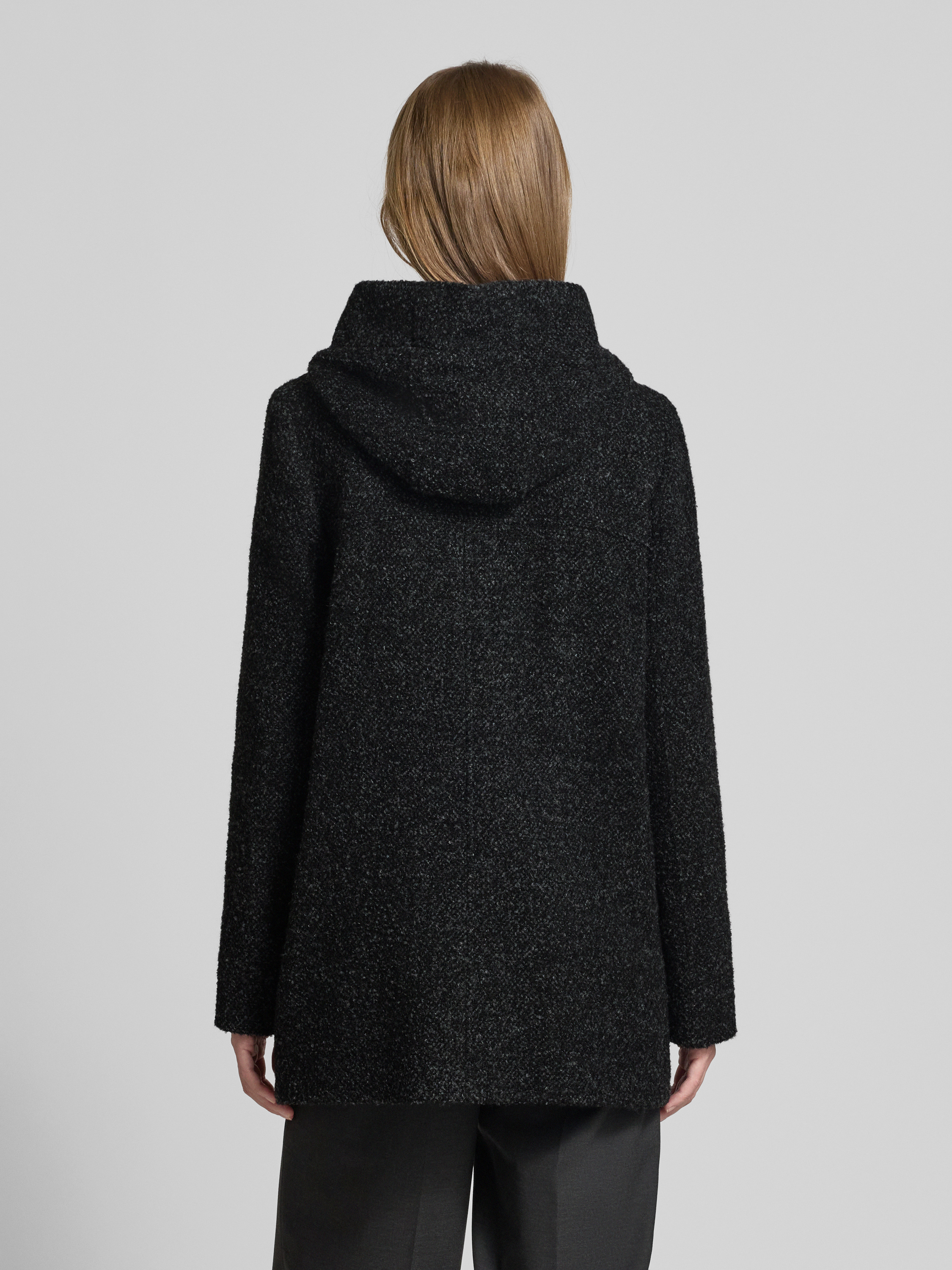 Krótki płaszcz z kapturem i krytym zamkiem błyskawicznym - czarny