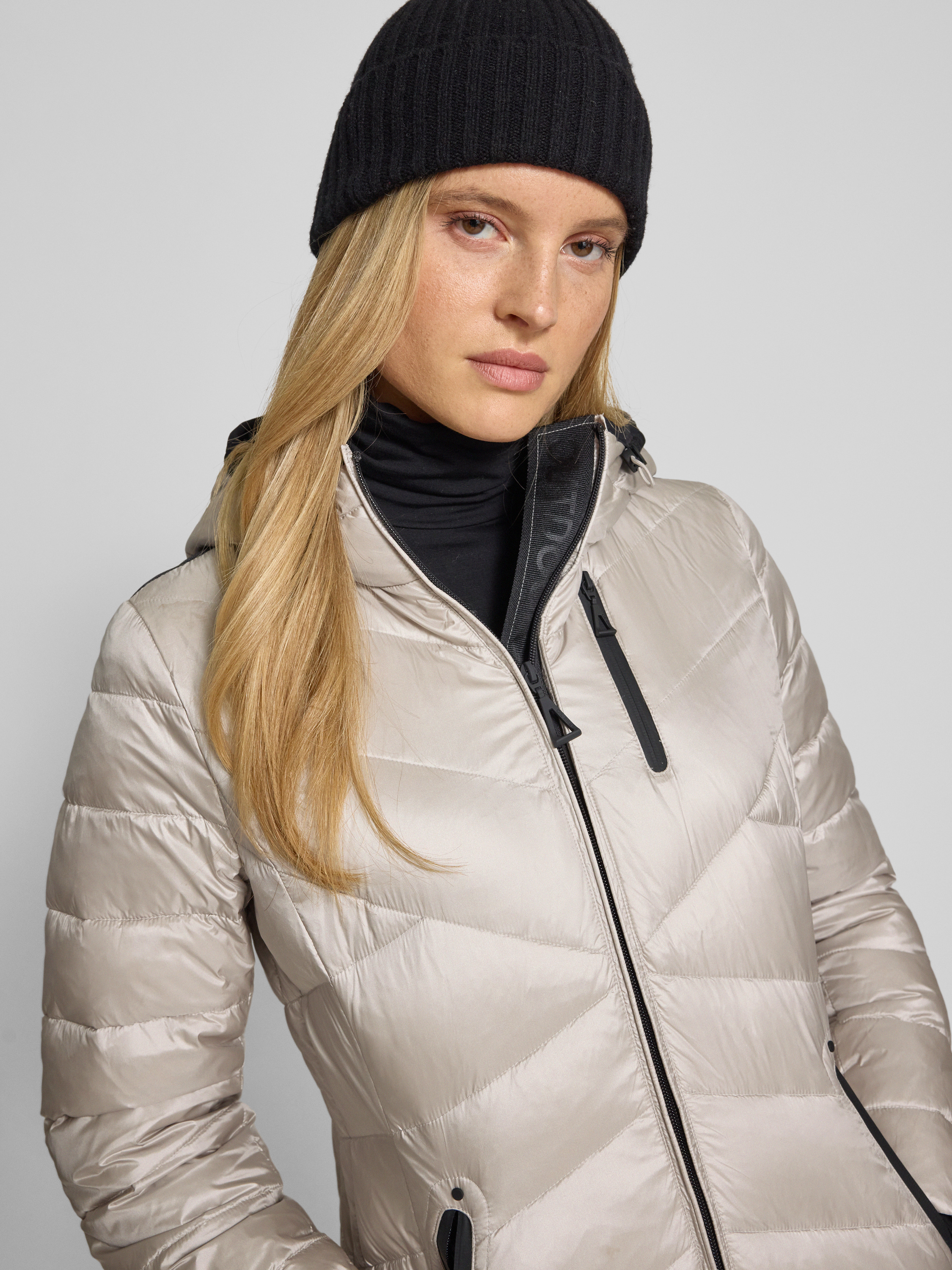 Płaszcz pikowany zapinany na zamek błyskawiczny dwustronny - écru