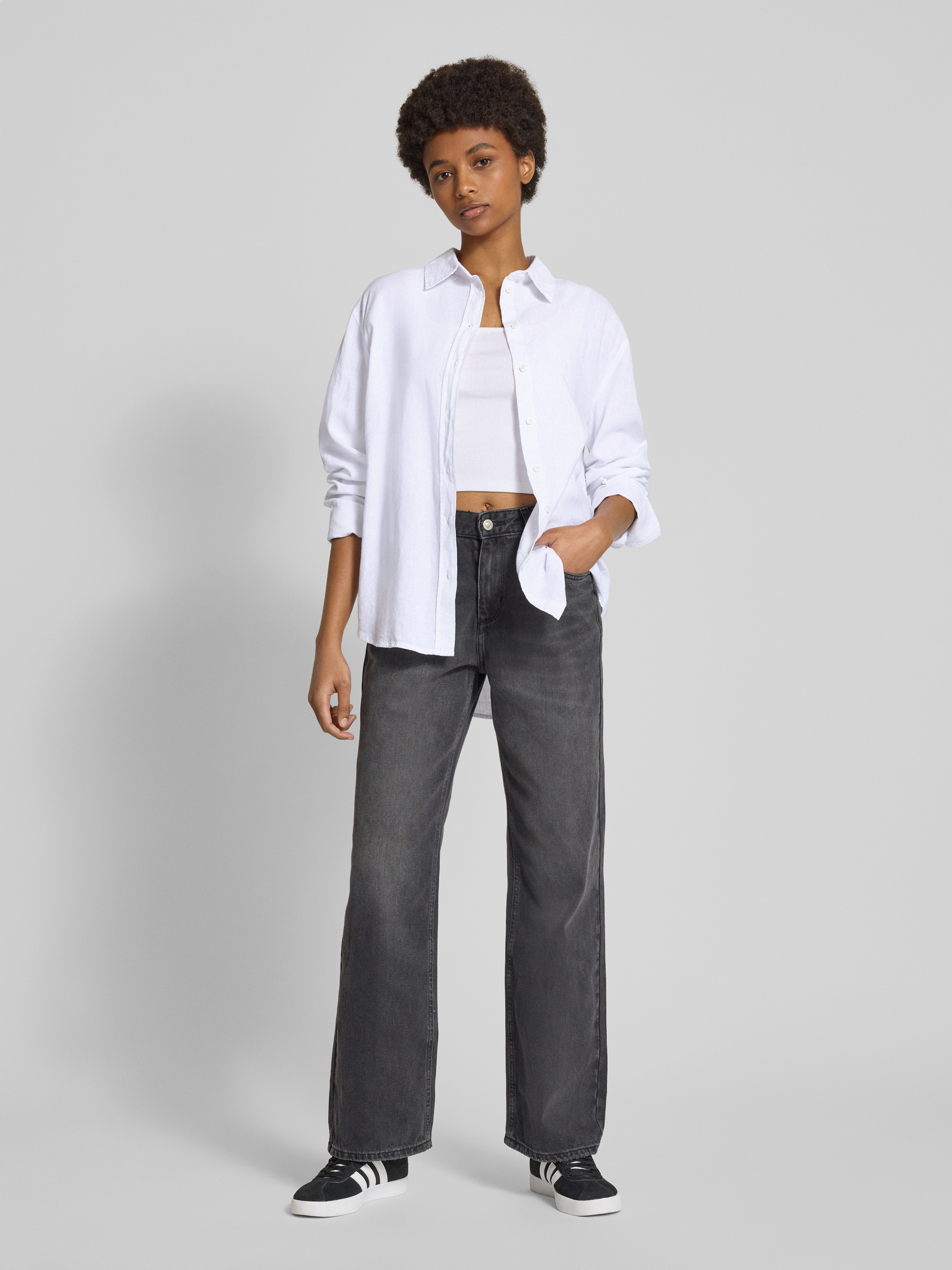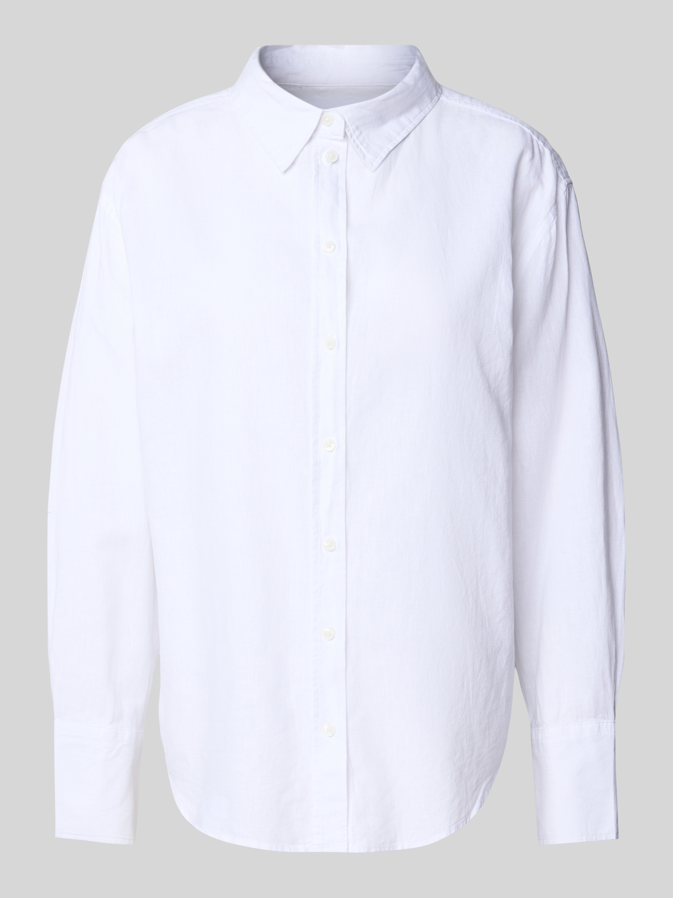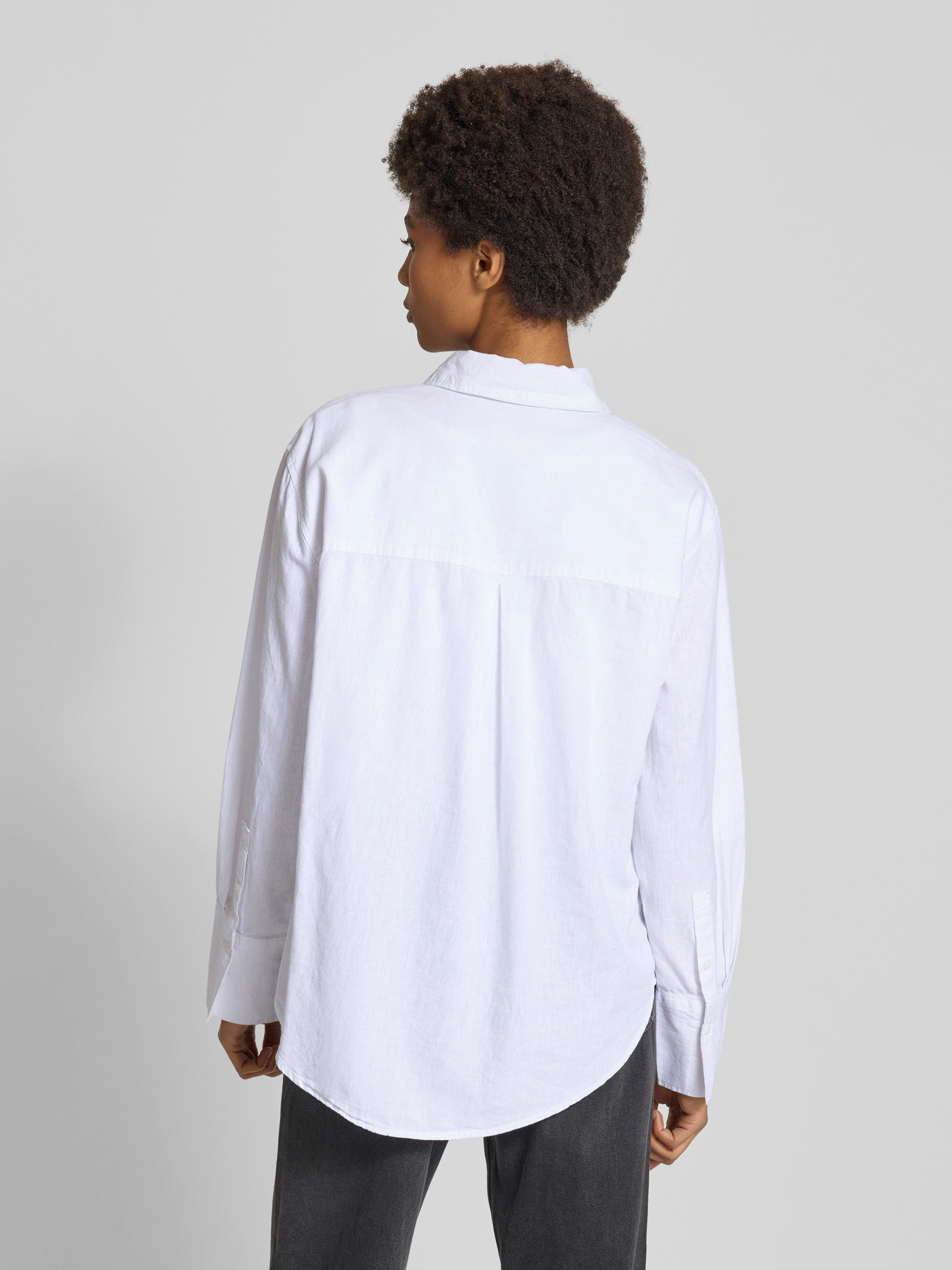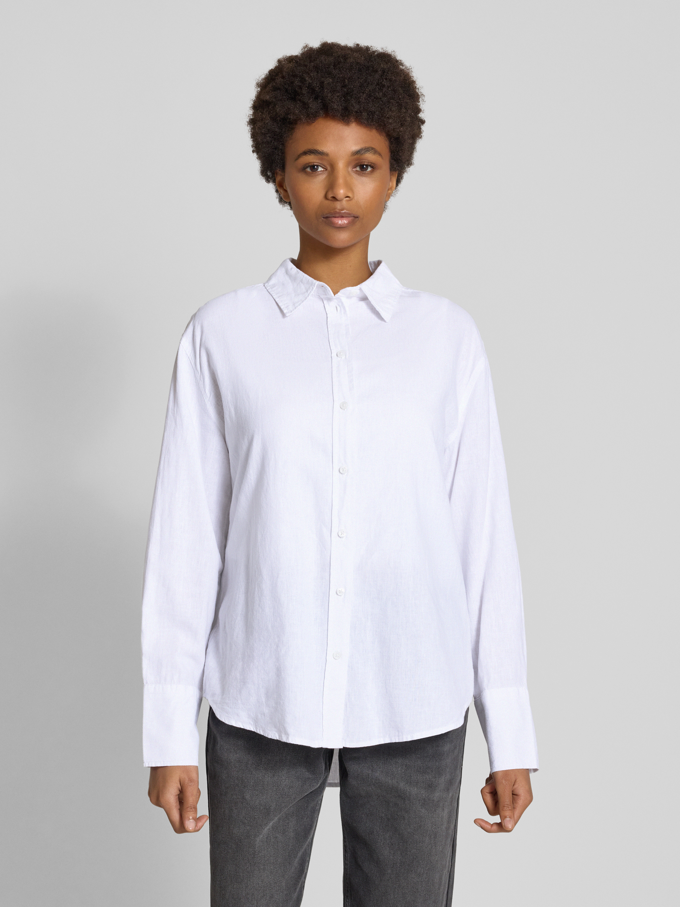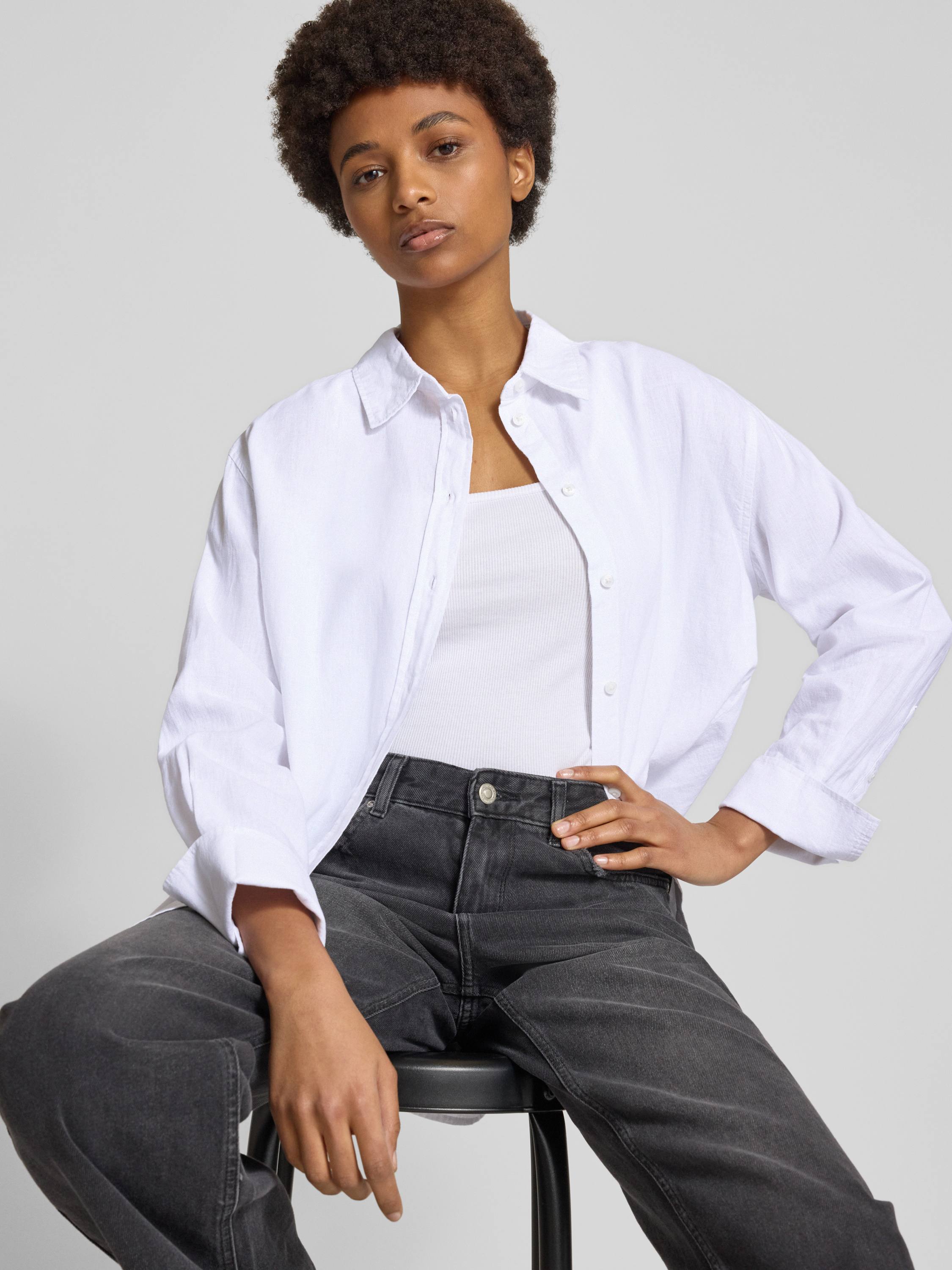 Bluzka koszulowa lniana o kroju regular fit z listwą guzikową na całej długości - biały