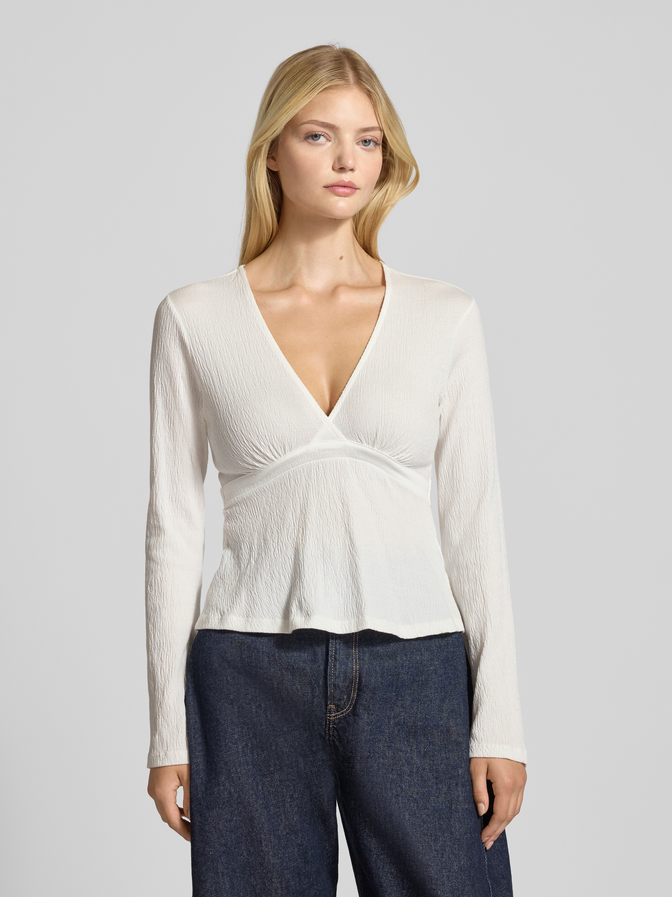 Bluzka z dekoltem w serek - złamany biały