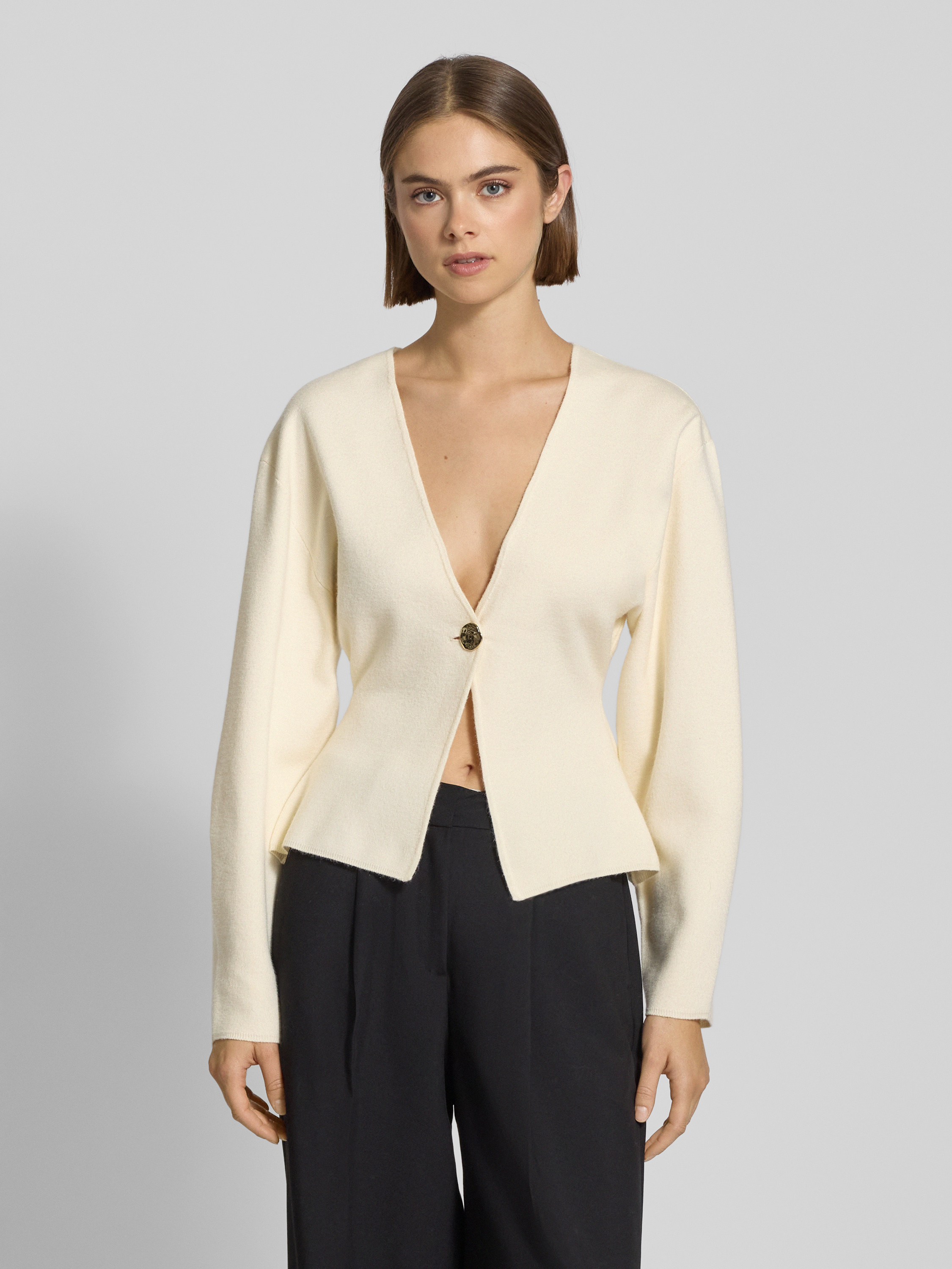 Kardigan taliowany z zapięciem na guzik - złamany biały