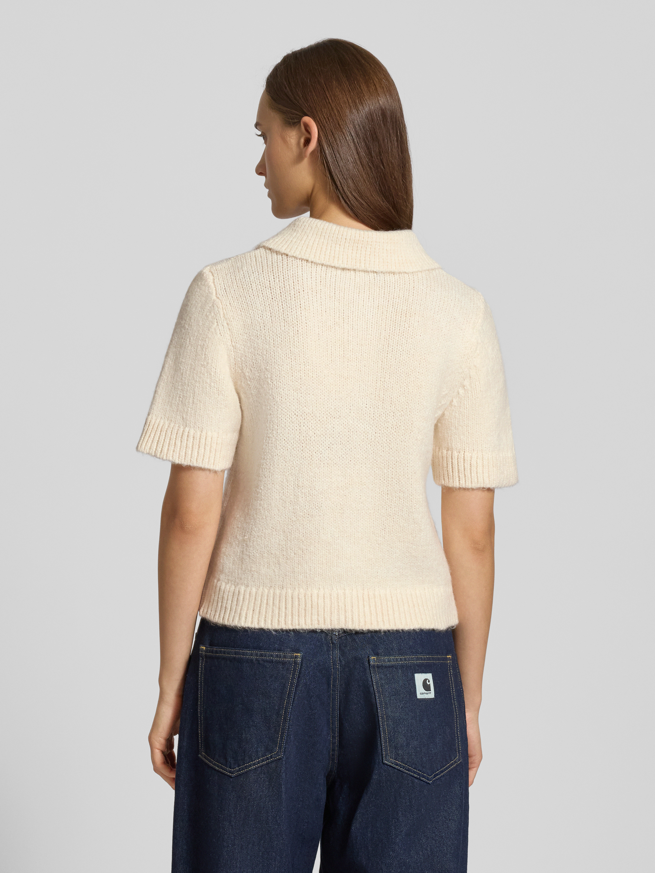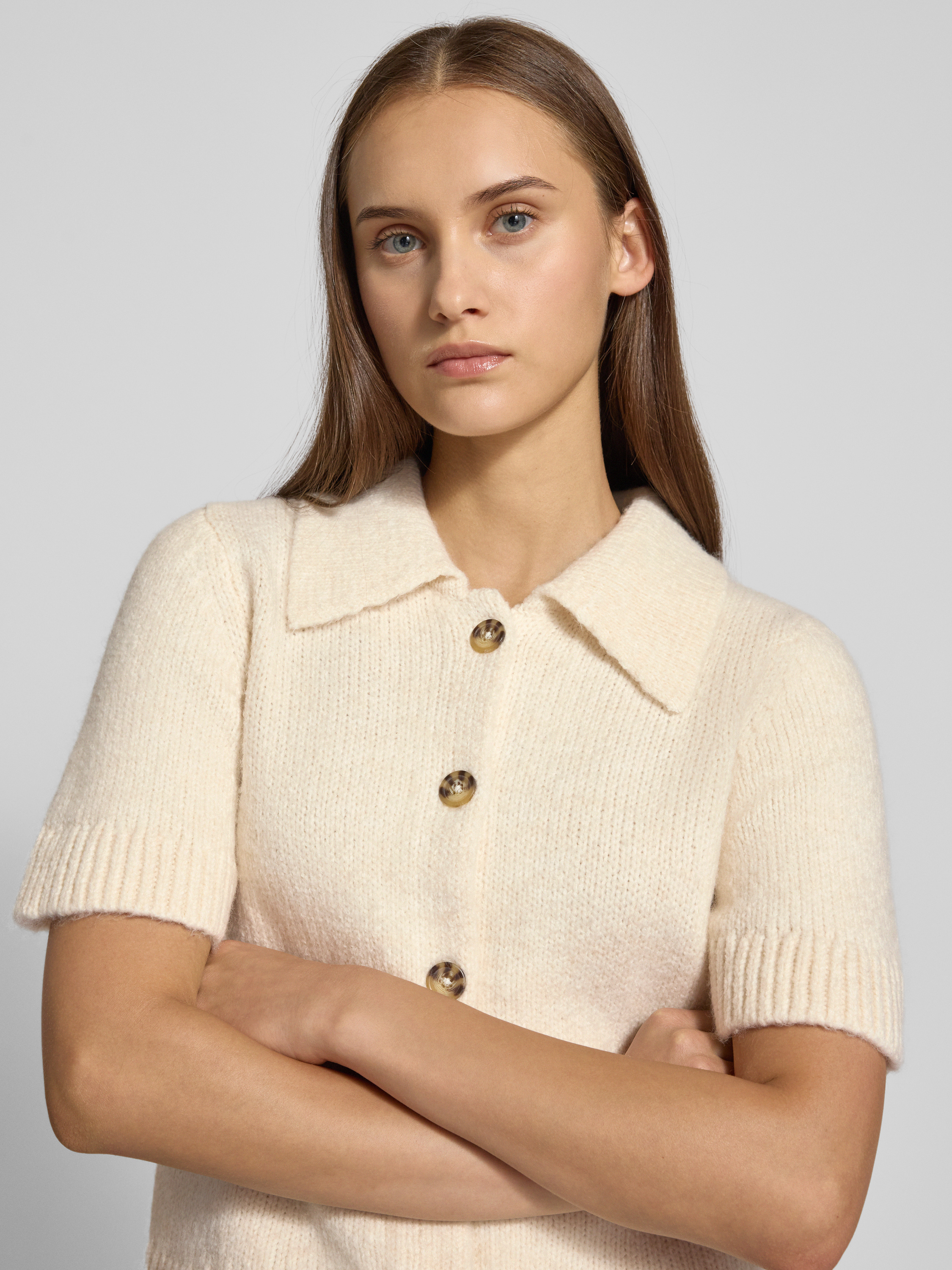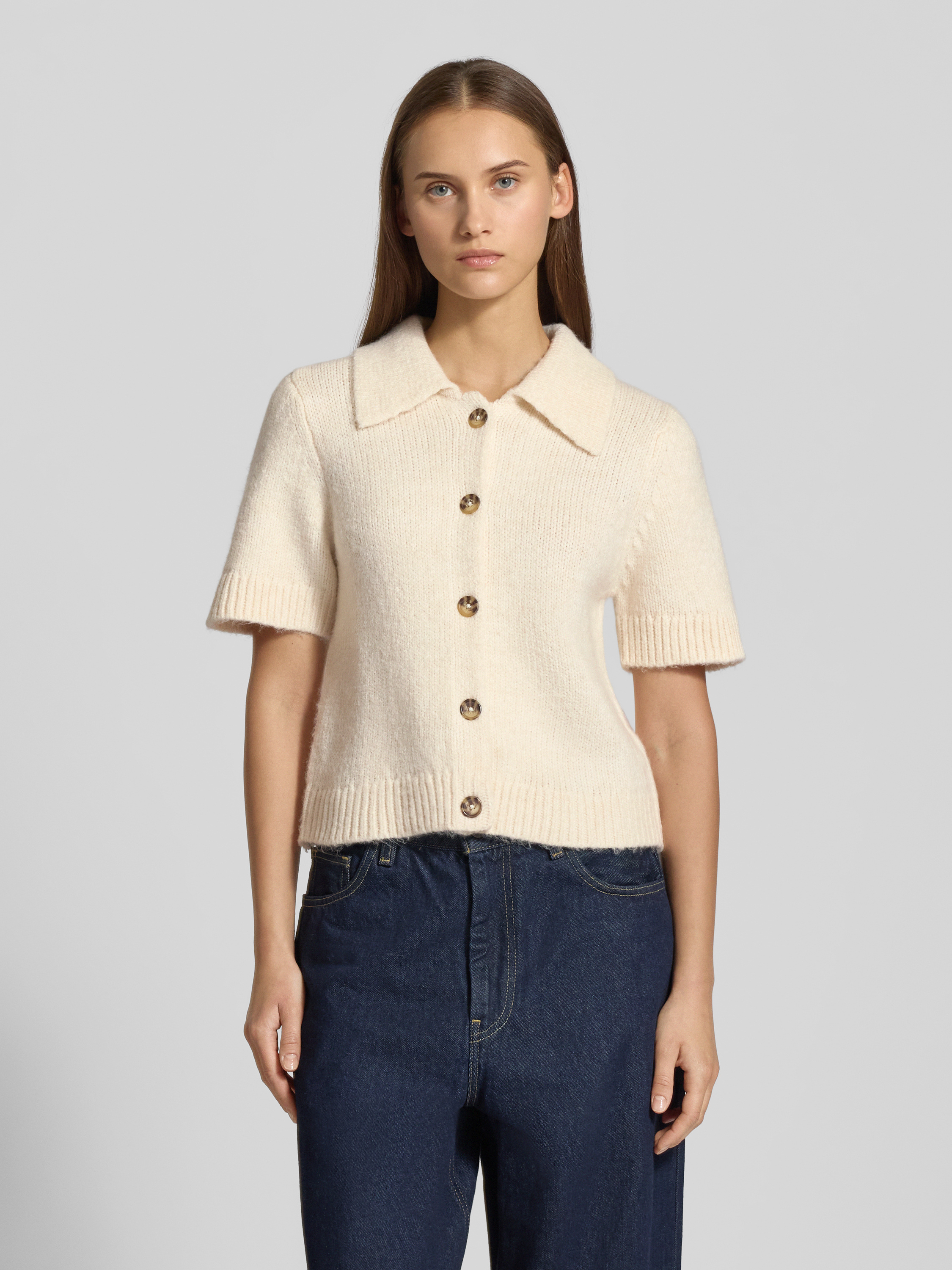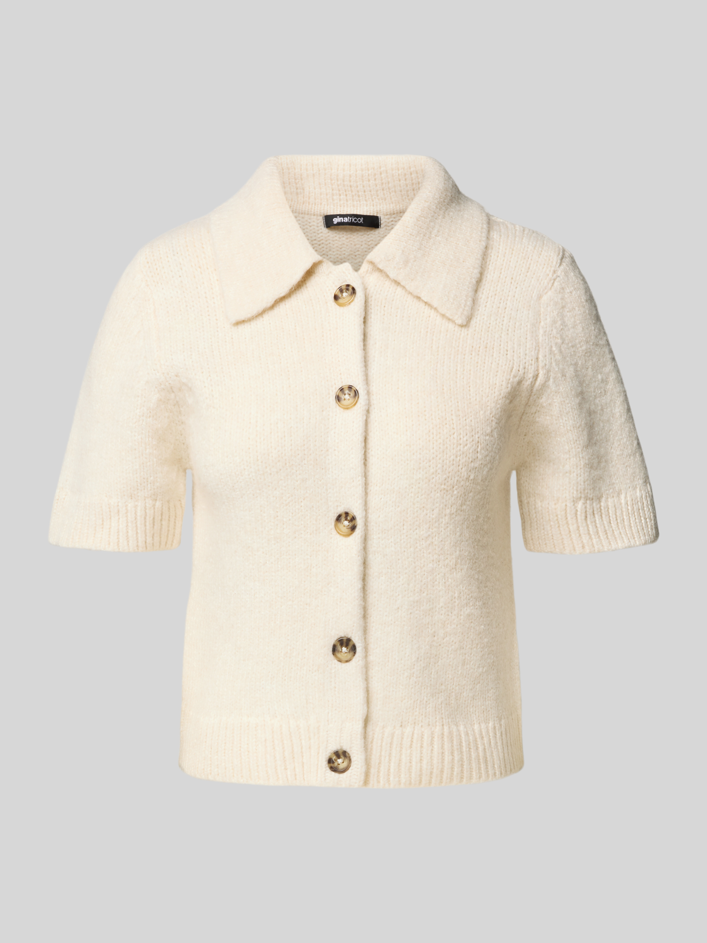Kardigan z dzianiny z rękawem o dł. 1/2 - złamany biały