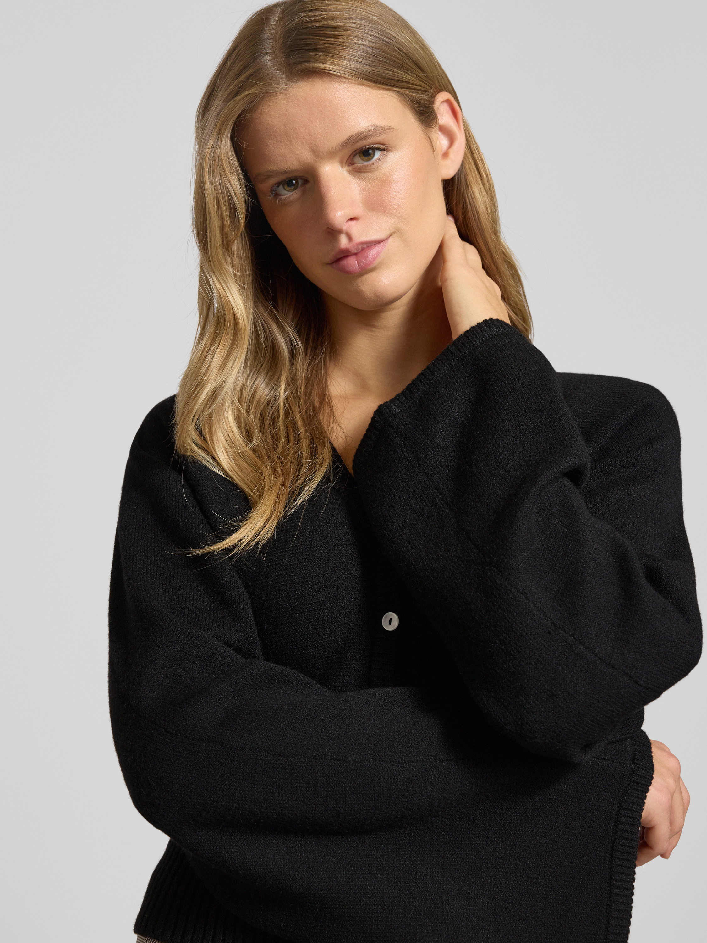 Kurtka z dzianiny z listwą guzikową - czarny