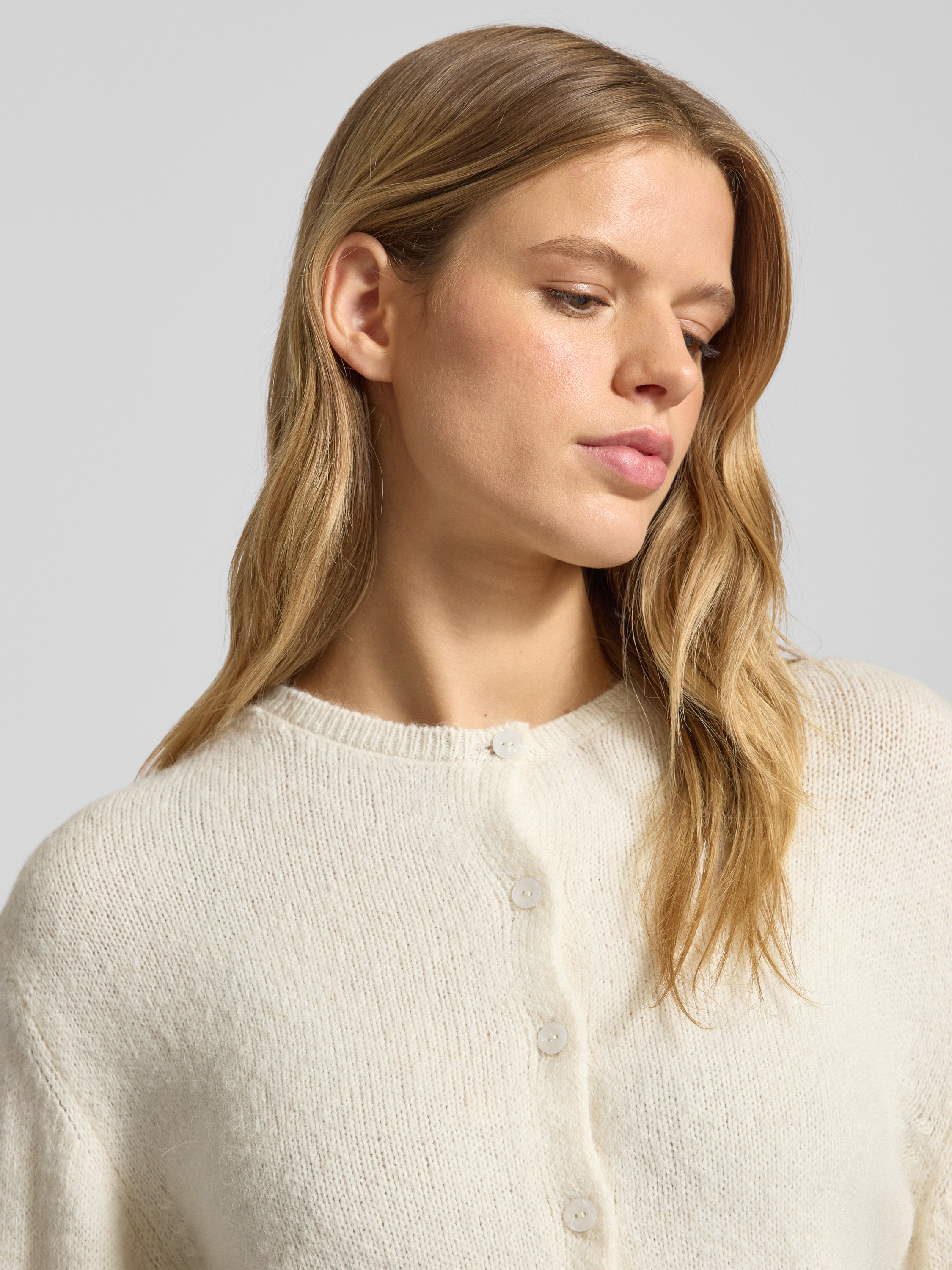 Kurtka z dzianiny z listwą guzikową - złamany biały