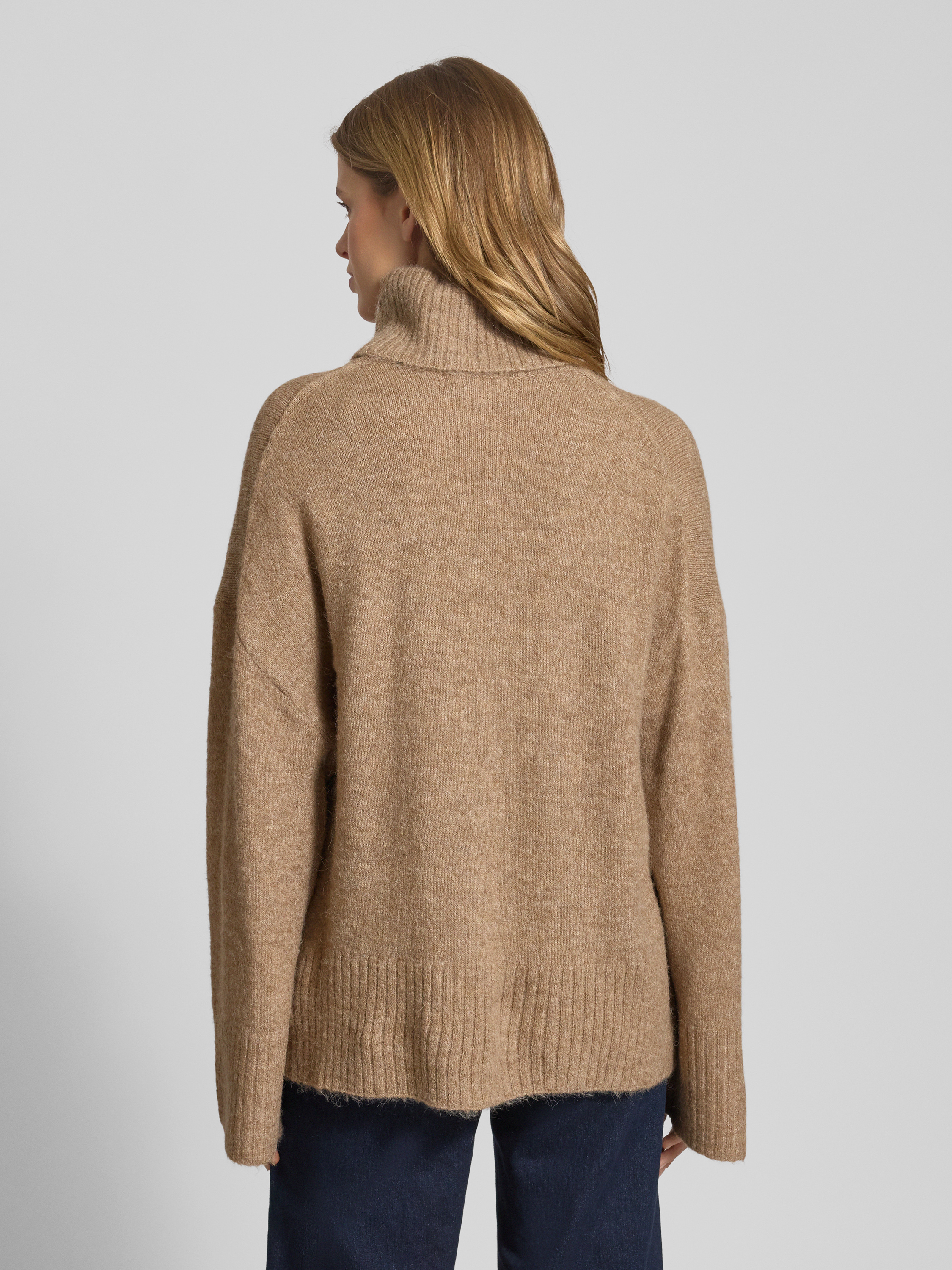 Sweter z dzianiny o kroju oversized z golfem - camel