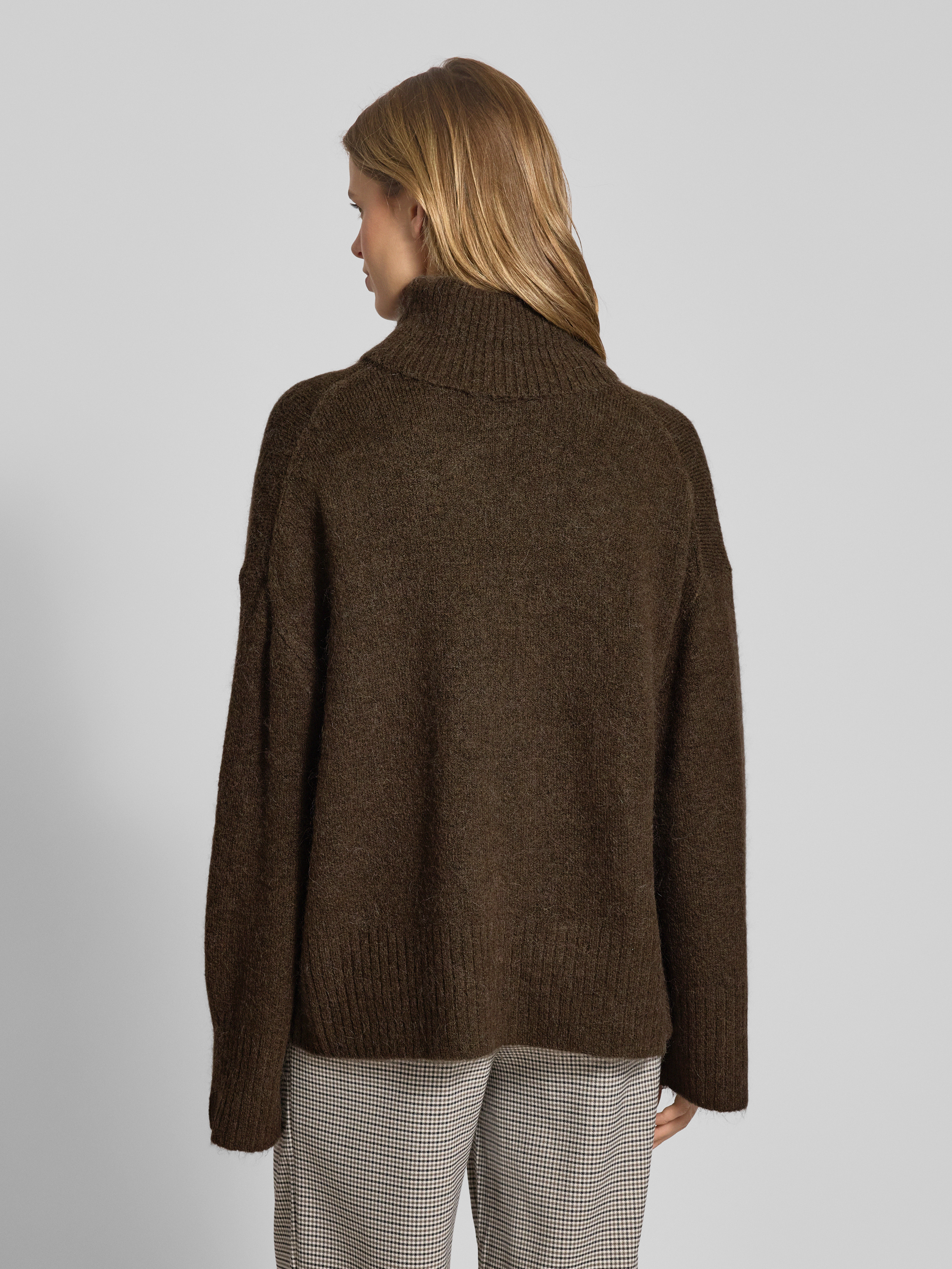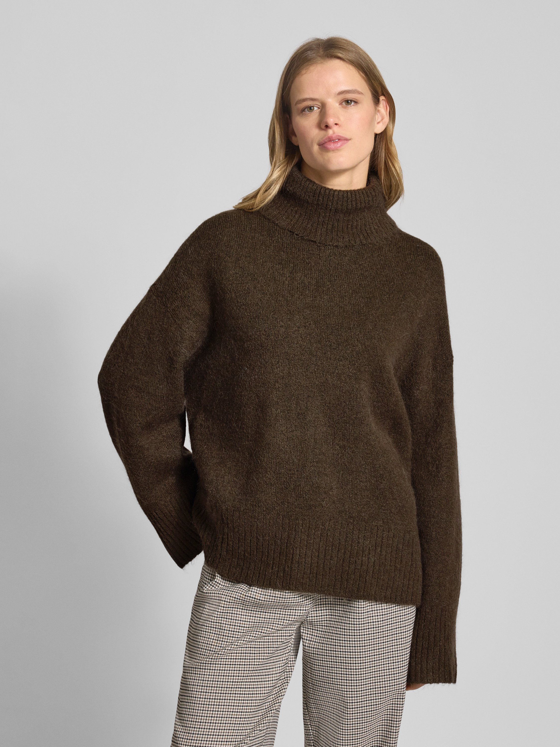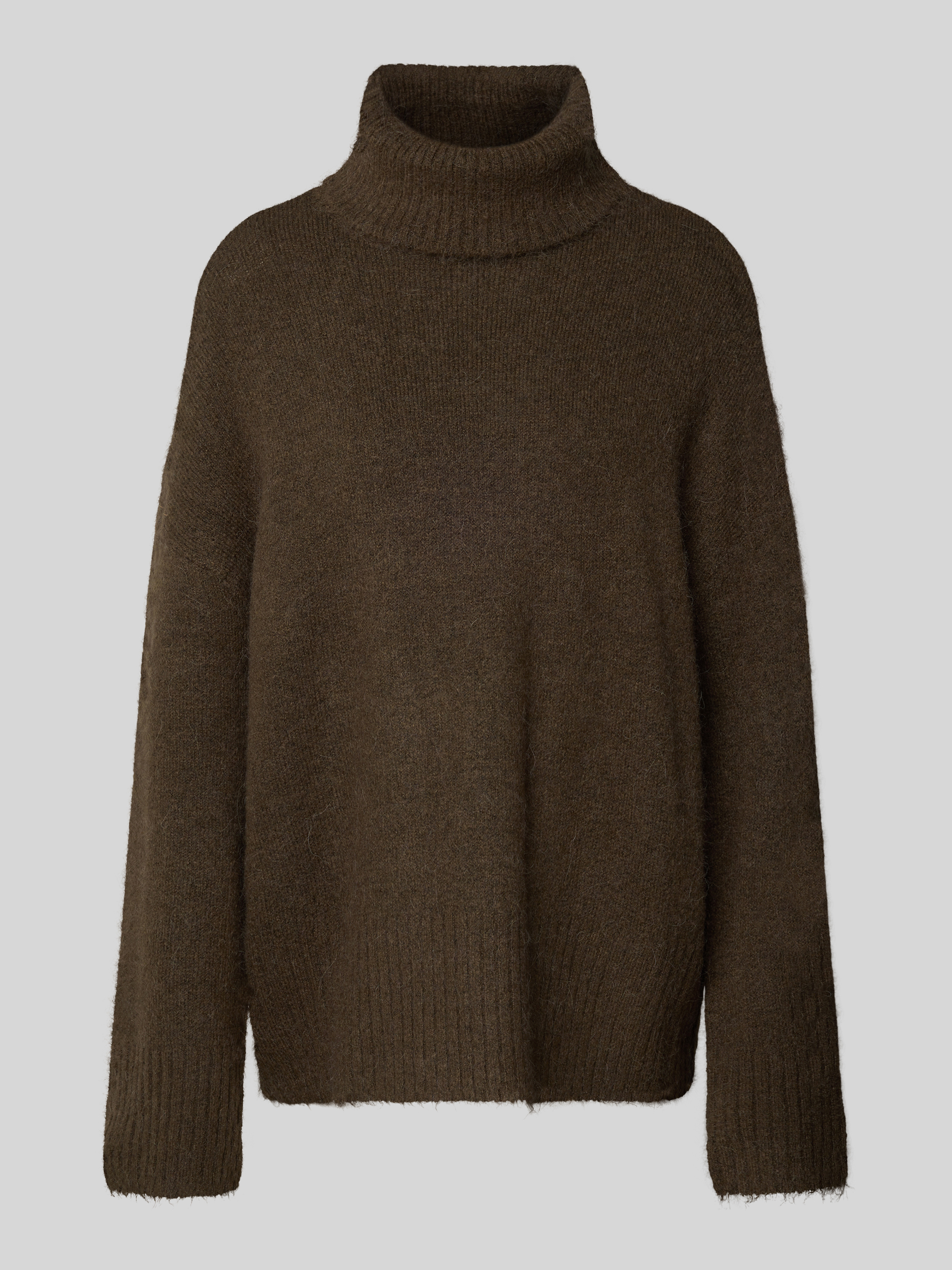 Sweter z dzianiny o kroju oversized z golfem - ciemnozielony