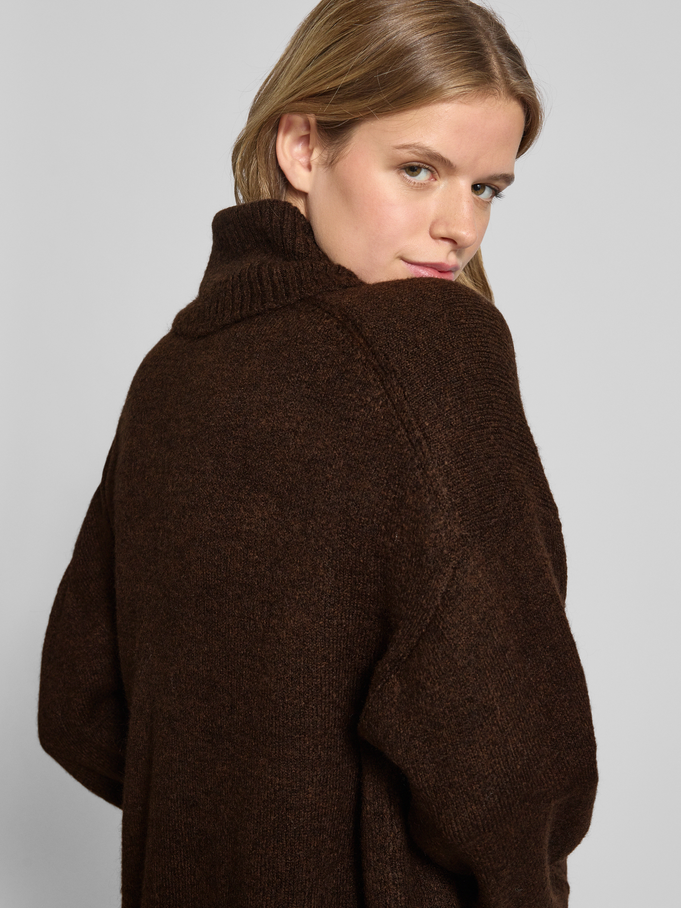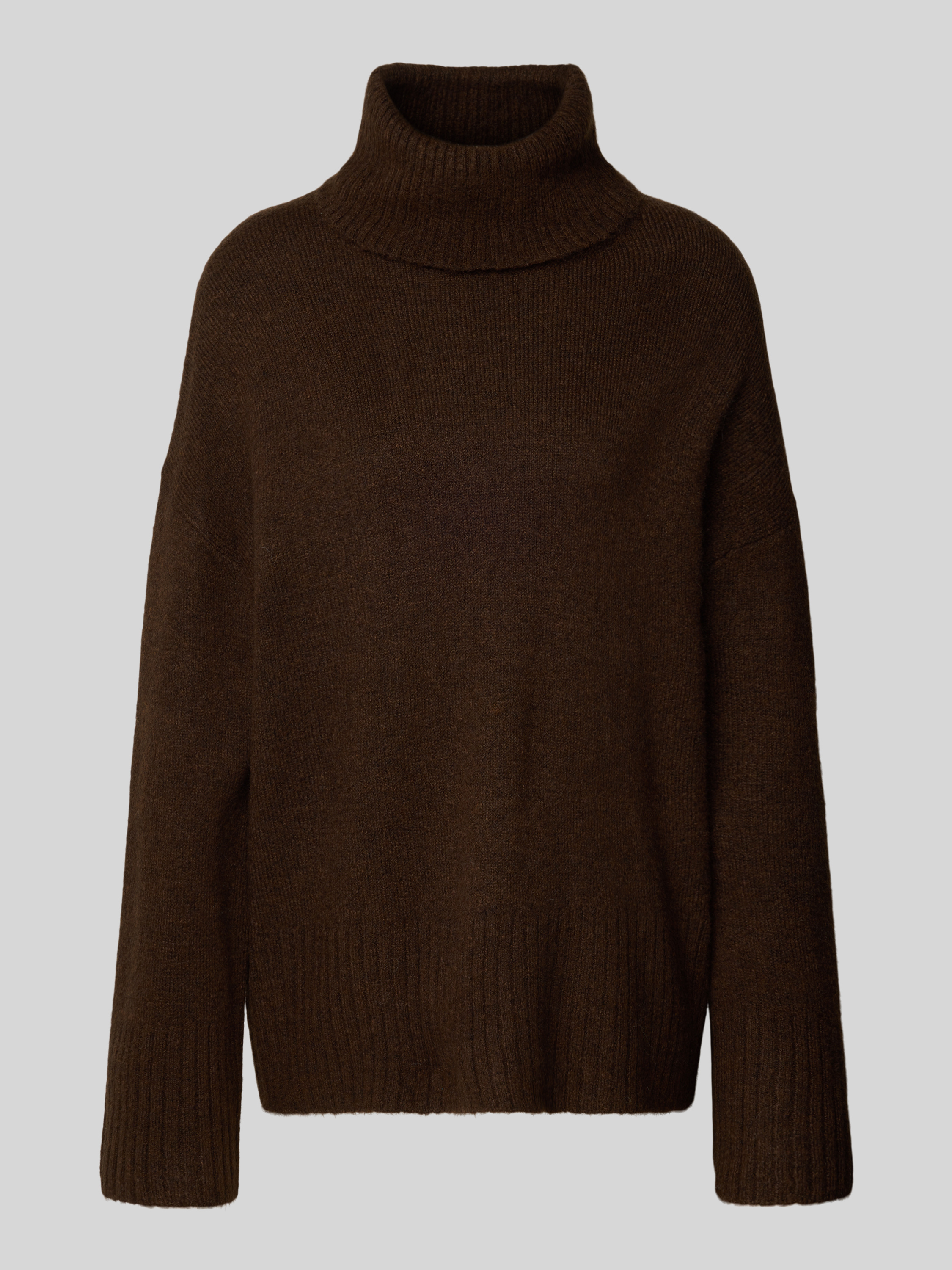 Sweter z dzianiny o kroju oversized z golfem - średniobrązowy