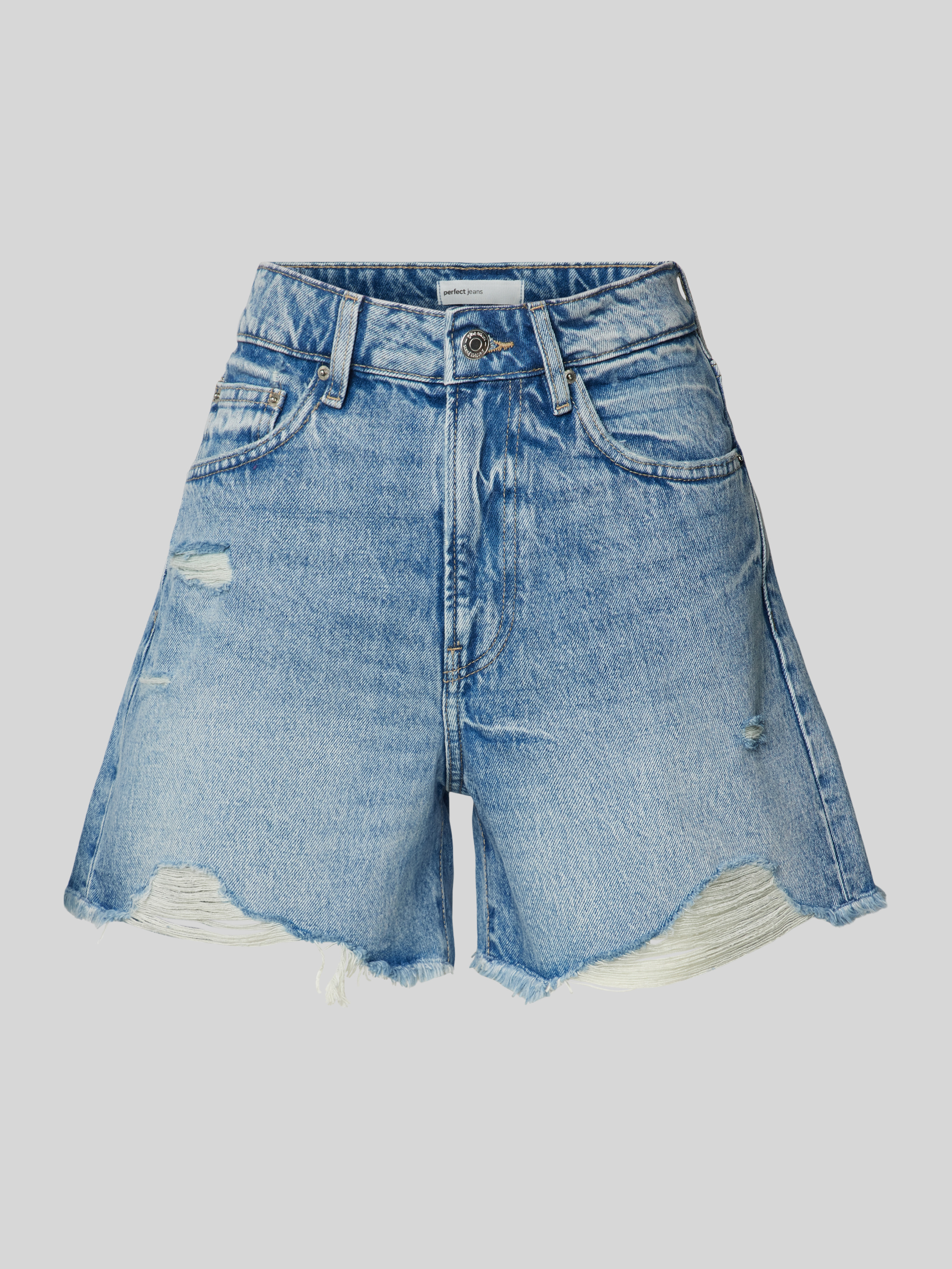 Szorty jeansowe o rozkloszowanym kroju z przetarciami - jeansowy niebieski