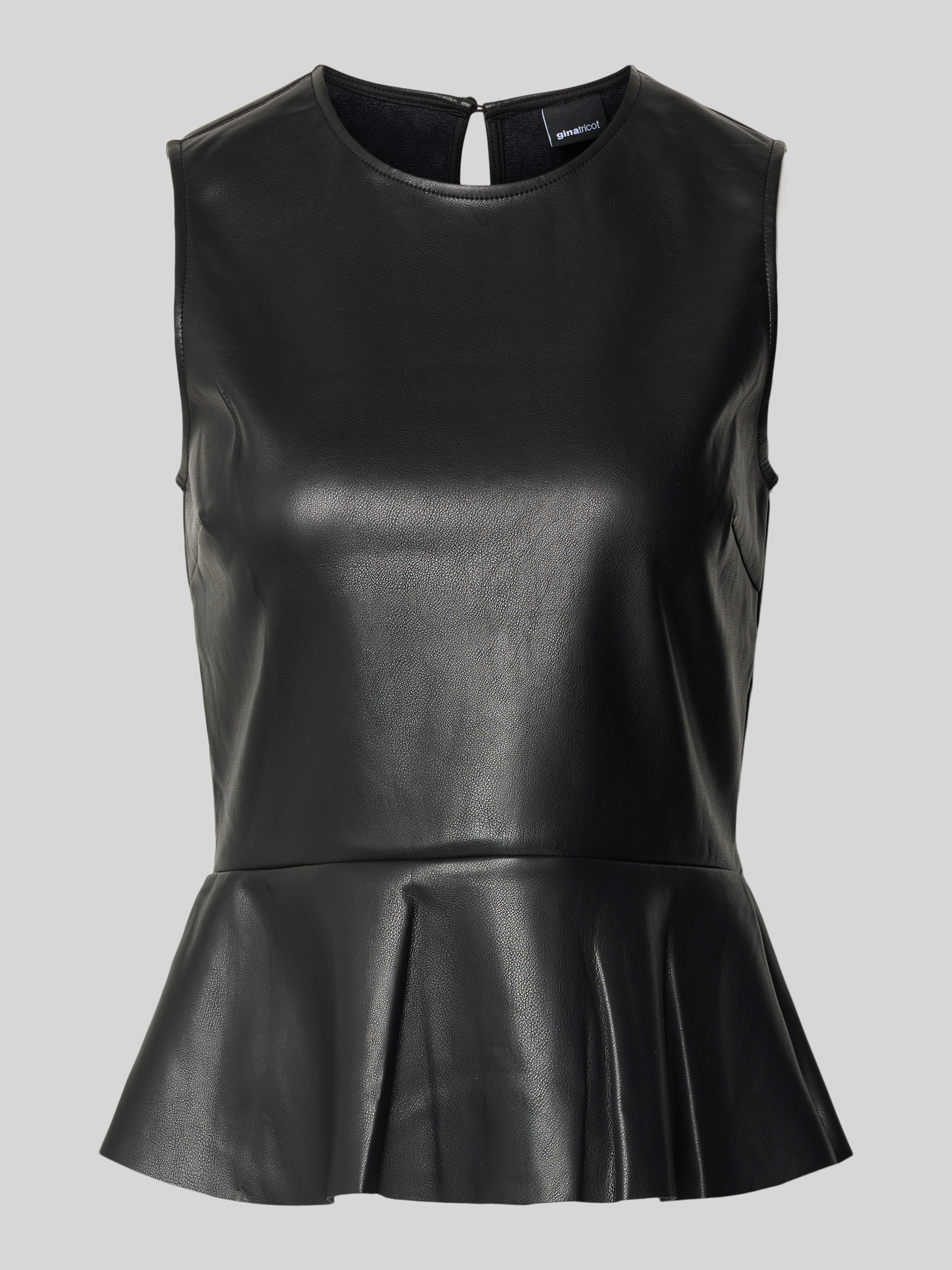 Top z imitacji skóry z guzikiem z tyłu - czarny