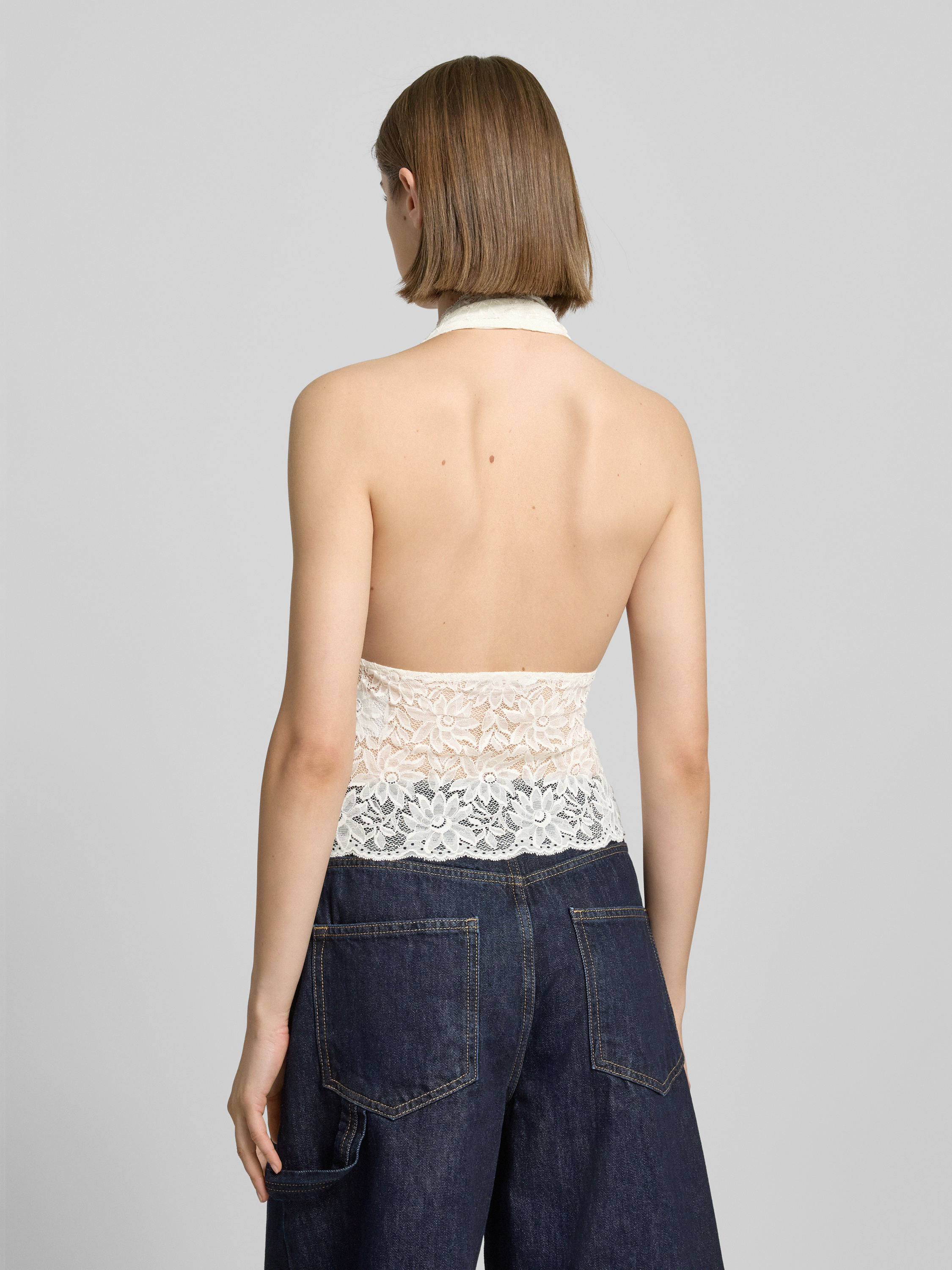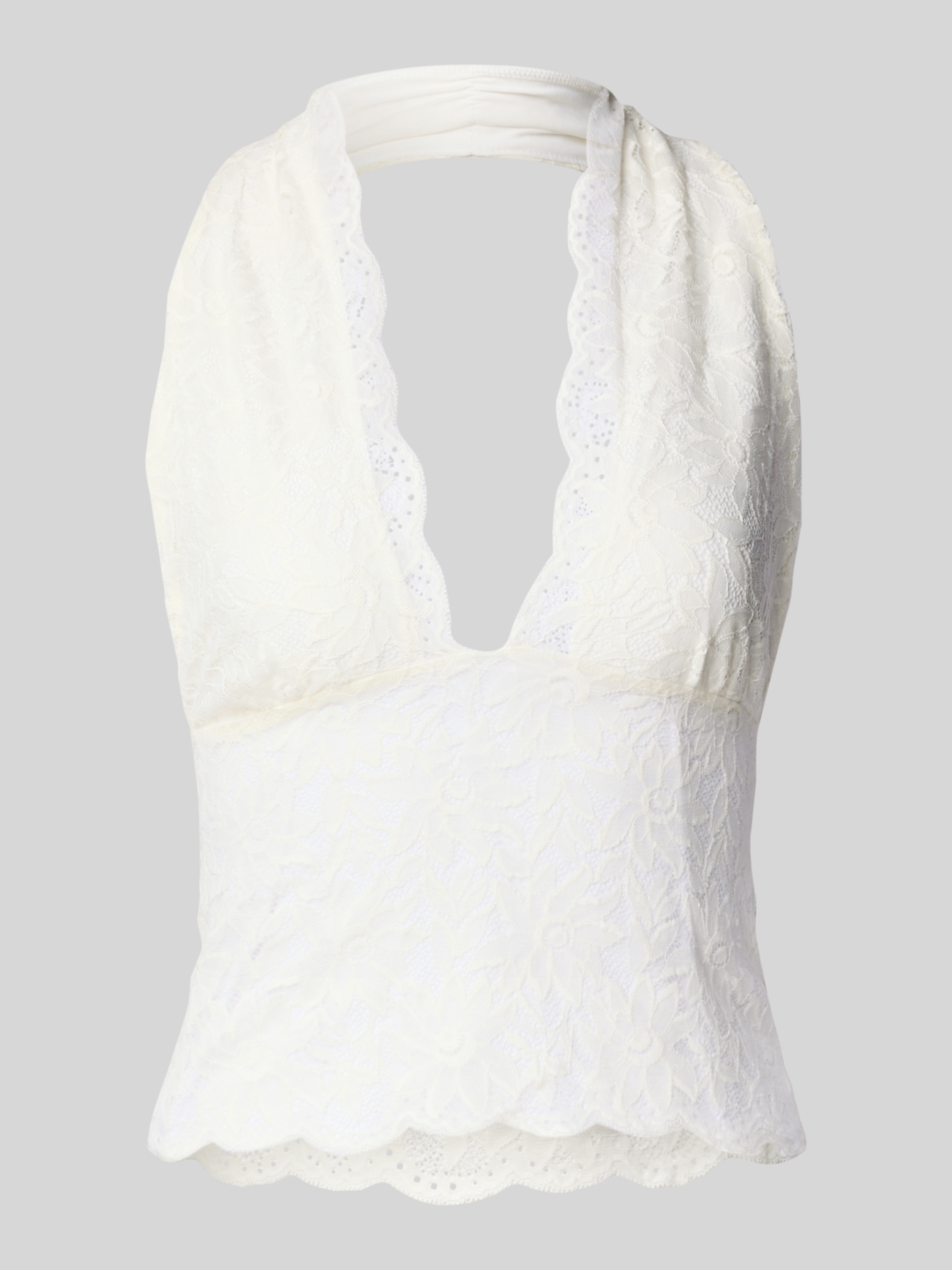 Gina TricotTop z koronki z wiązaniem na szyi - złamany biały