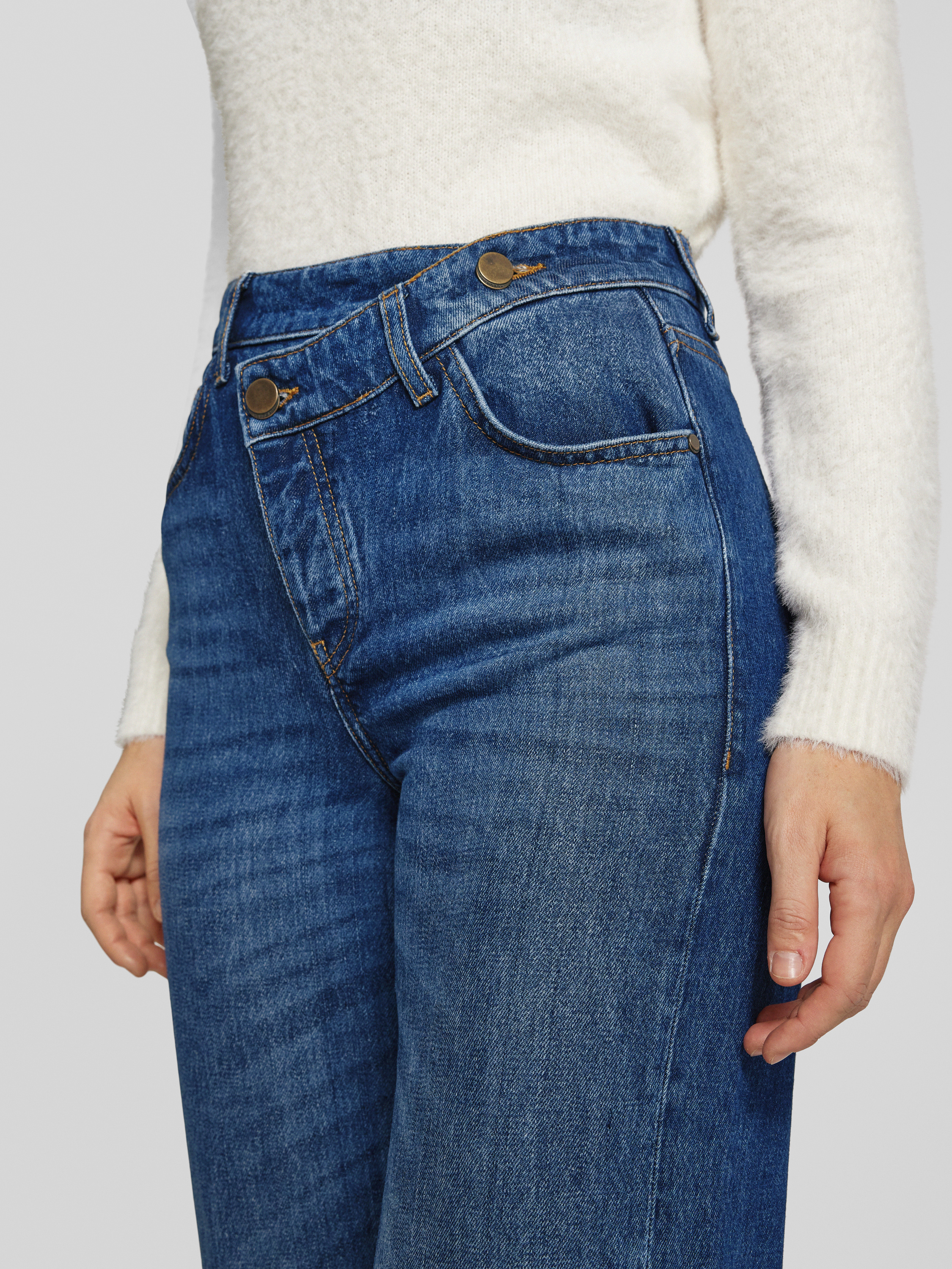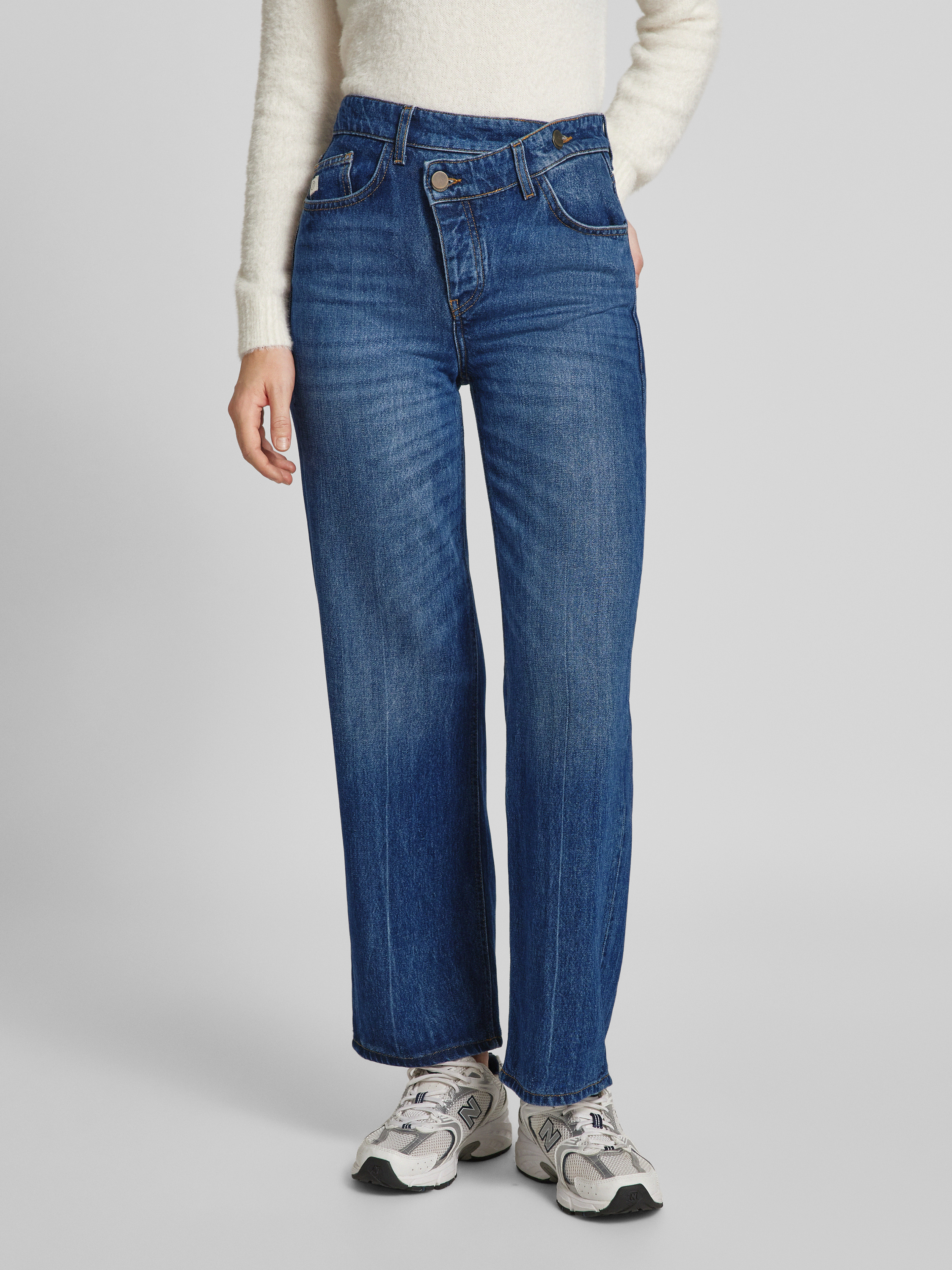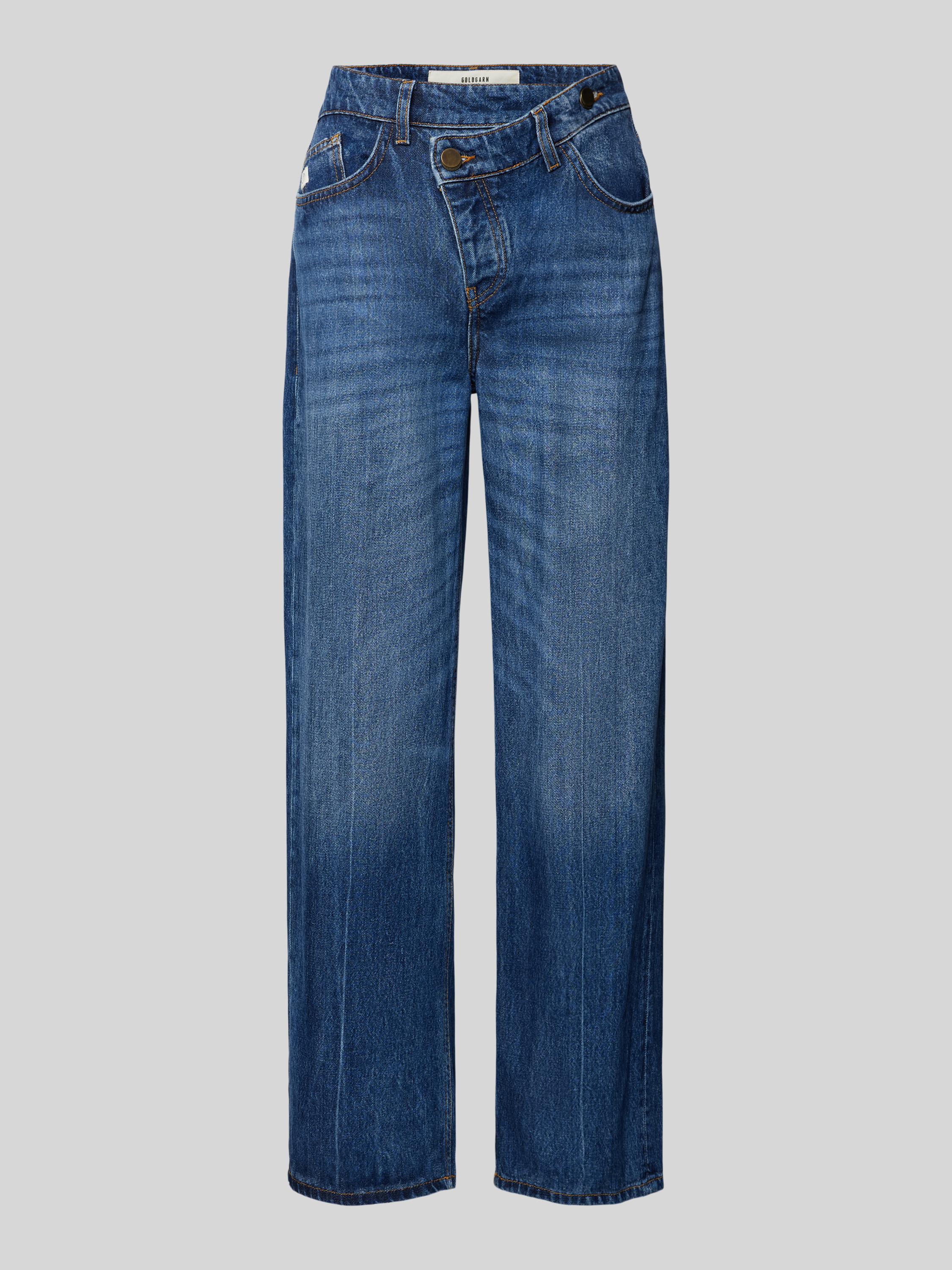 Jeansy o kroju straight fit z asymetrycznym zapięciem model ‘C7’ - niebieski