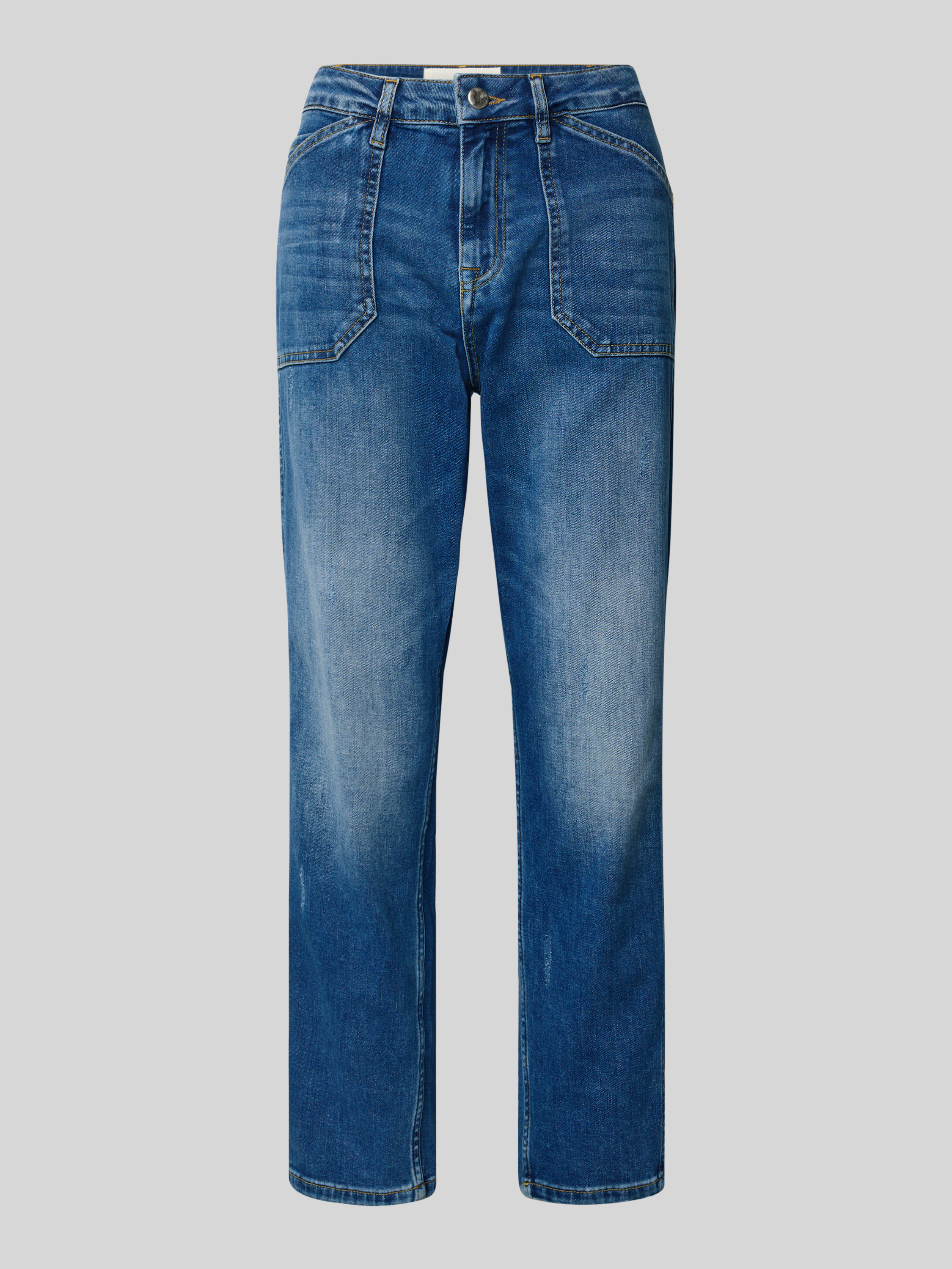 Jeansy o kroju straight fit z kieszeniami z patką model ‘Schönau’ - niebieski