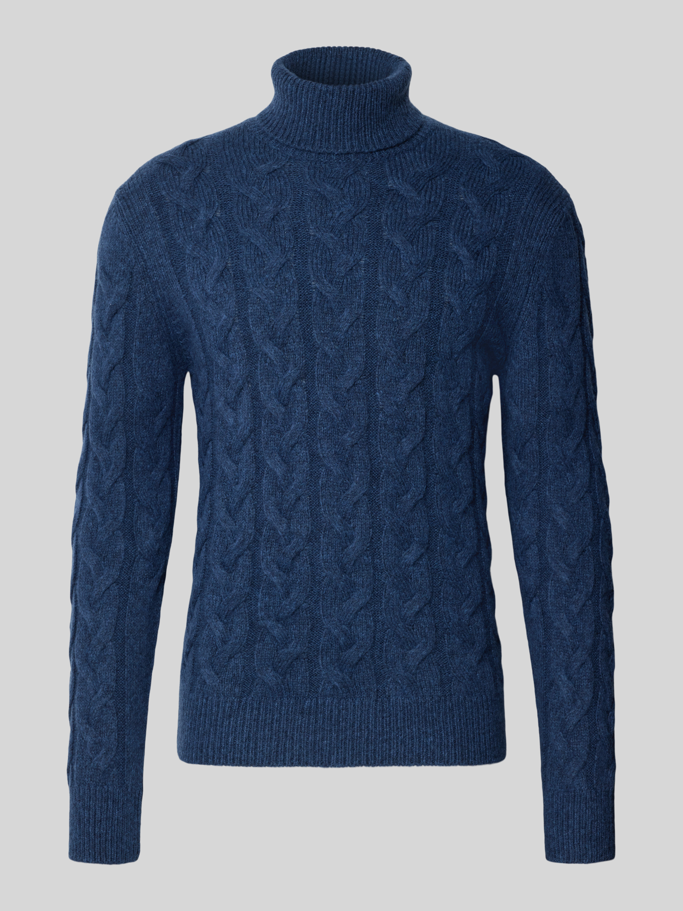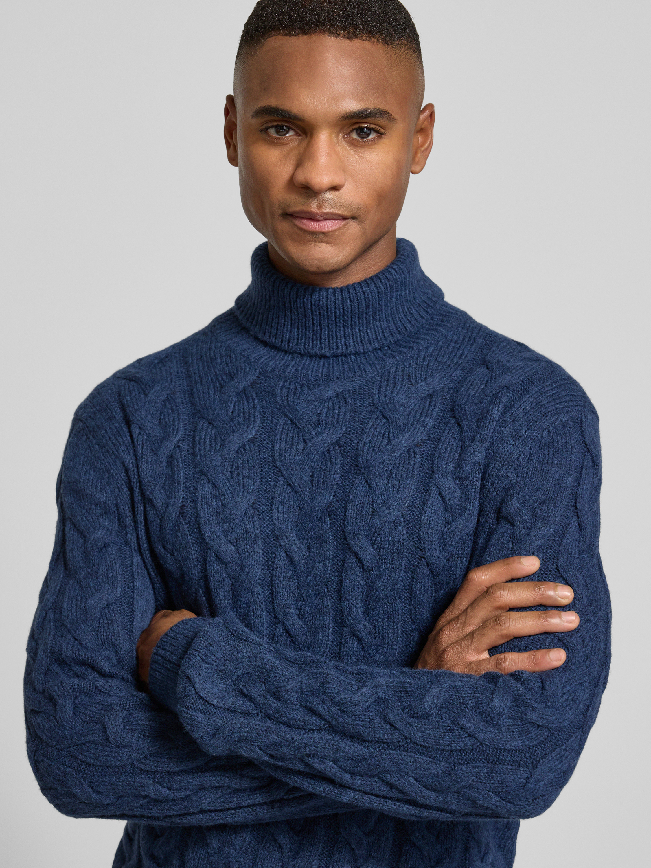 Sweter z dzianiny z golfem - jeansowy niebieski