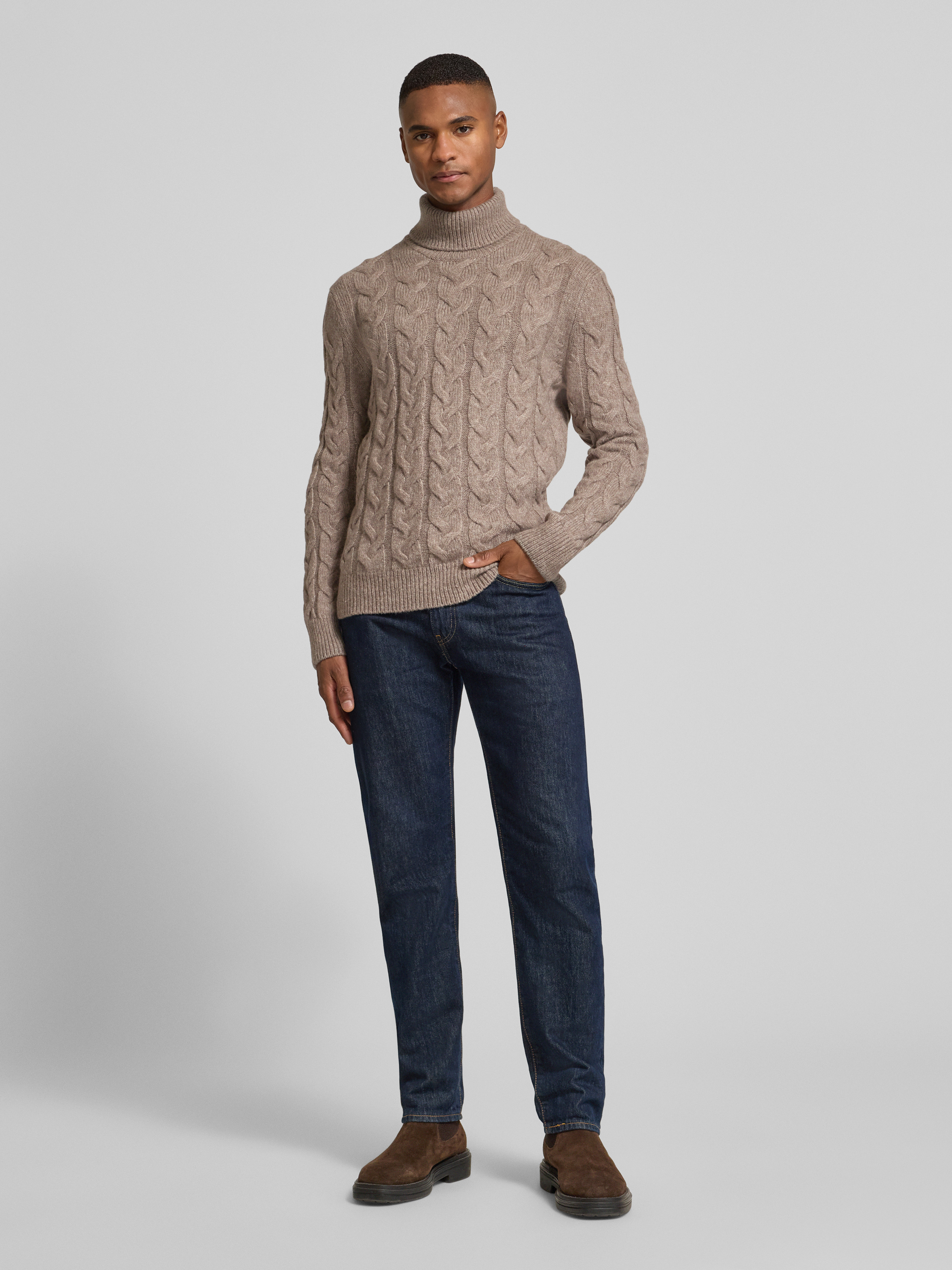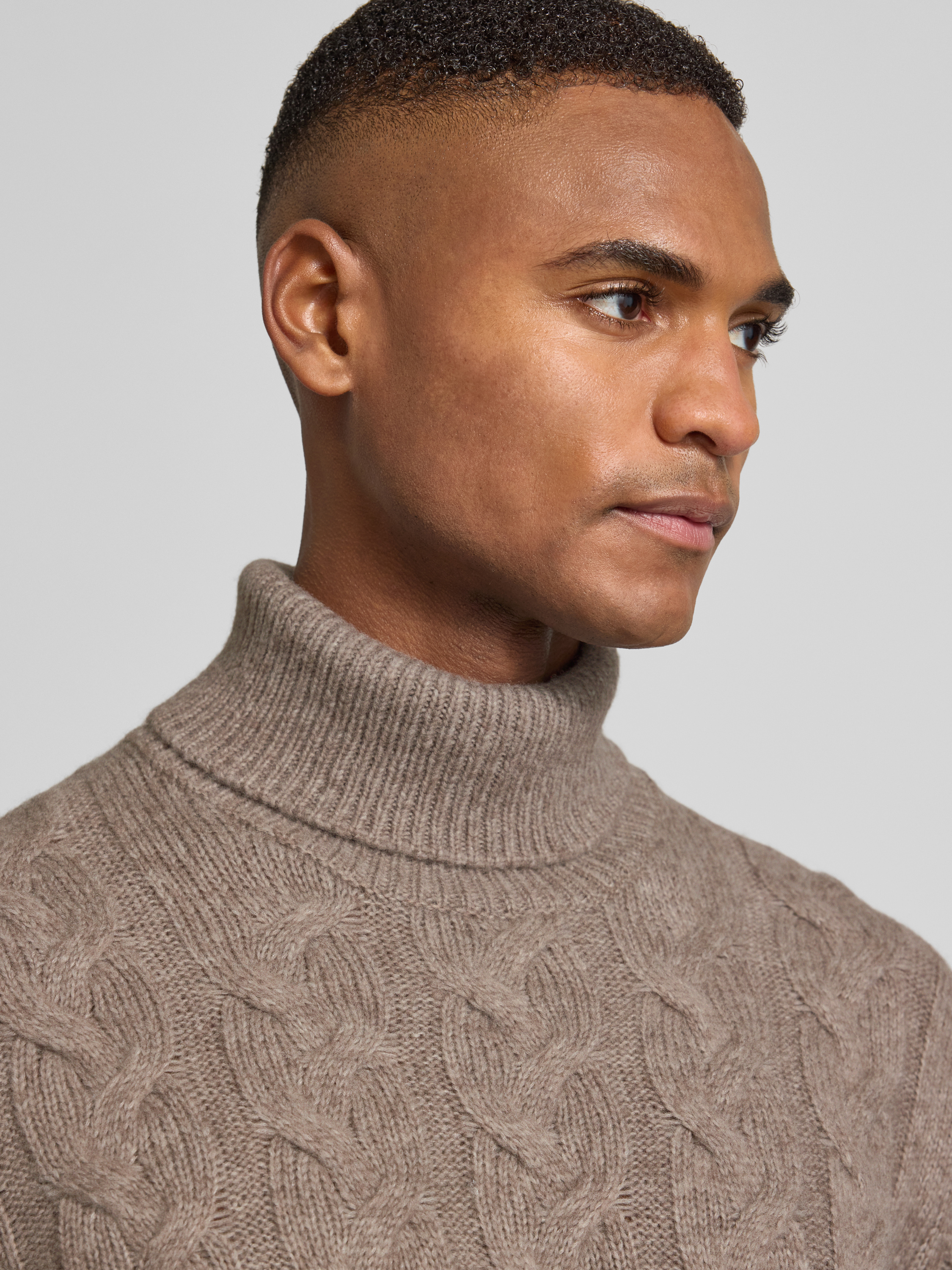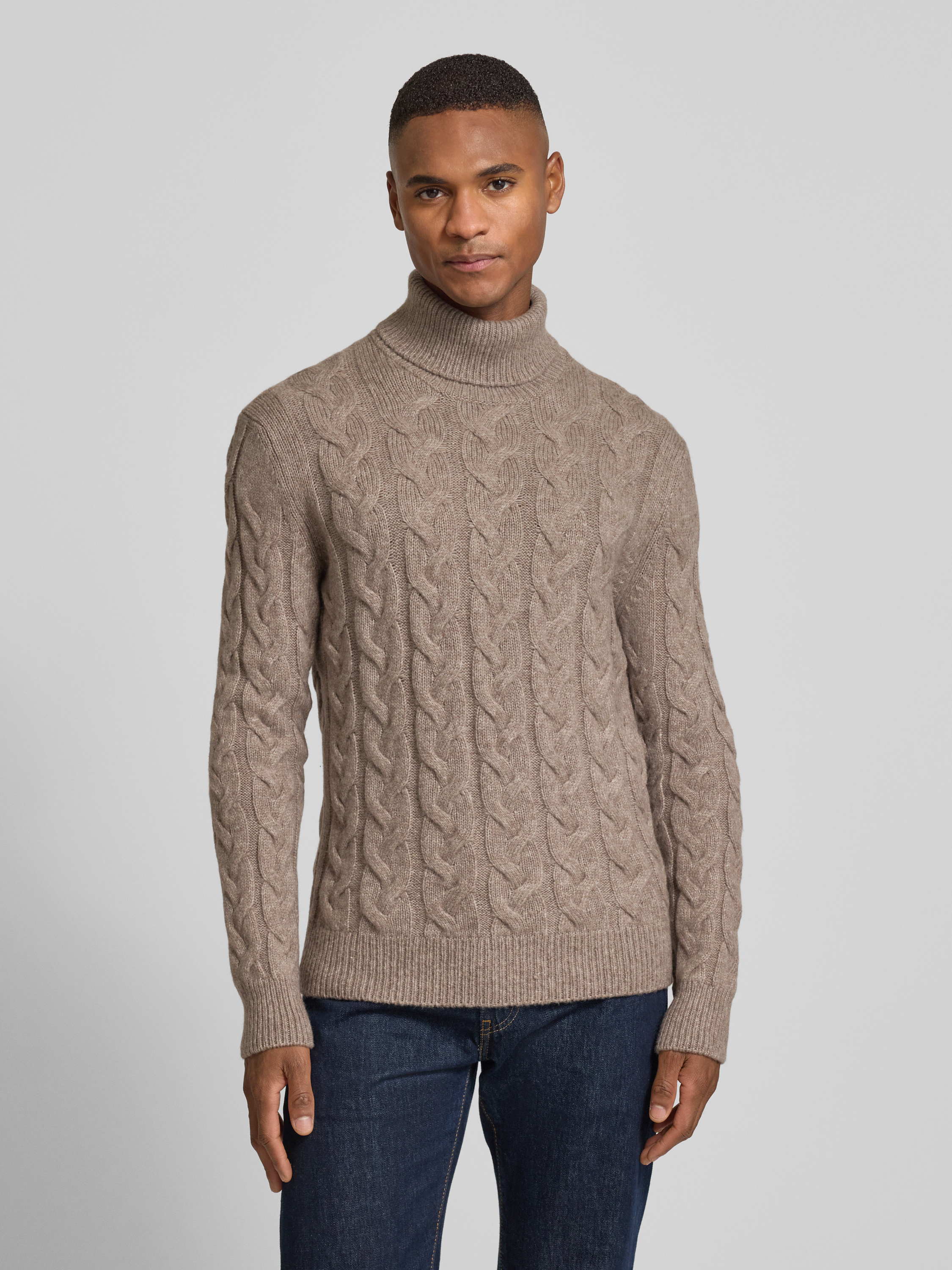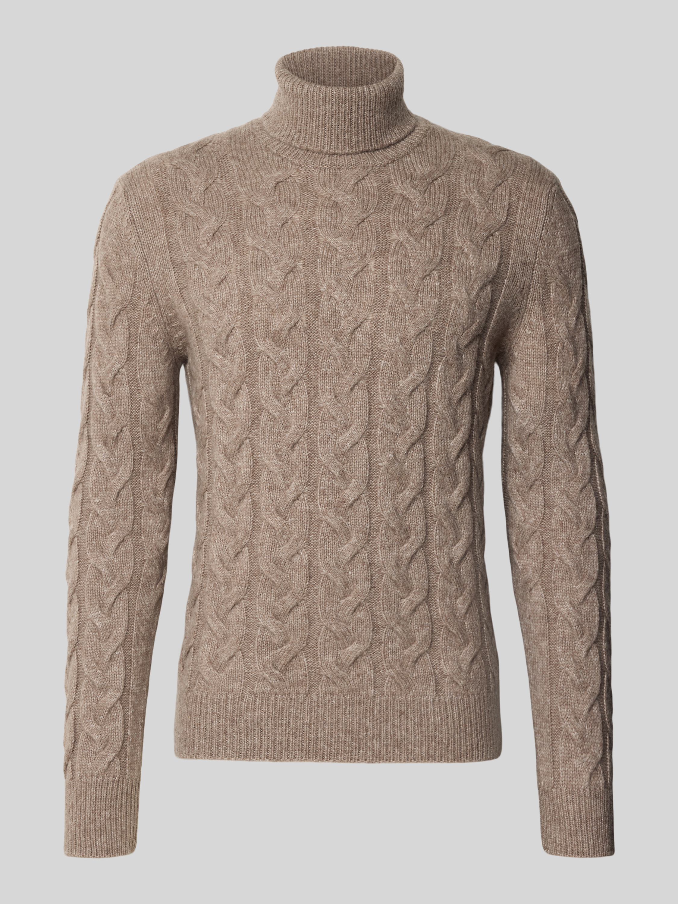 Sweter z dzianiny z golfem - piaskowy