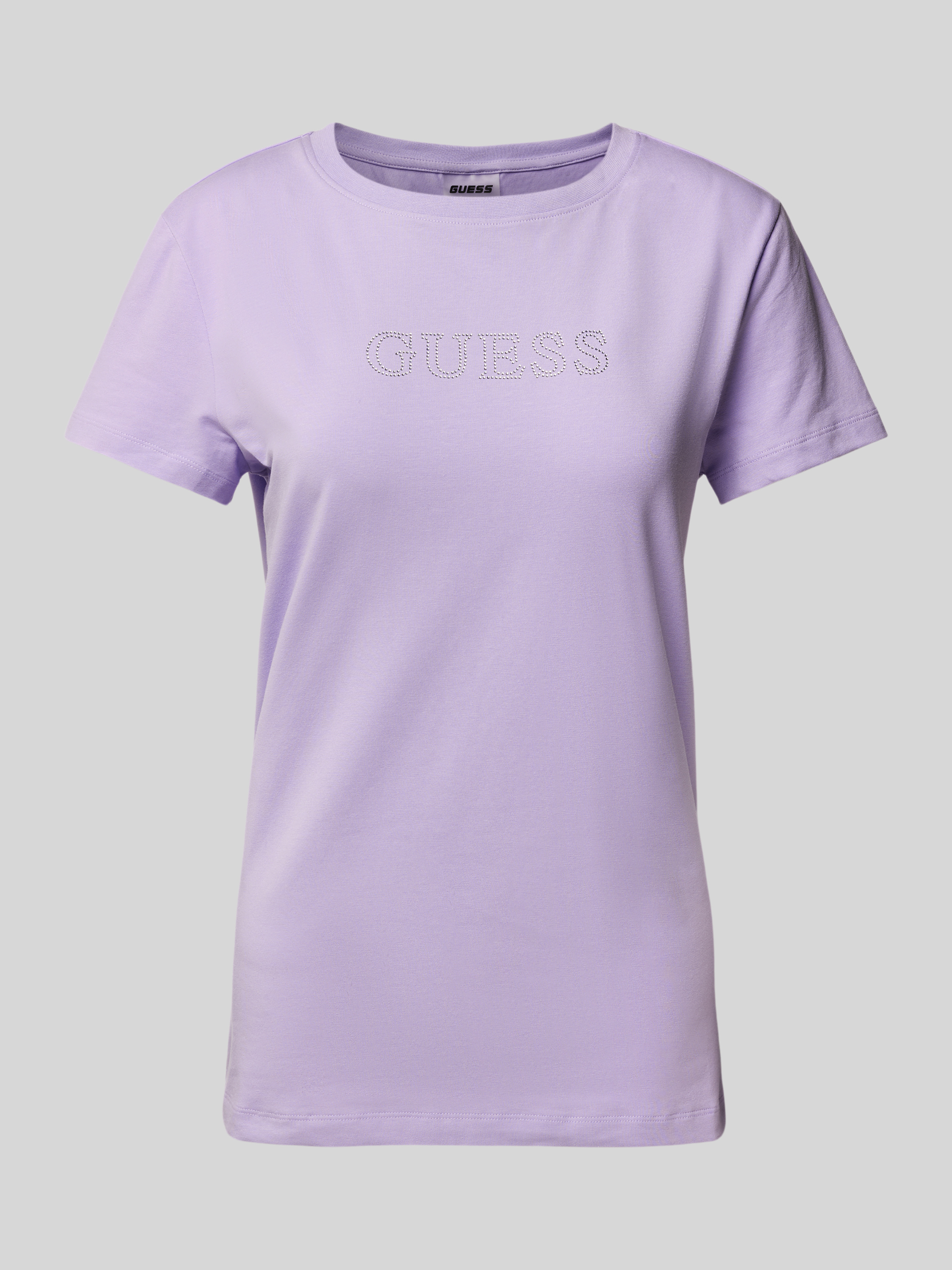 T-shirt z detalem z logo model ‘BRIANA’ - jasnofioletowy