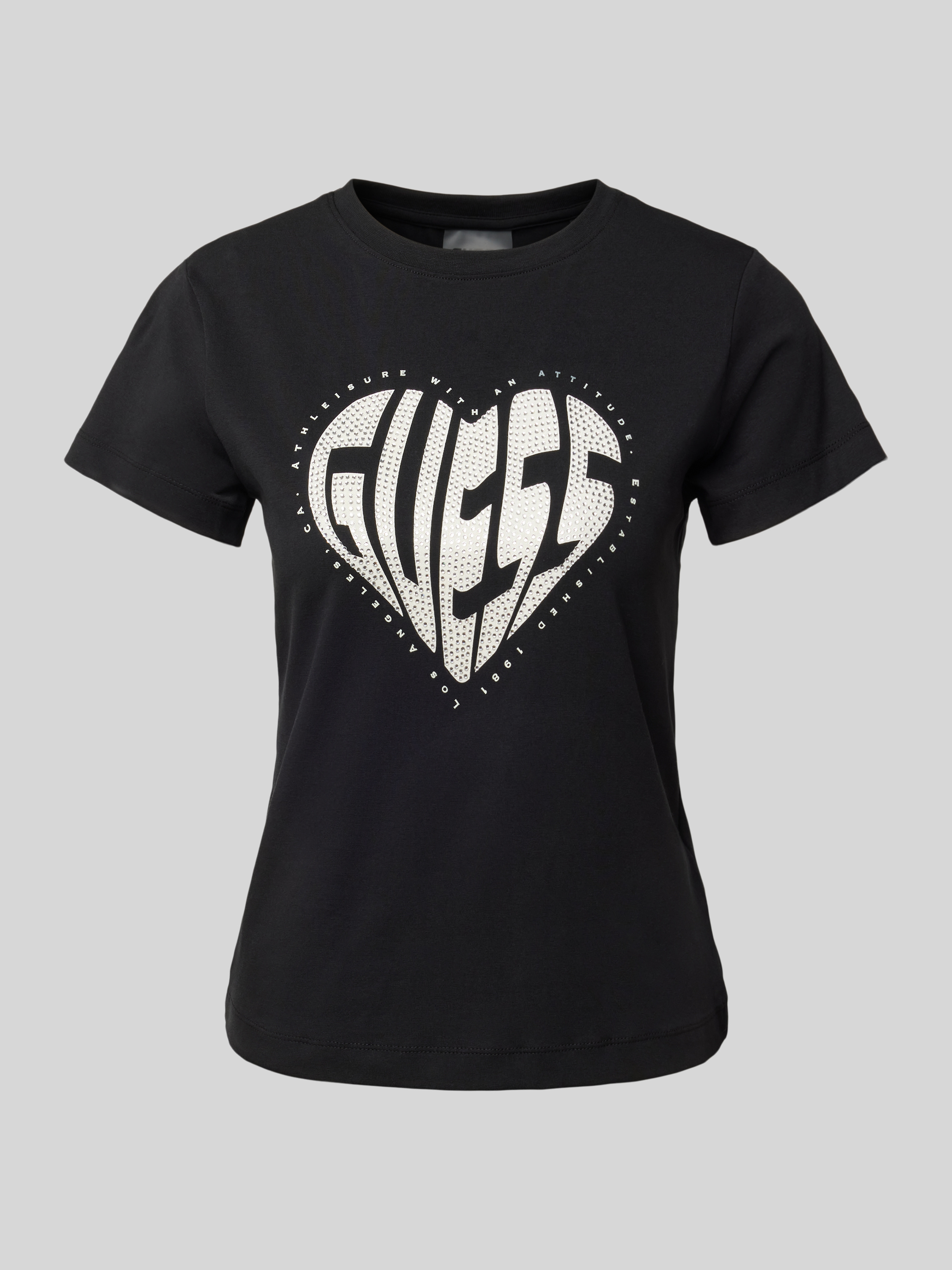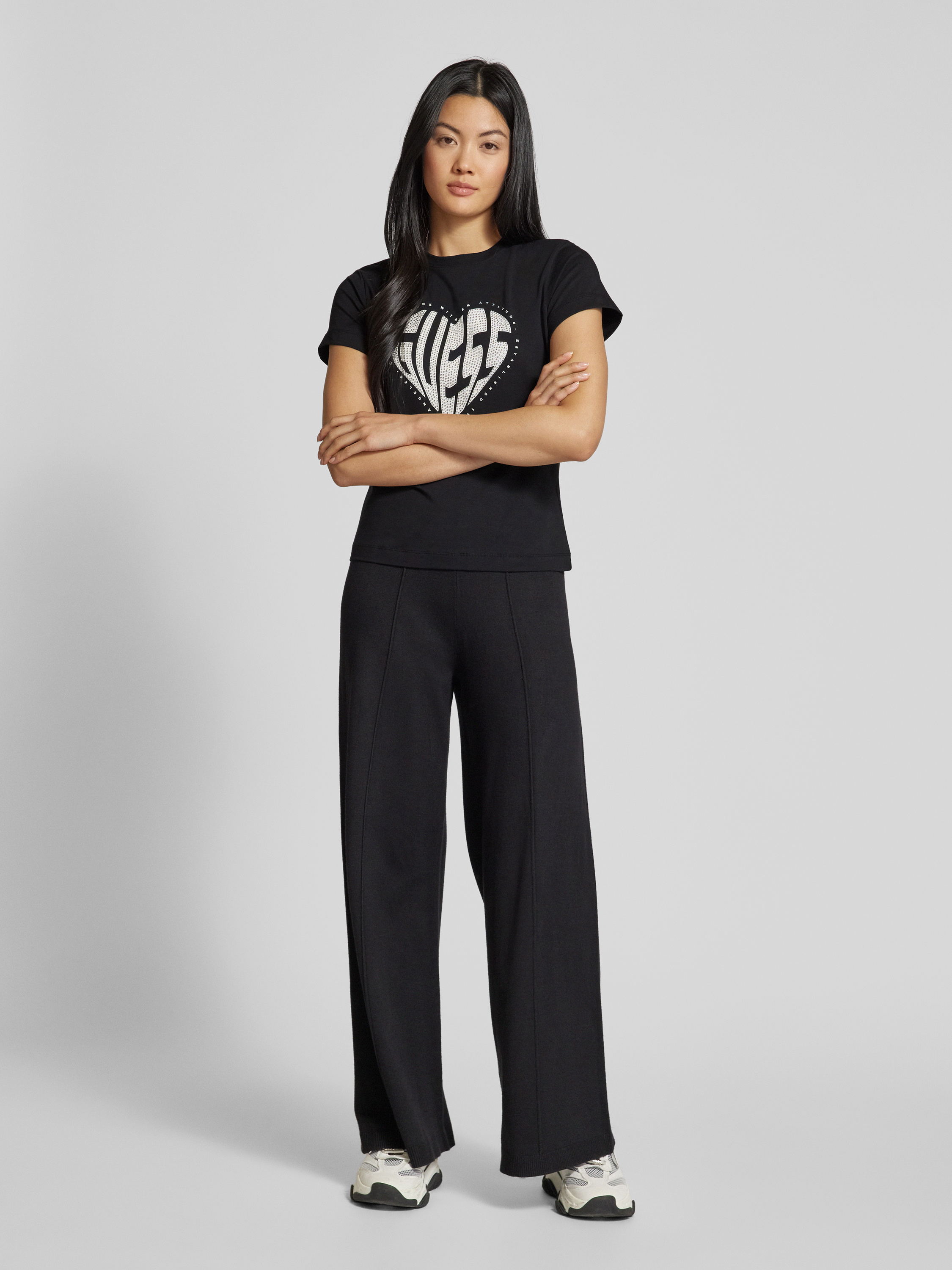 T-shirt z detalem z logo model ‘JULIA’ - czarny