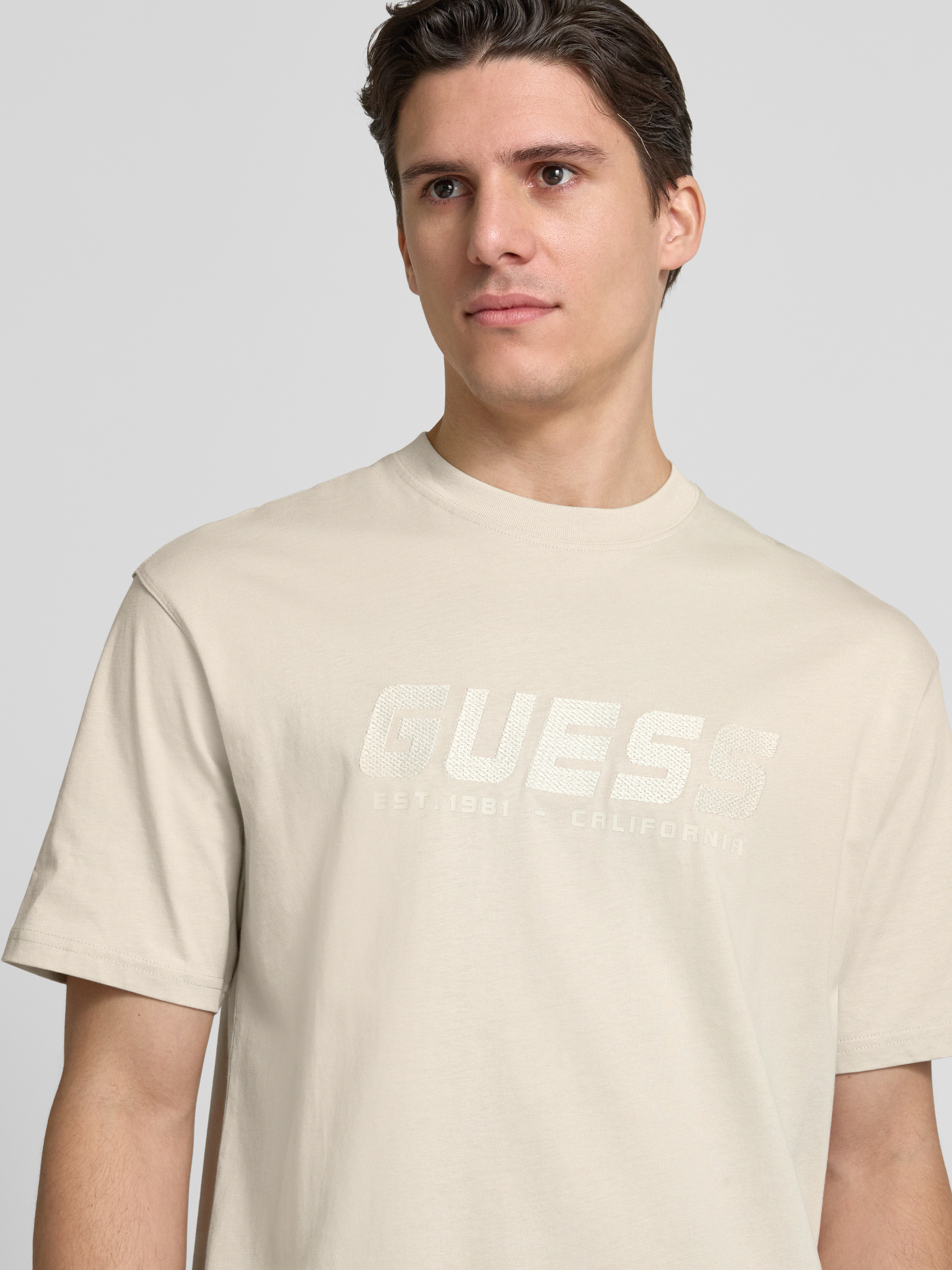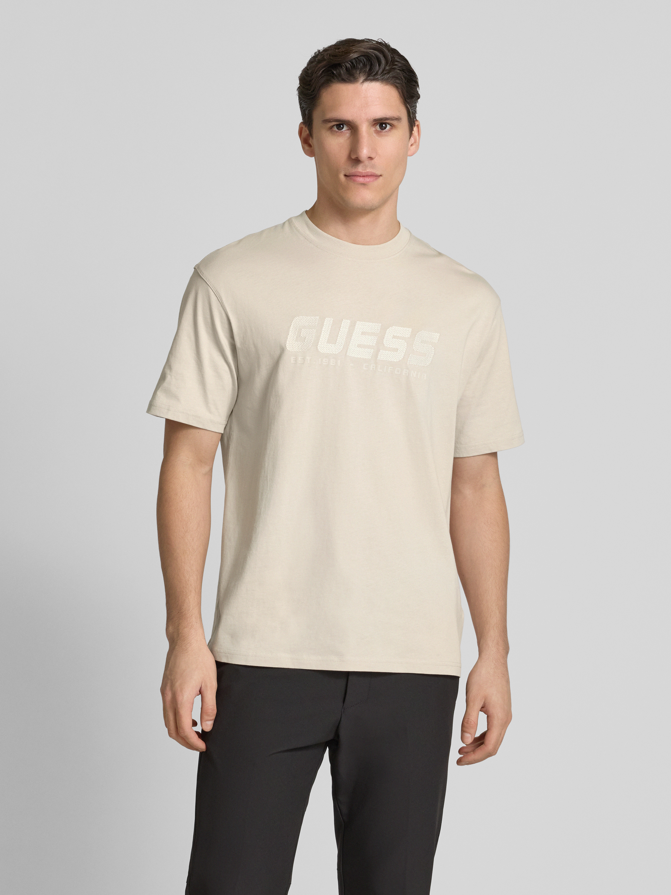 T-shirt z nadrukiem z logo model ‘SURON’ - beżowy