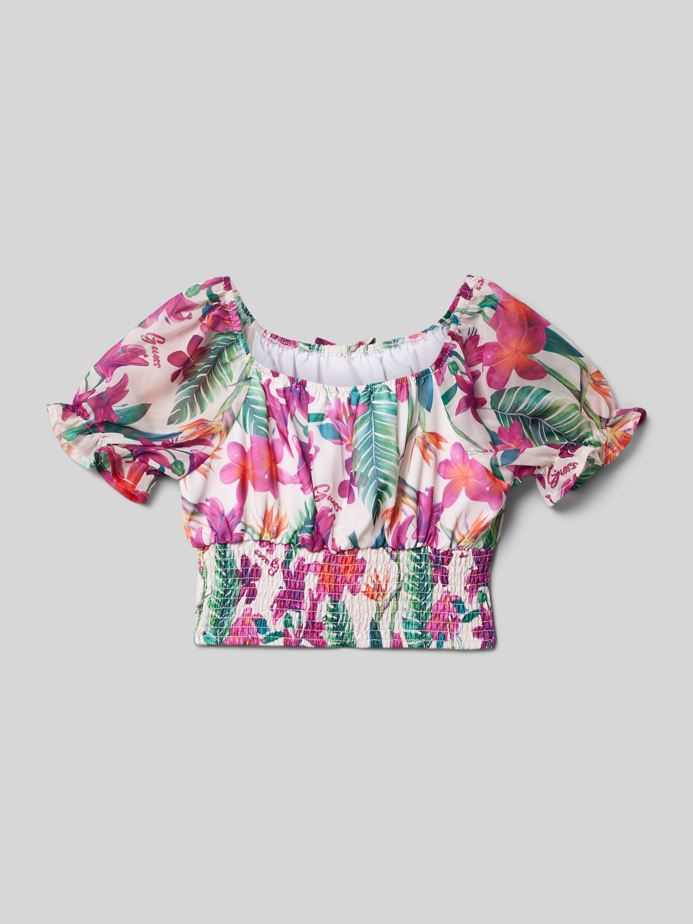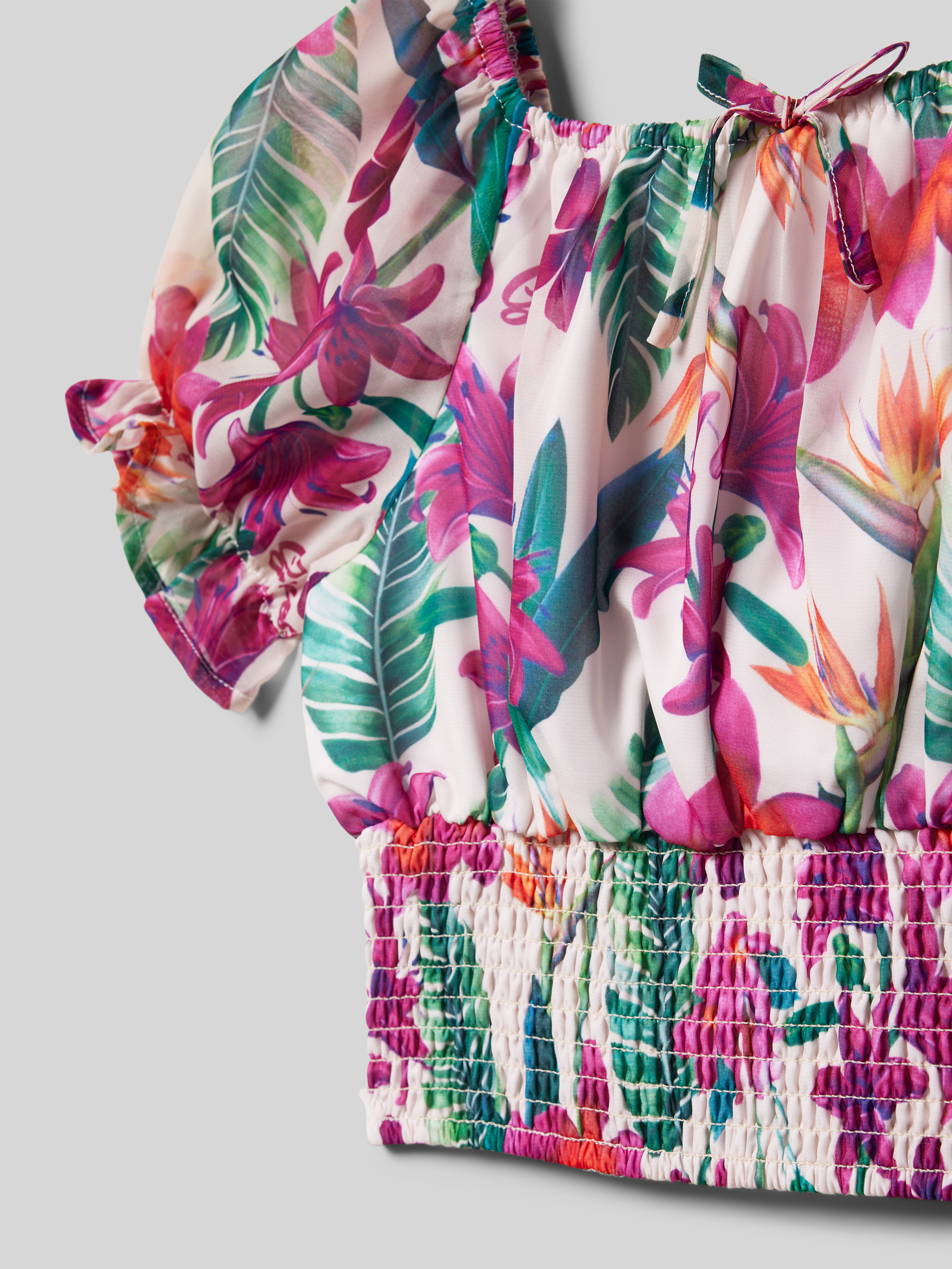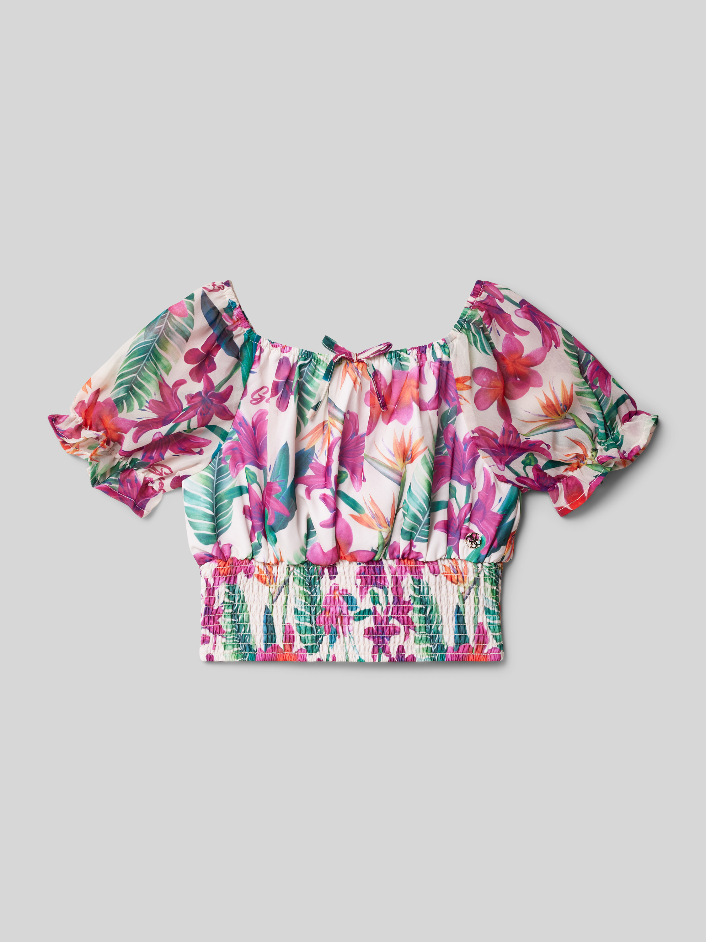 Bluzka krótka z marszczonym detalem - mocnoróżowy