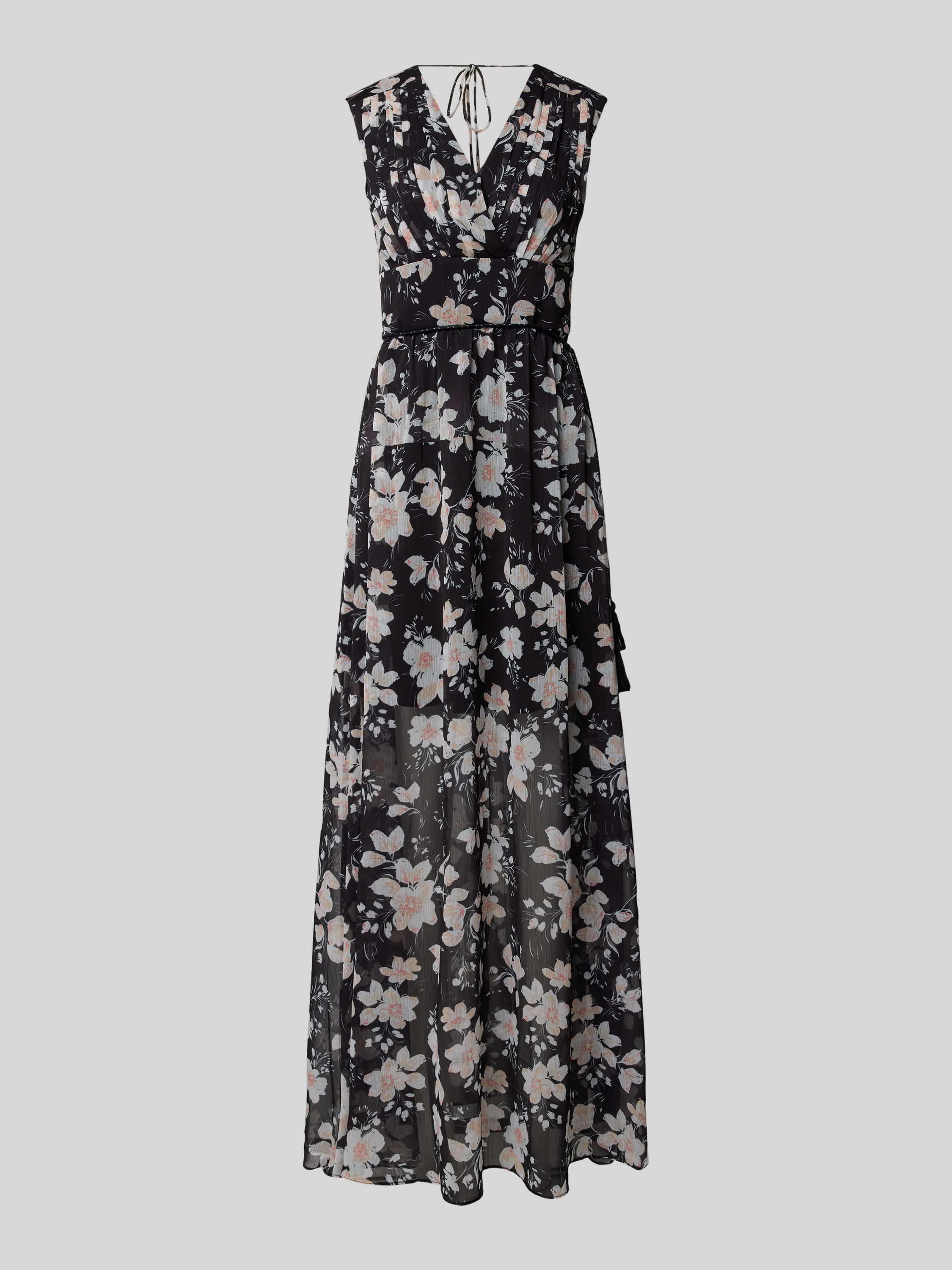 Długa sukienka z kwiatowym nadrukiem model ‘GILDA’ - czarny