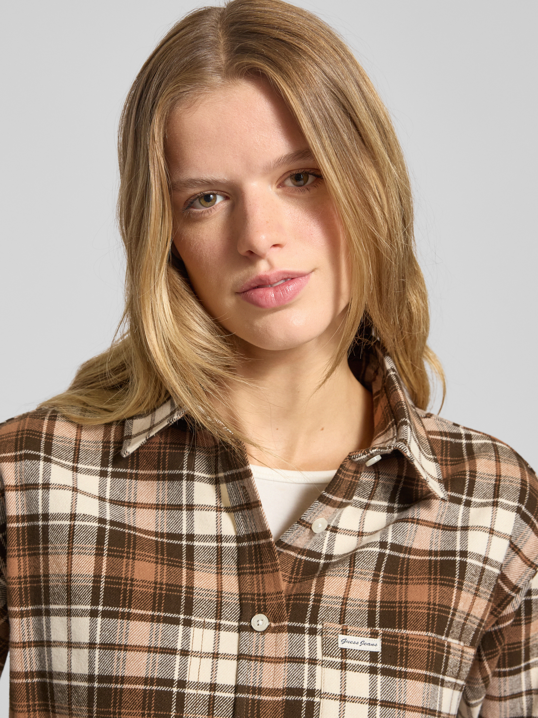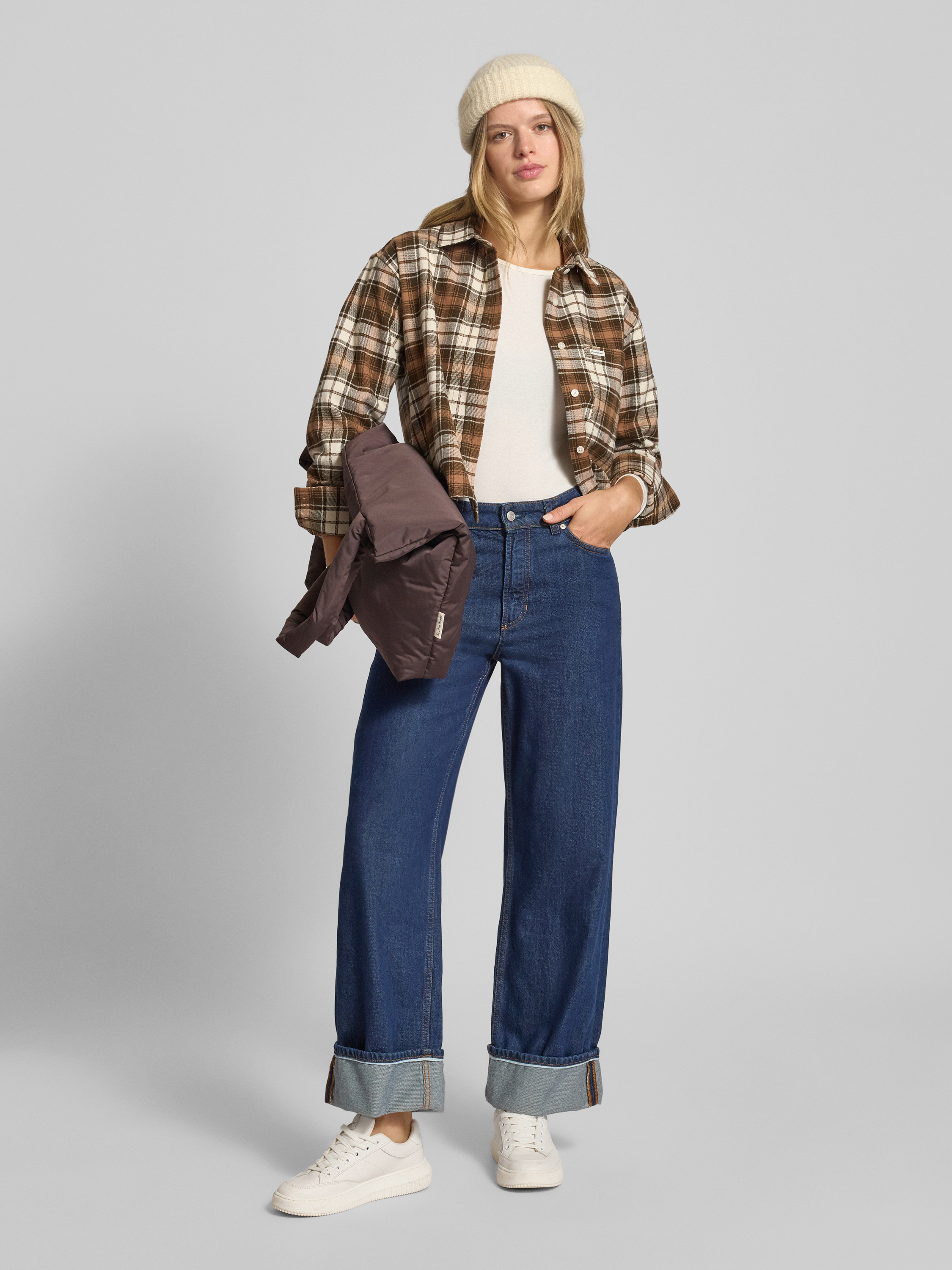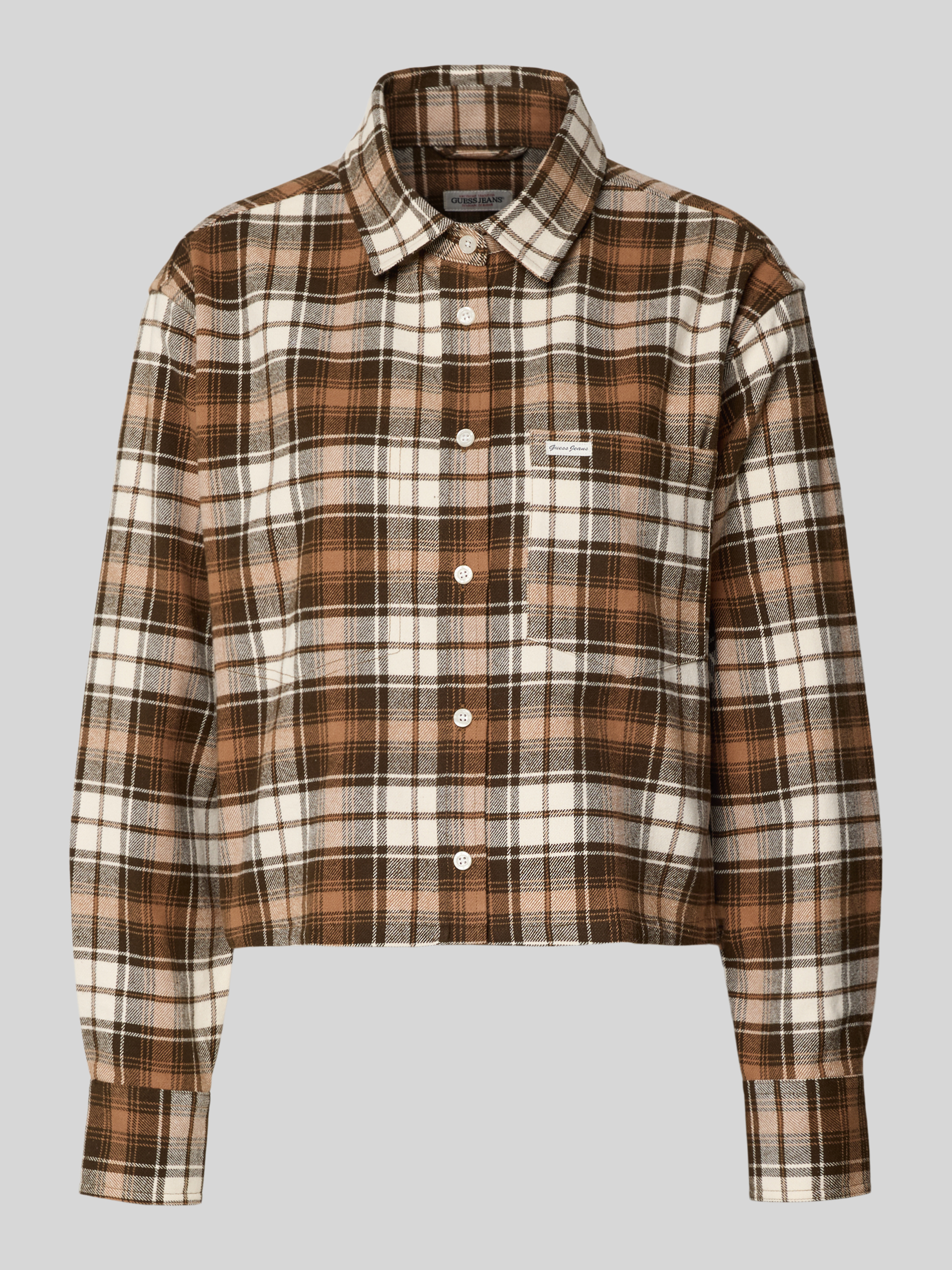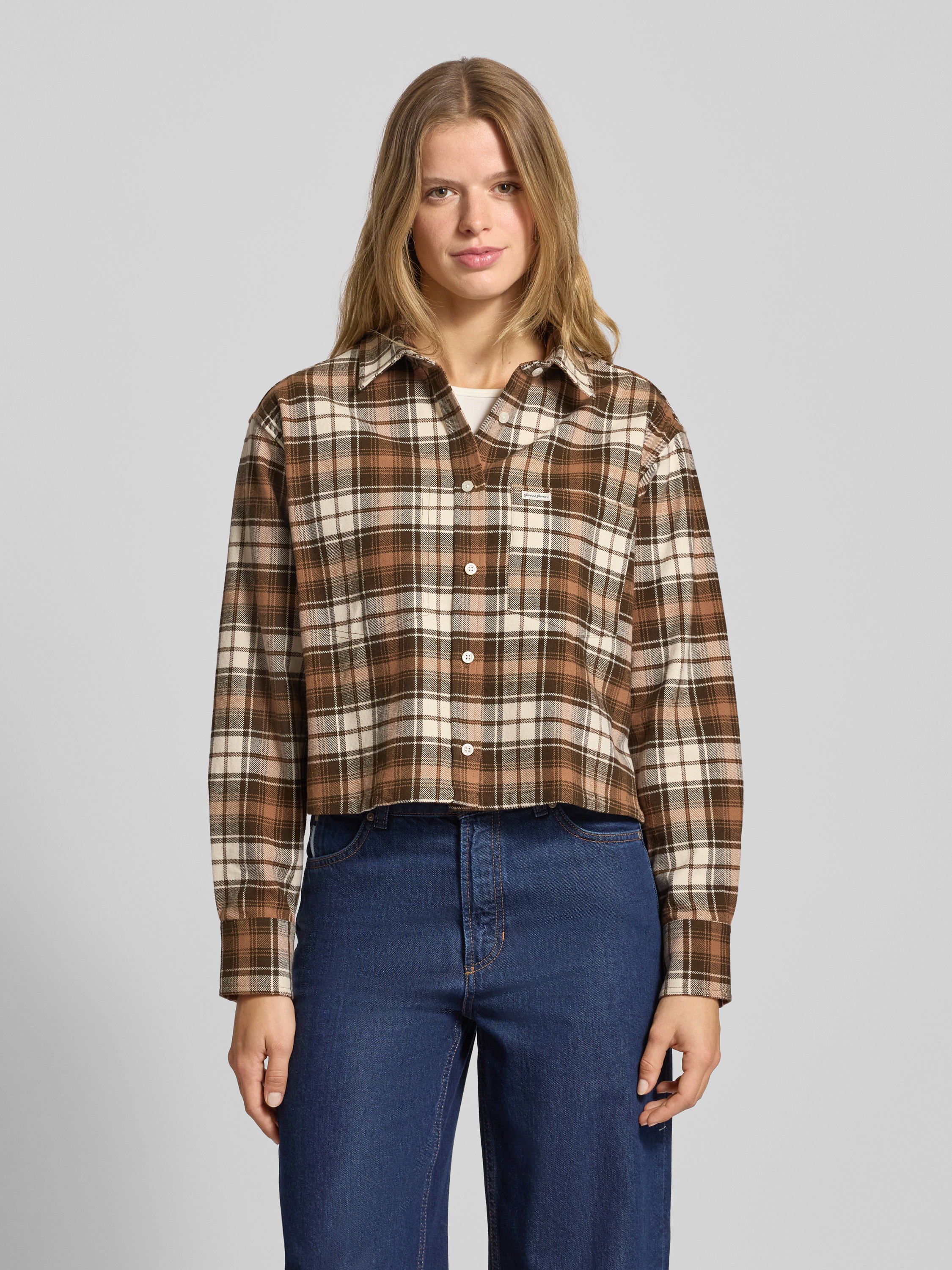 Bluzka koszulowa o kroju regular fit z naszywką z logo model ‘Boxy’ - camel