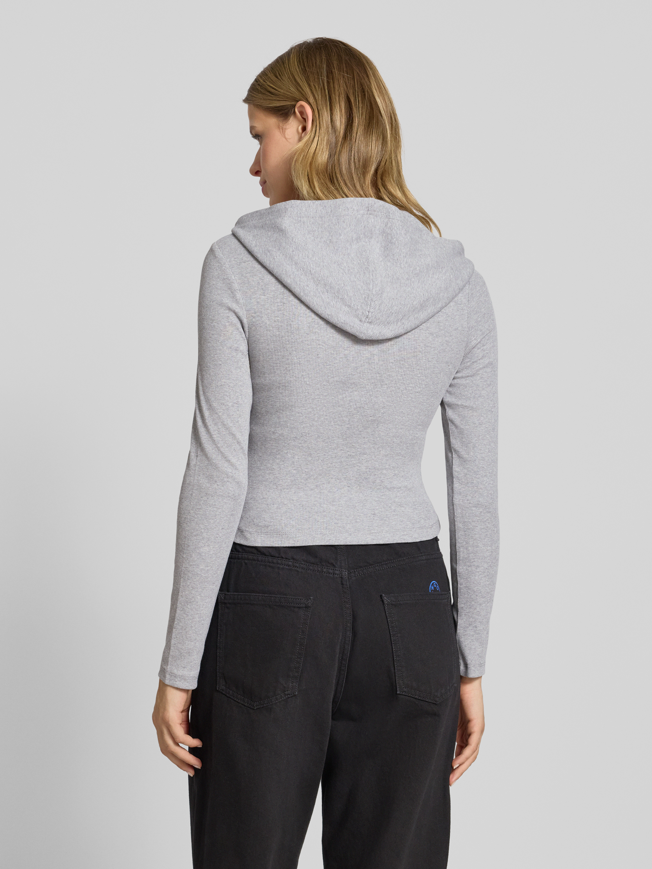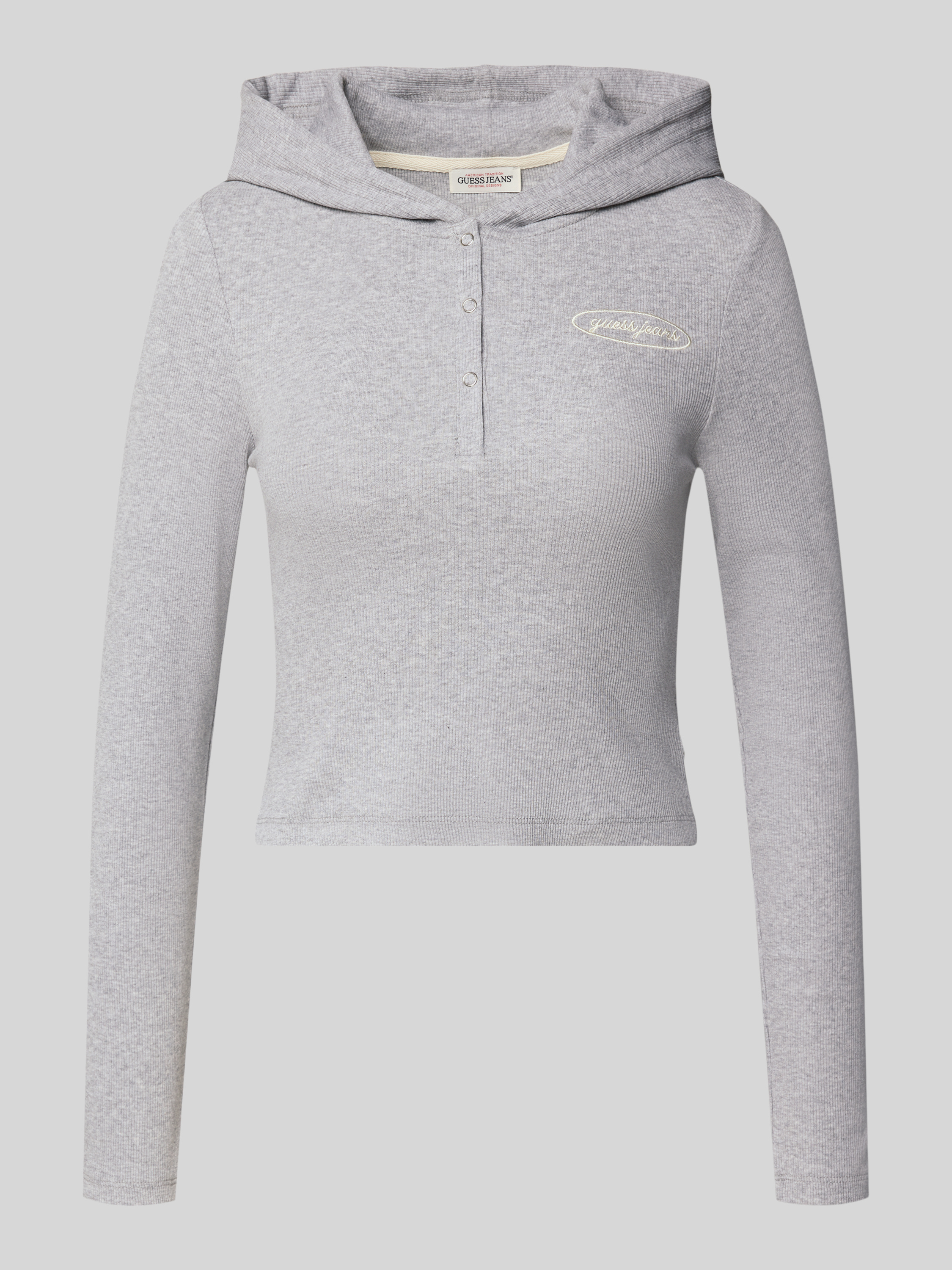 Bluzka o kroju slim fit z długim rękawem, kapturem i wyhaftowanym logo - jasnoszary melanż