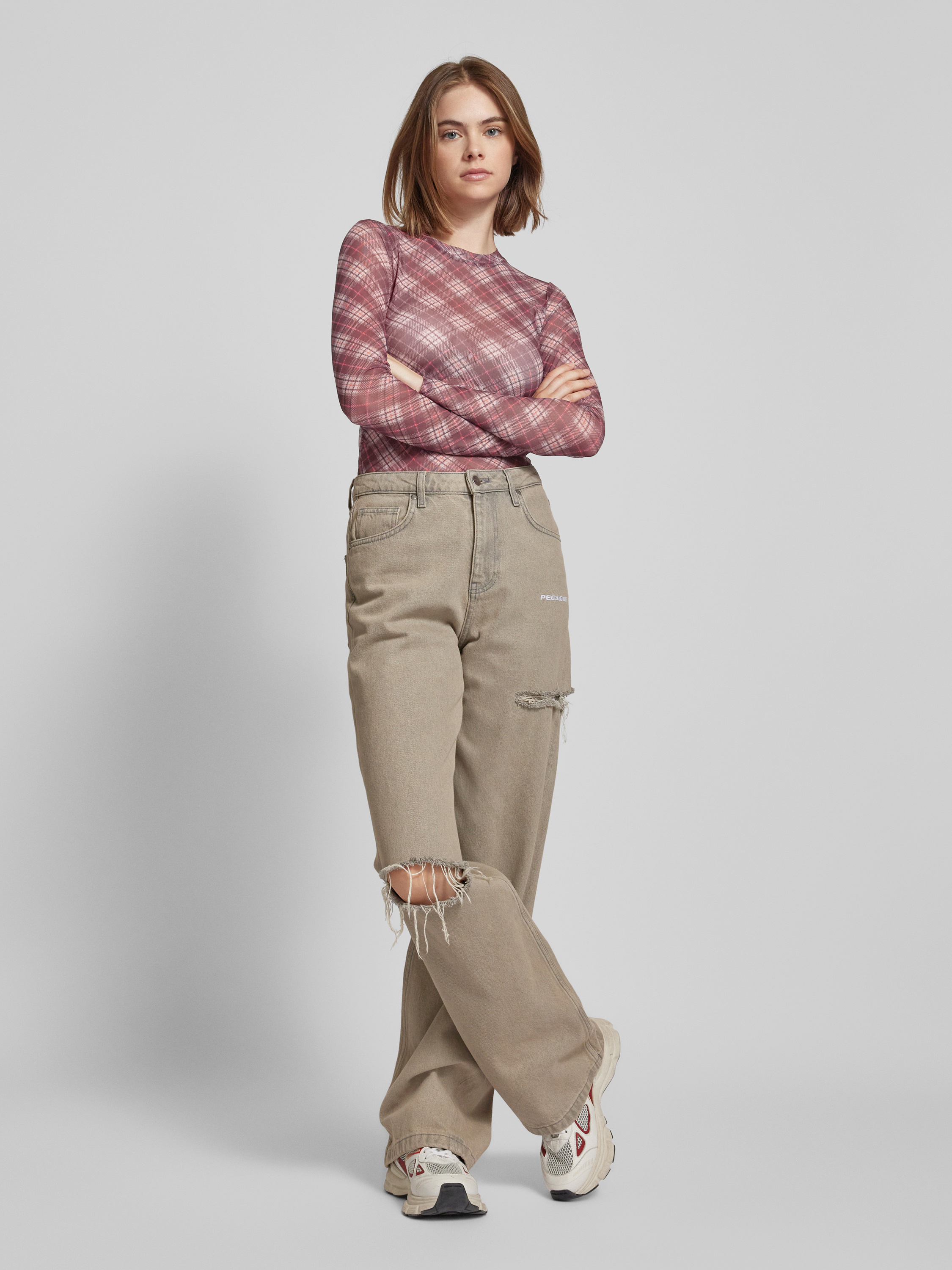 Bluzka z długim rękawem z dekoltem okrągłym - czerwony