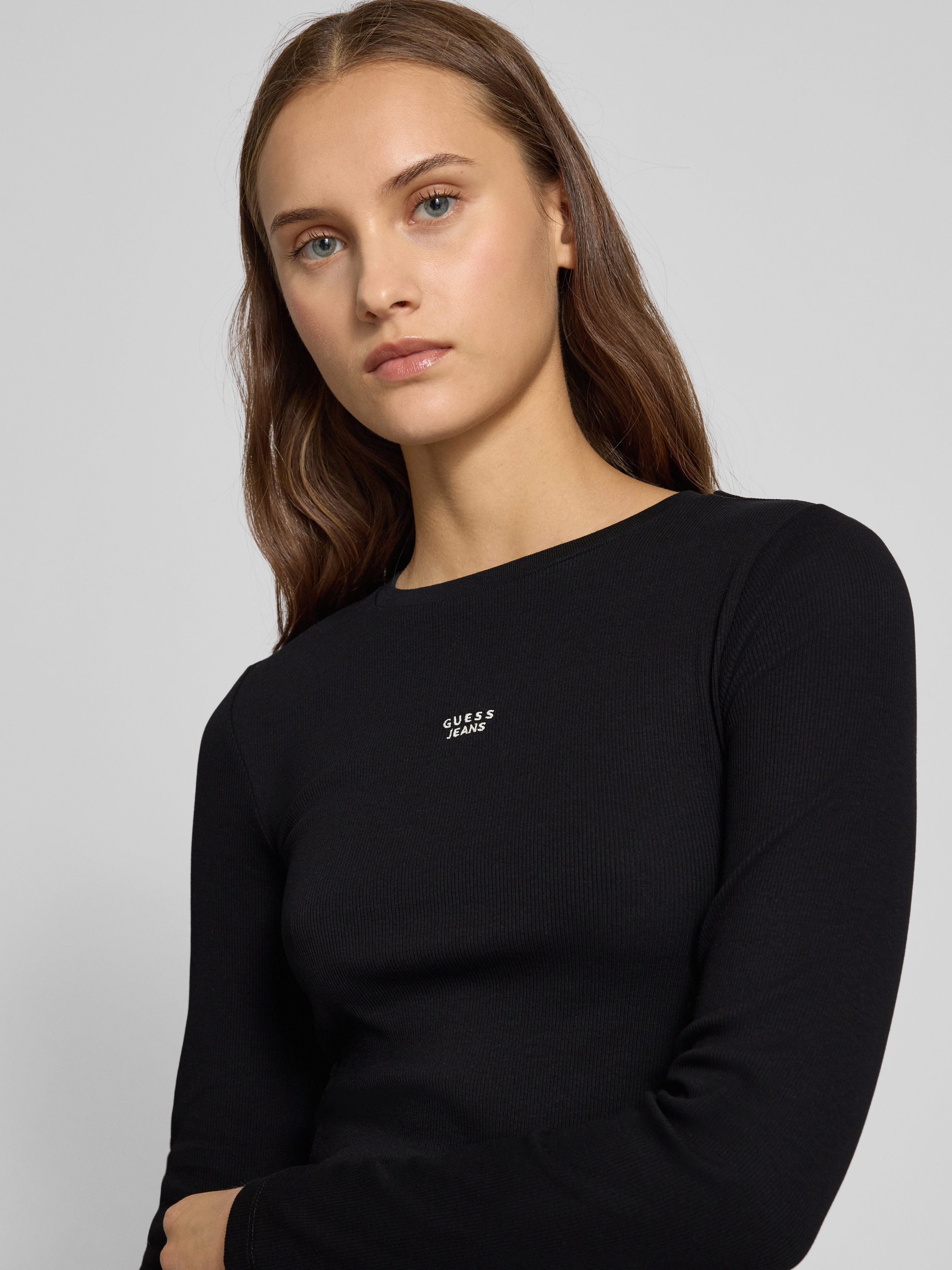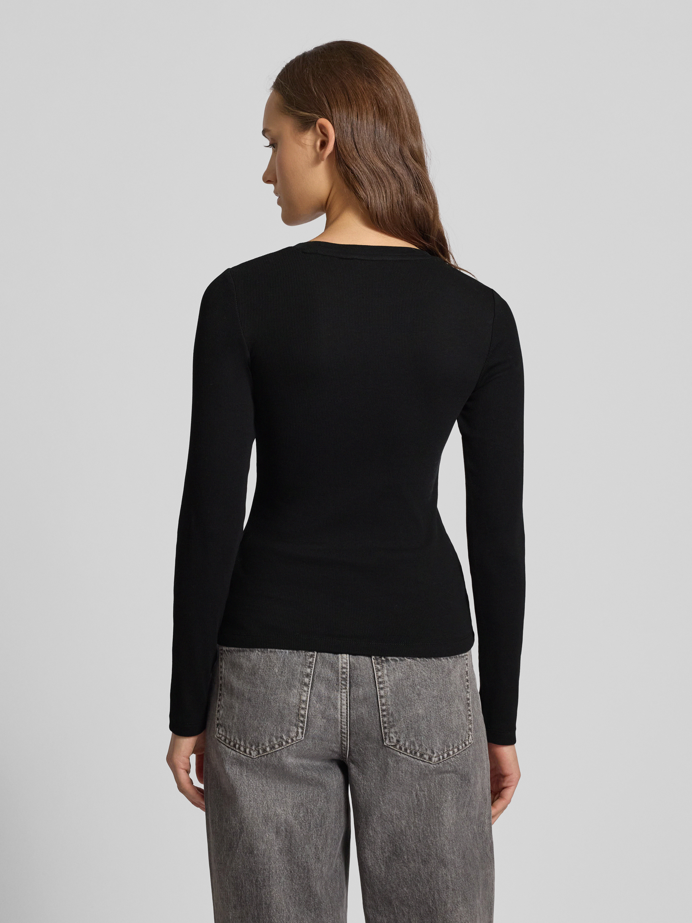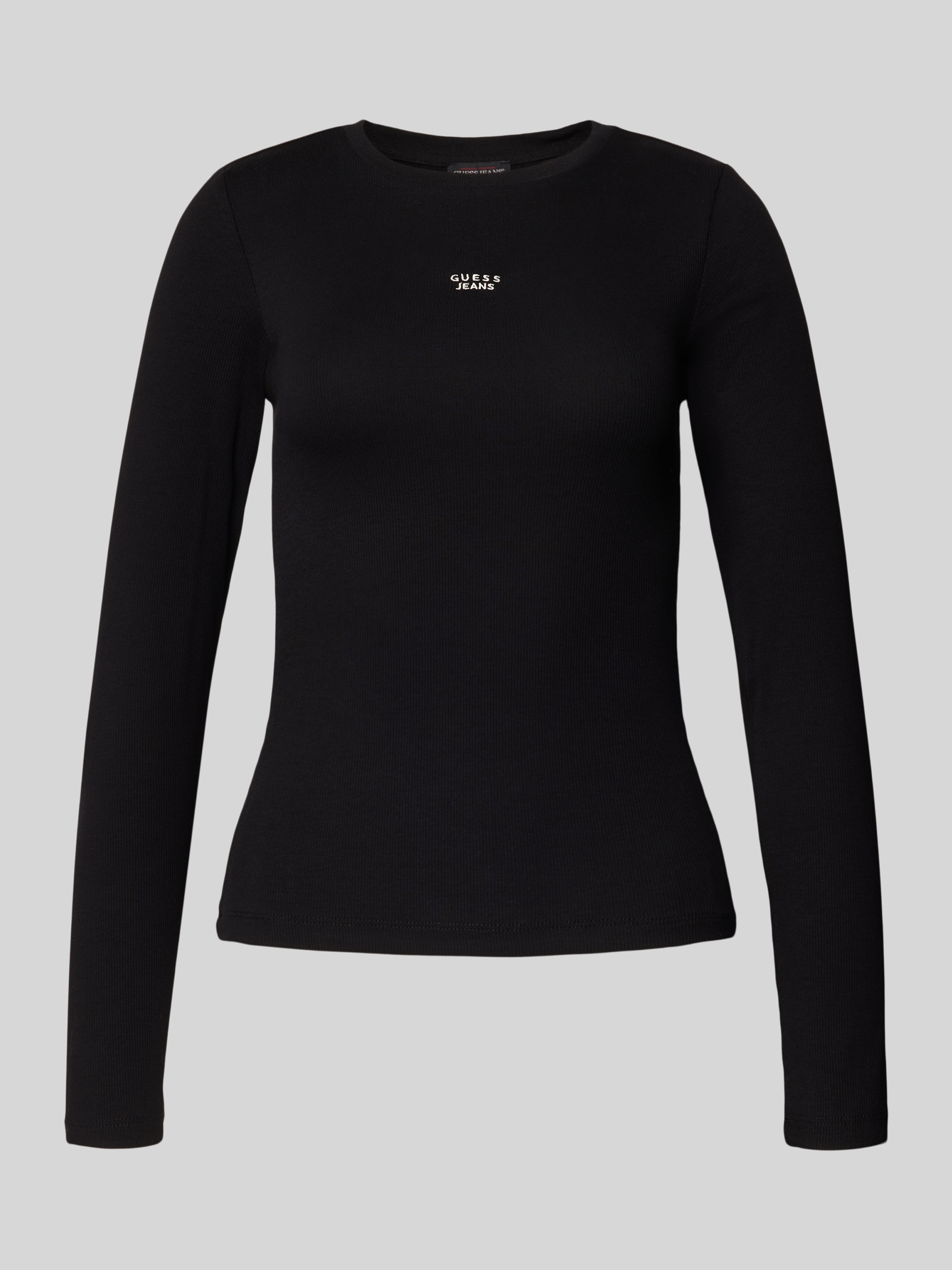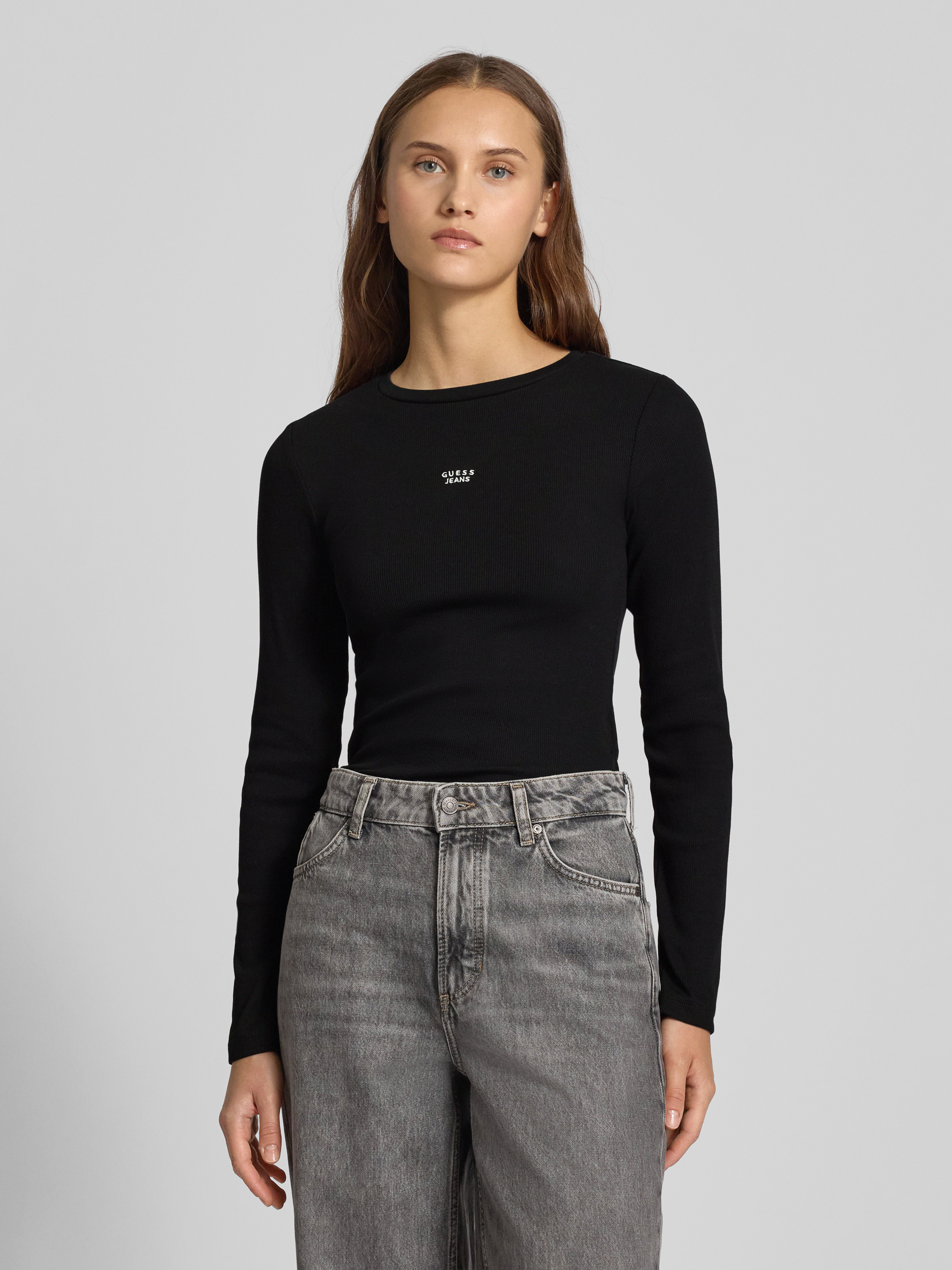 Bluzka z długim rękawem z wyhaftowanym logo - czarny
