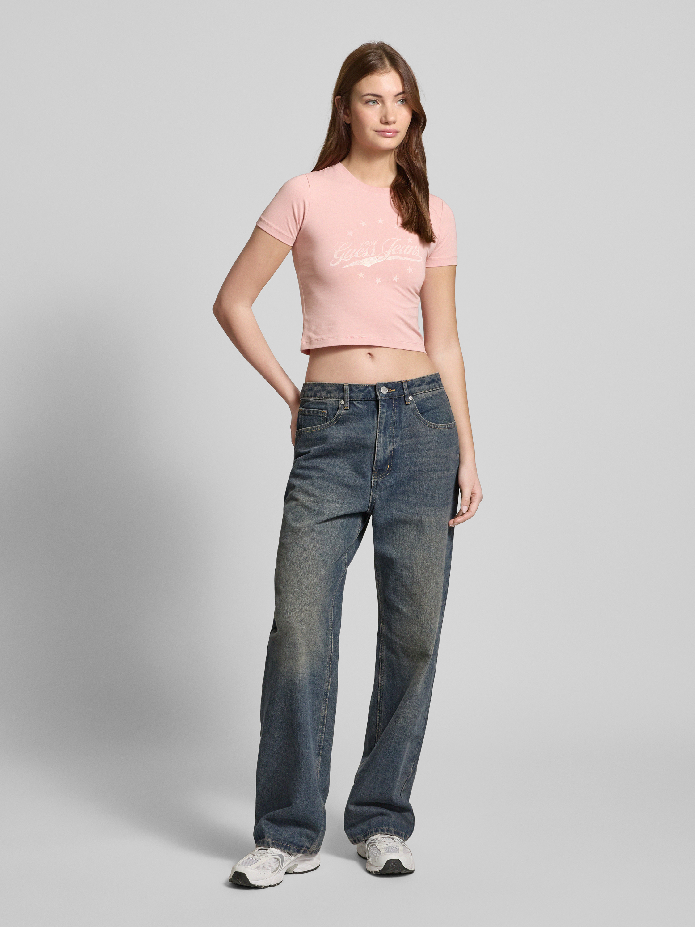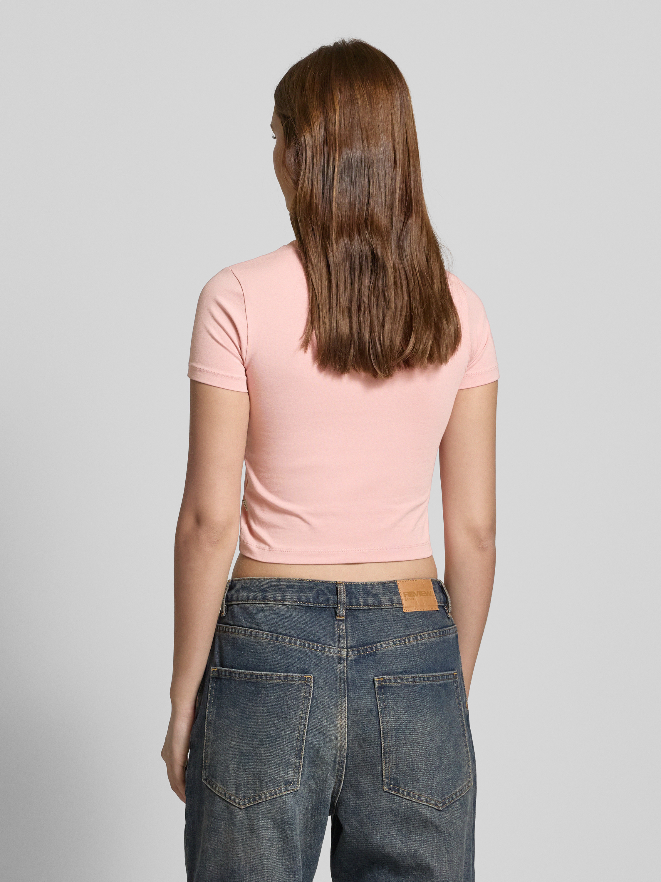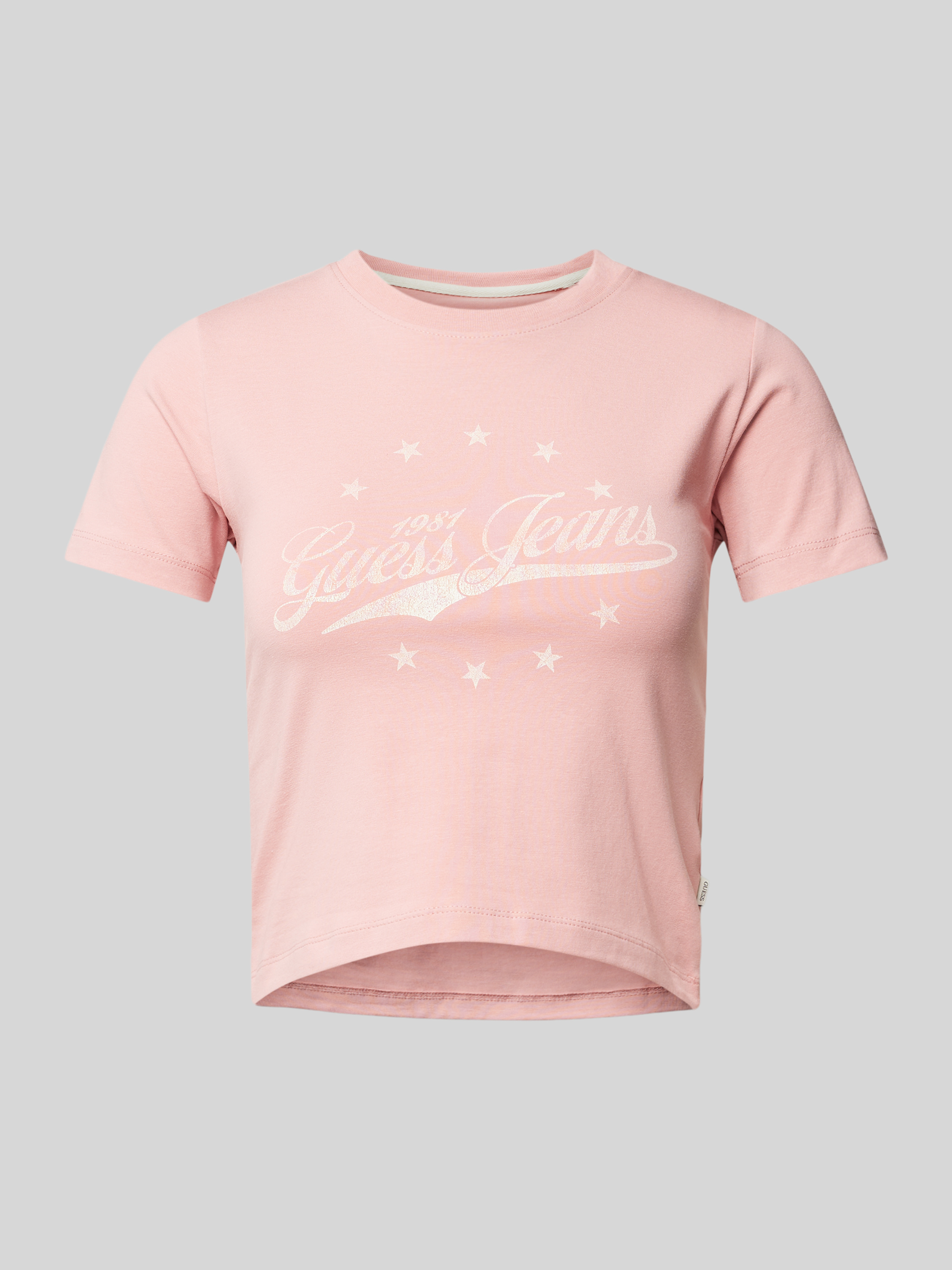 T-shirt krótki z nadrukiem z logo - brudnoróżowy