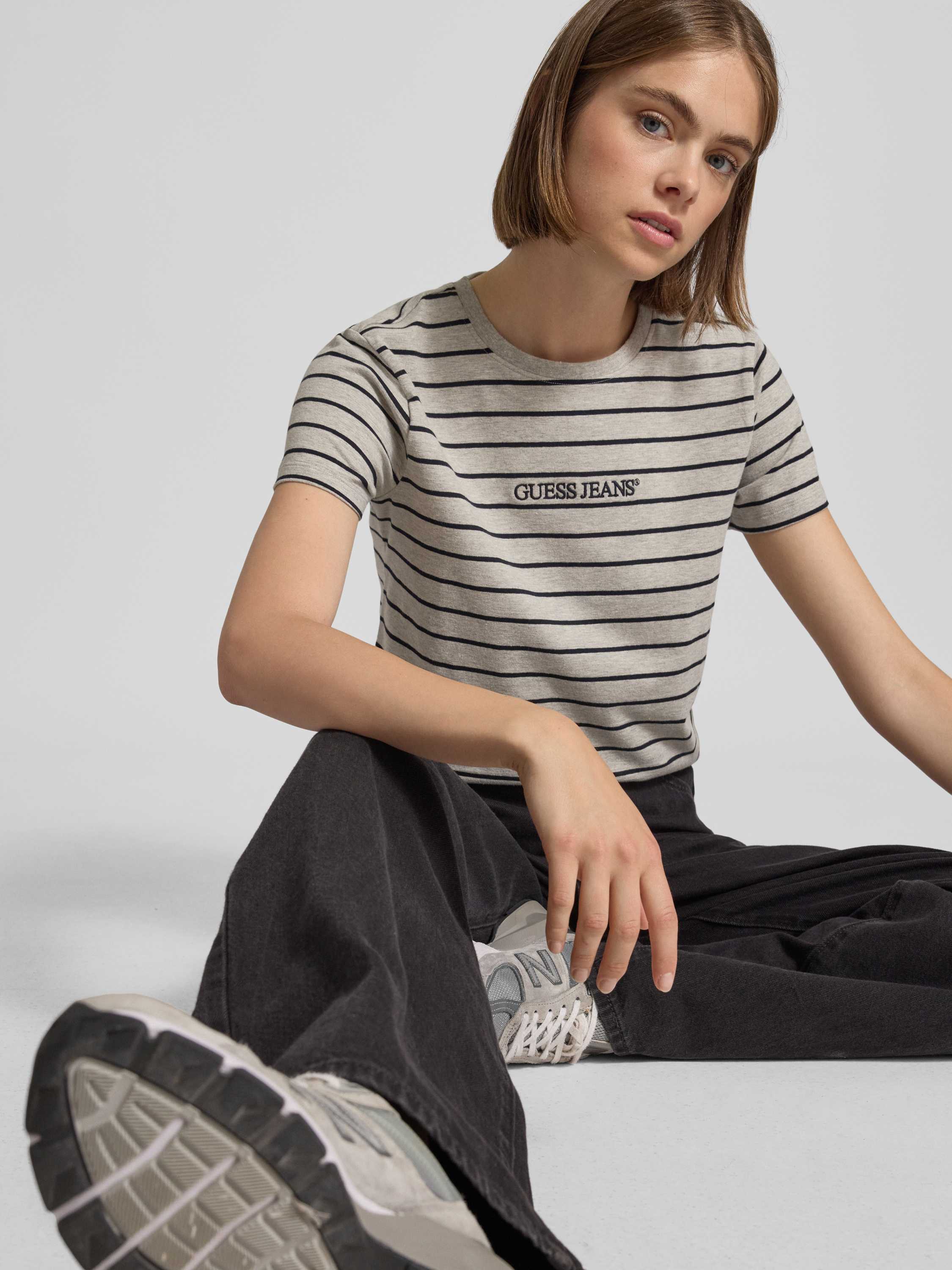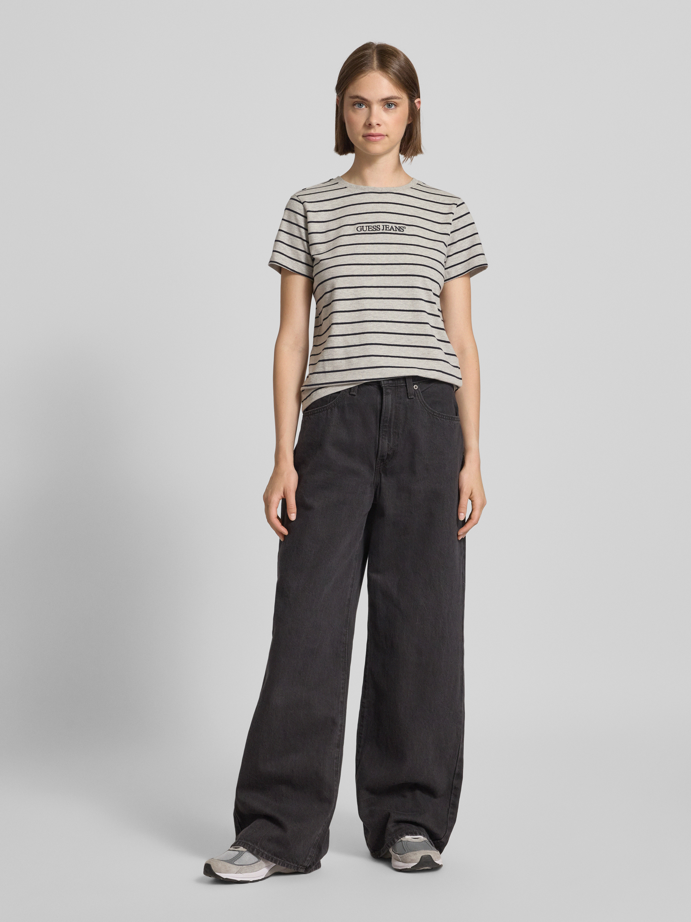 T-shirt o kroju regular fit z wyhaftowanym logo - écru