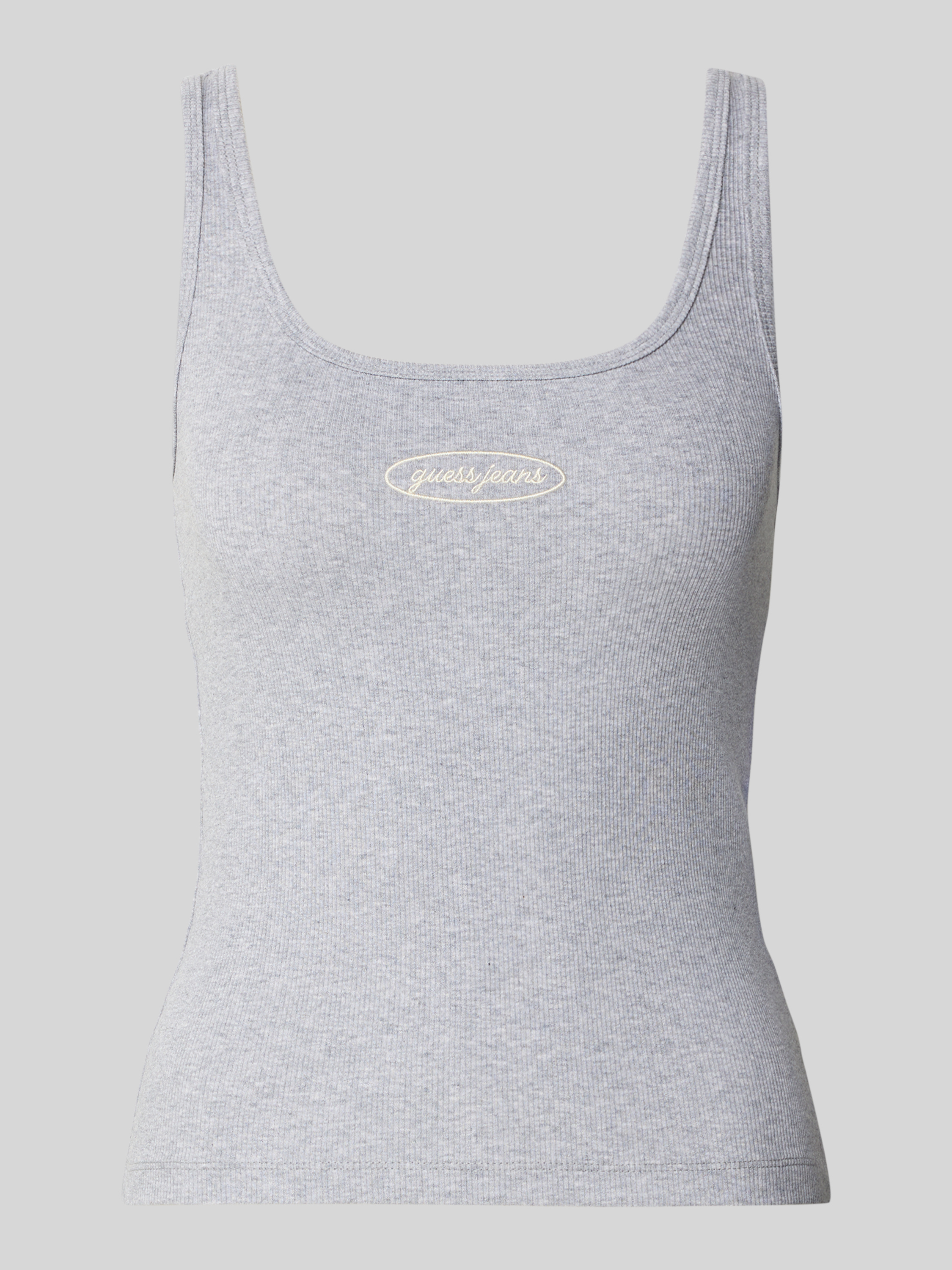 Top o kroju slim fit z prążkowaniem i wyhaftowanym logo - jasnoszary melanż