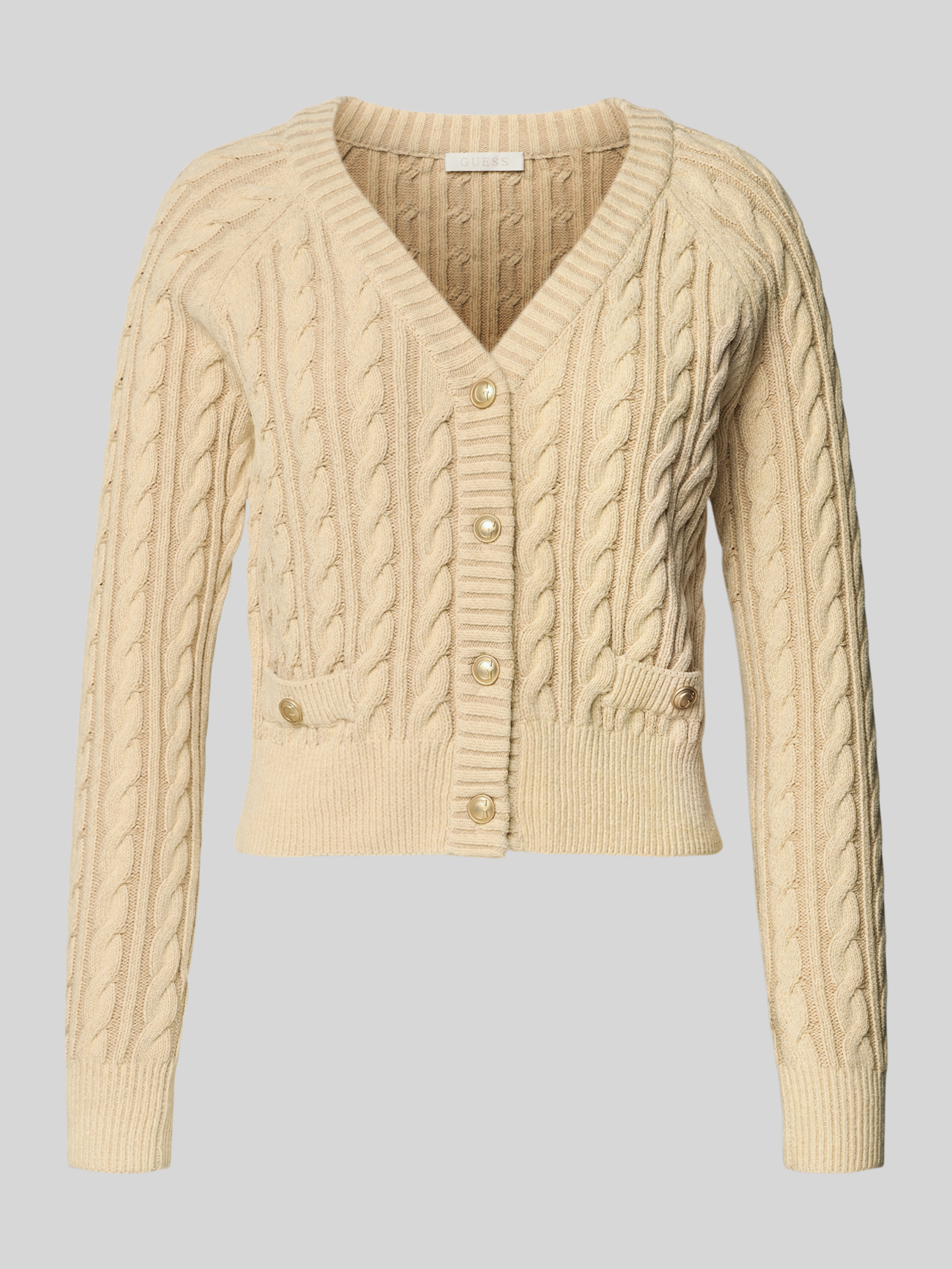 Kurtka z dzianiny ze ściegiem warkoczowym model ‘GISELLE’ - camel