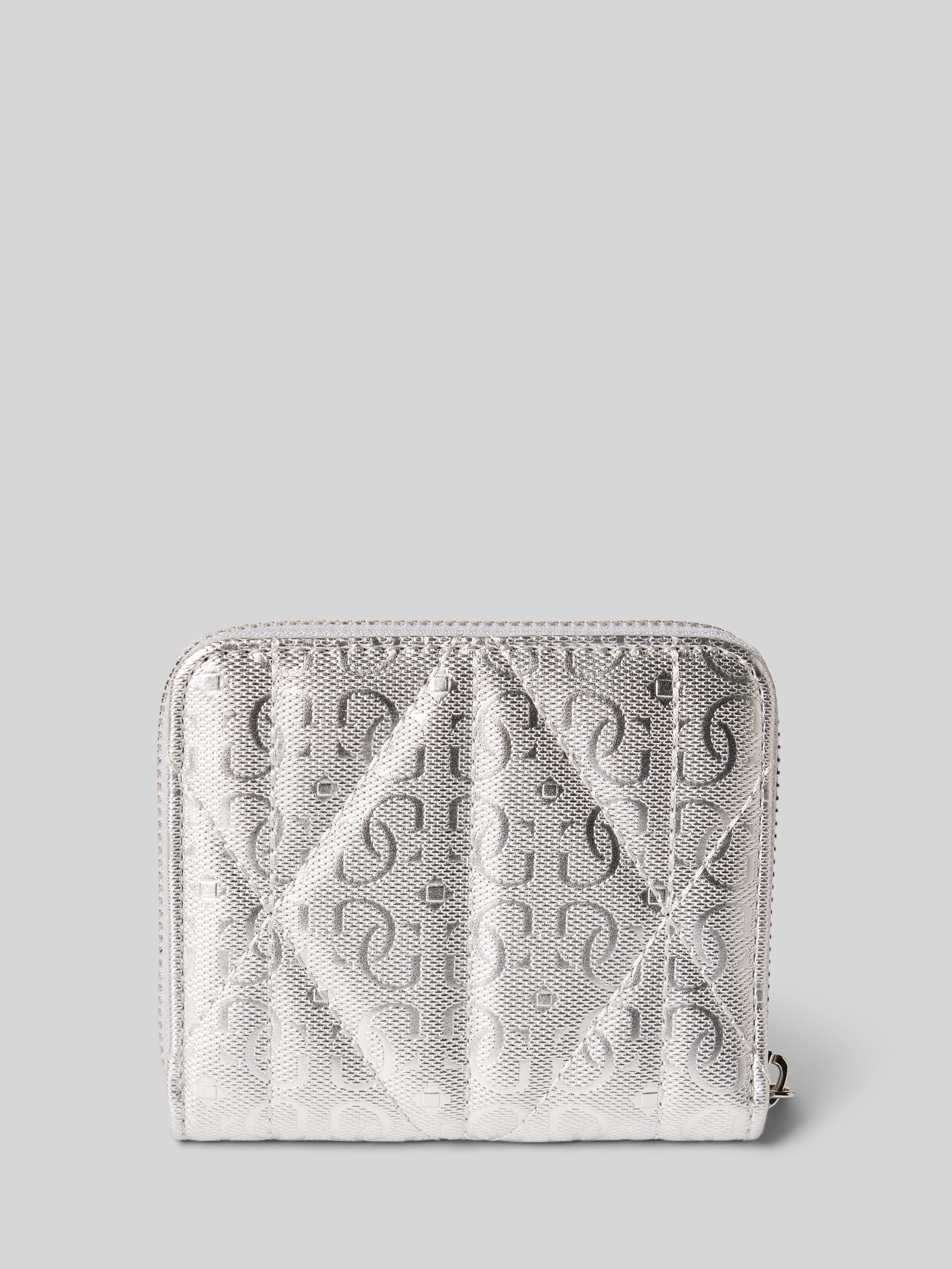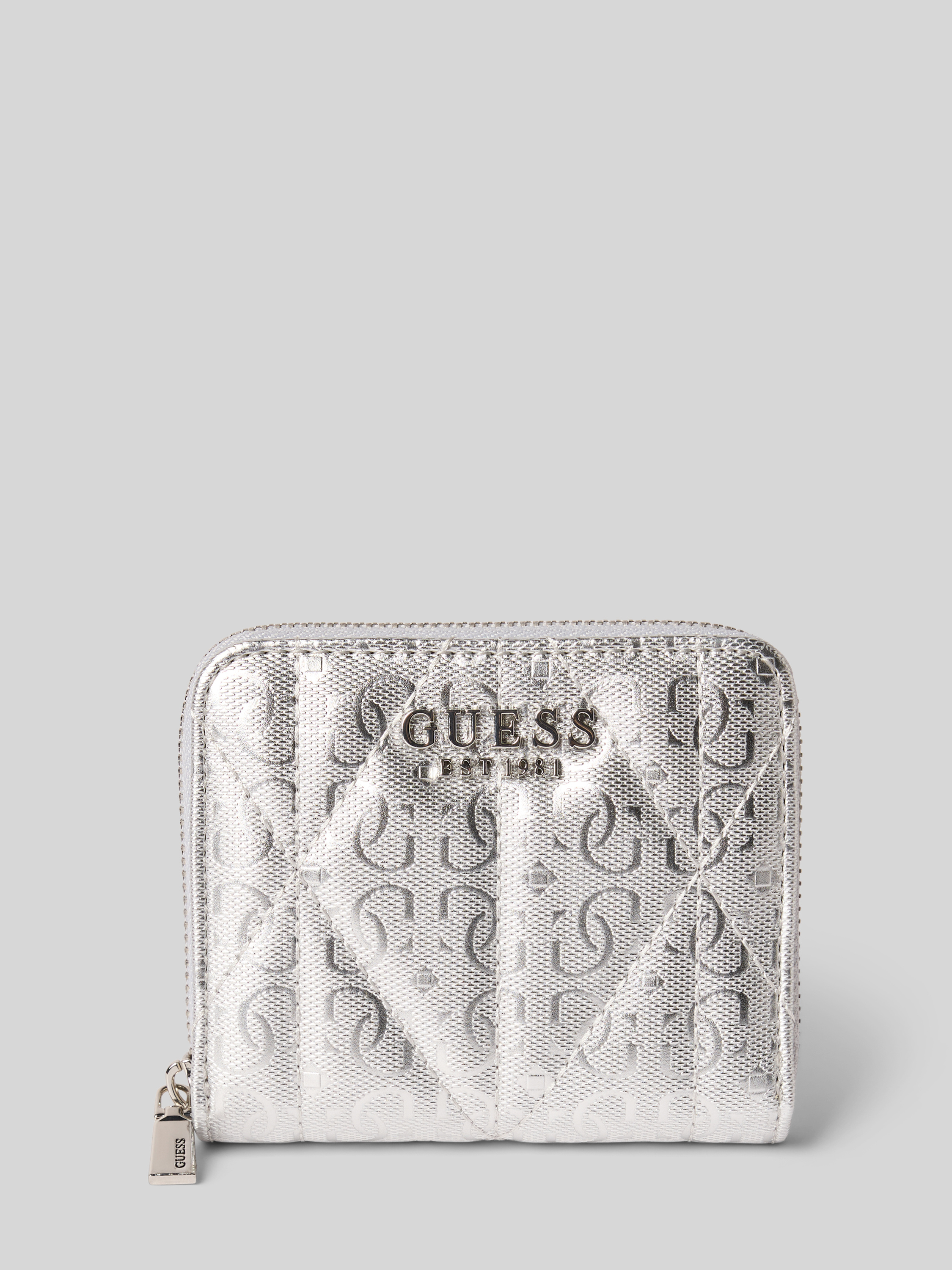 GuessPortfel z wytłoczonym logo na całej powierzchni model ‘Aldina’ - srebrny