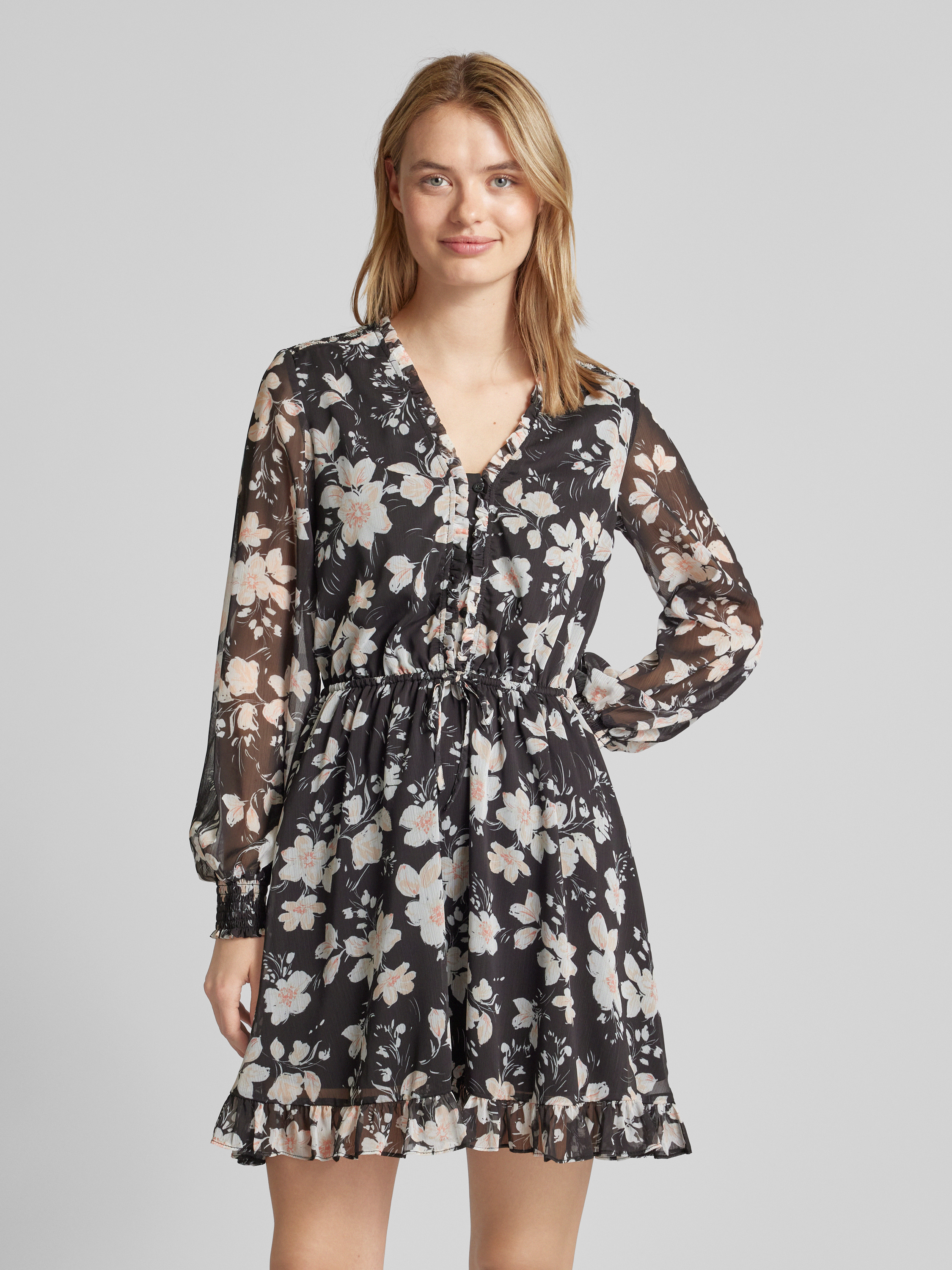 Sukienka mini z kwiatowym nadrukiem model ‘VANESSA’ - czarny