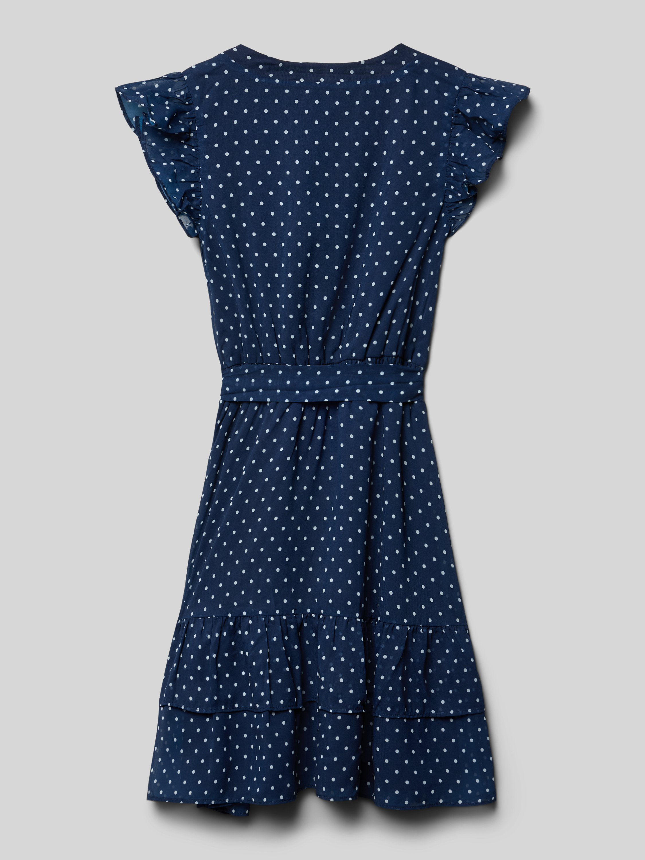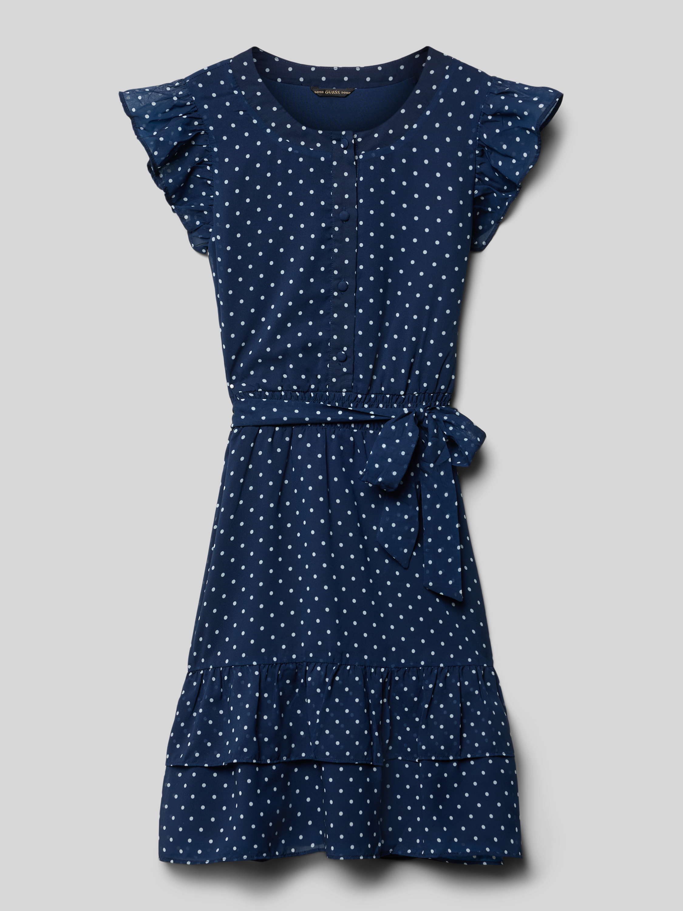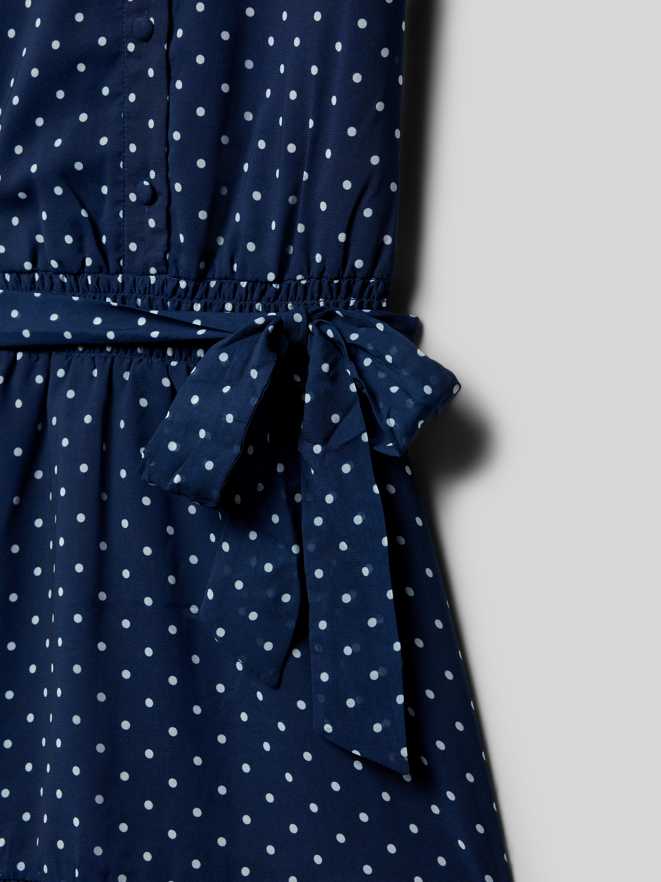 Sukienka z listwą guzikową i wiązanym paskiem - niebieski