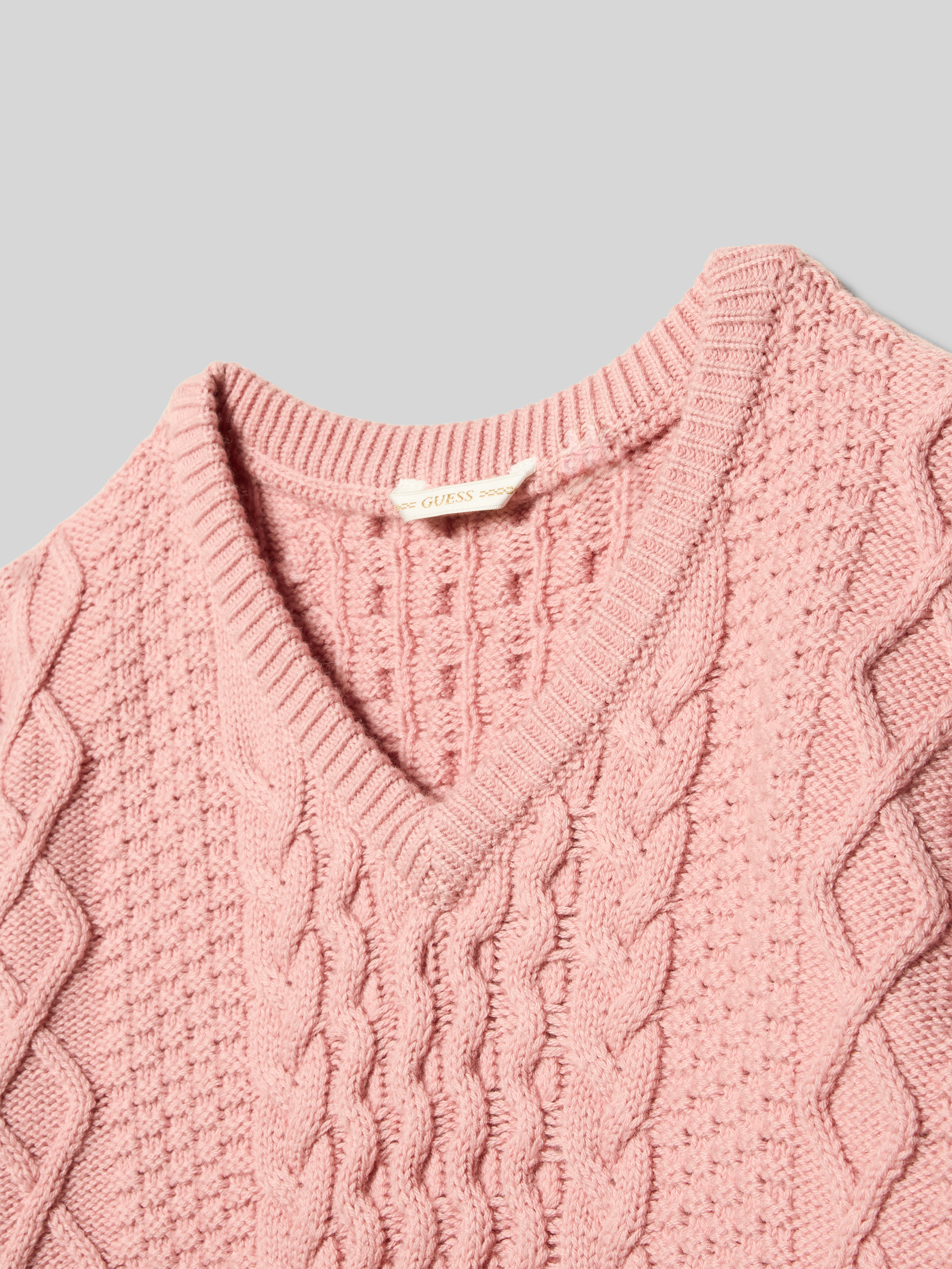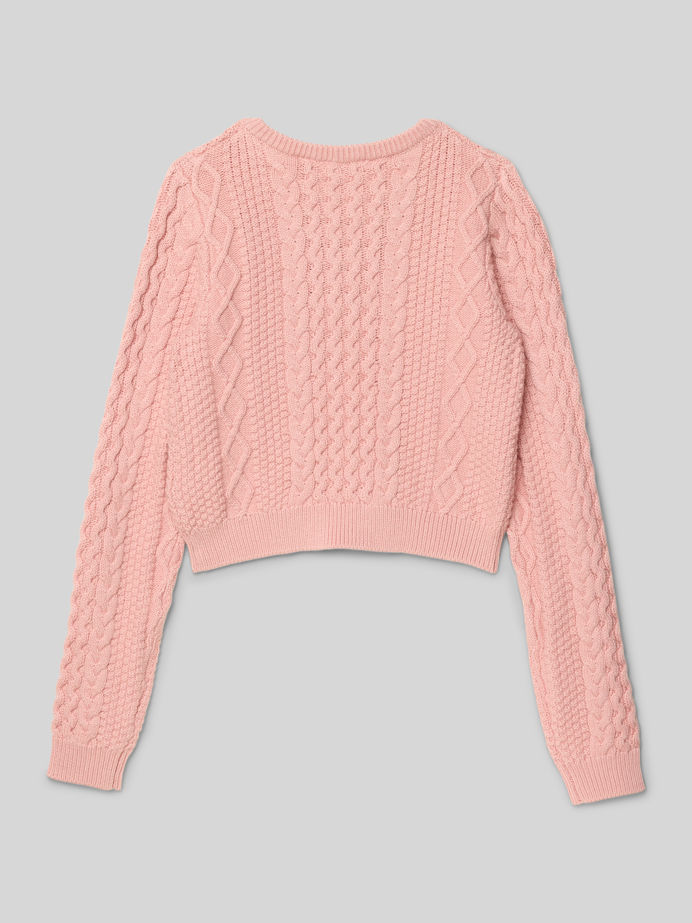 Sweter krótki z dzianiny z detalem z logo - różowy