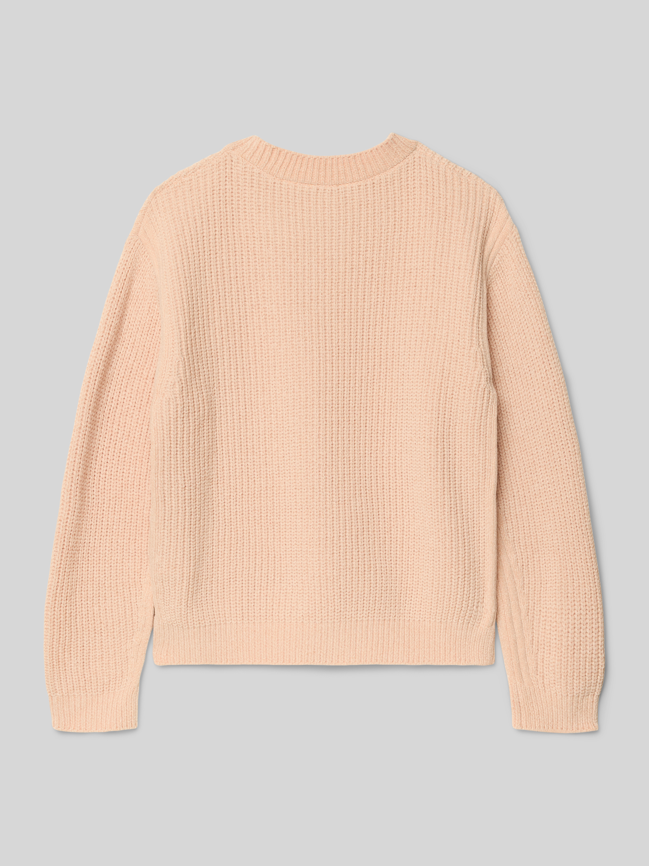 Sweter z dzianiny z prążkowanymi wykończeniami - różowy