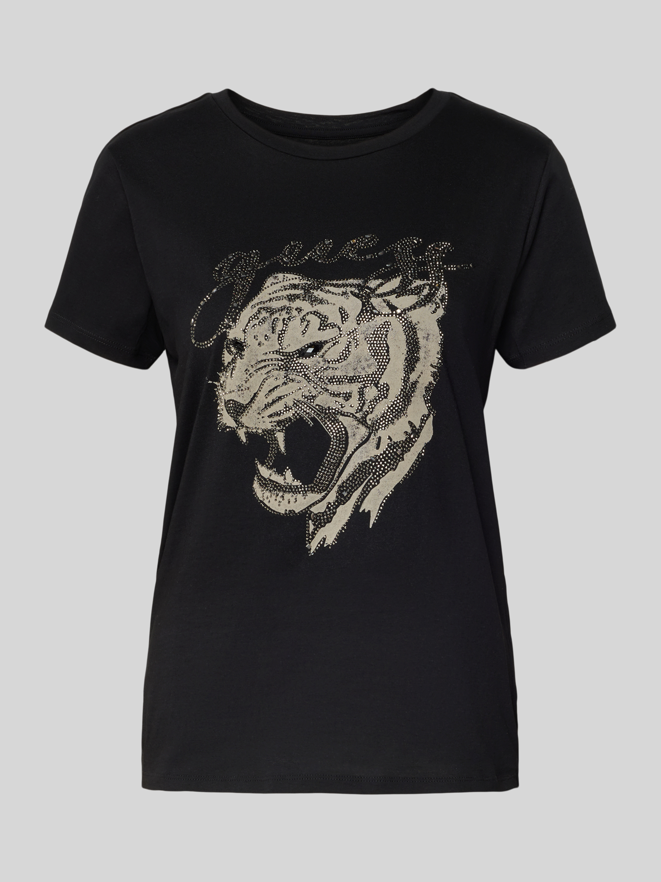 T-shirt z nadrukiem z motywem model ‘TIGER FACE’ - czarny