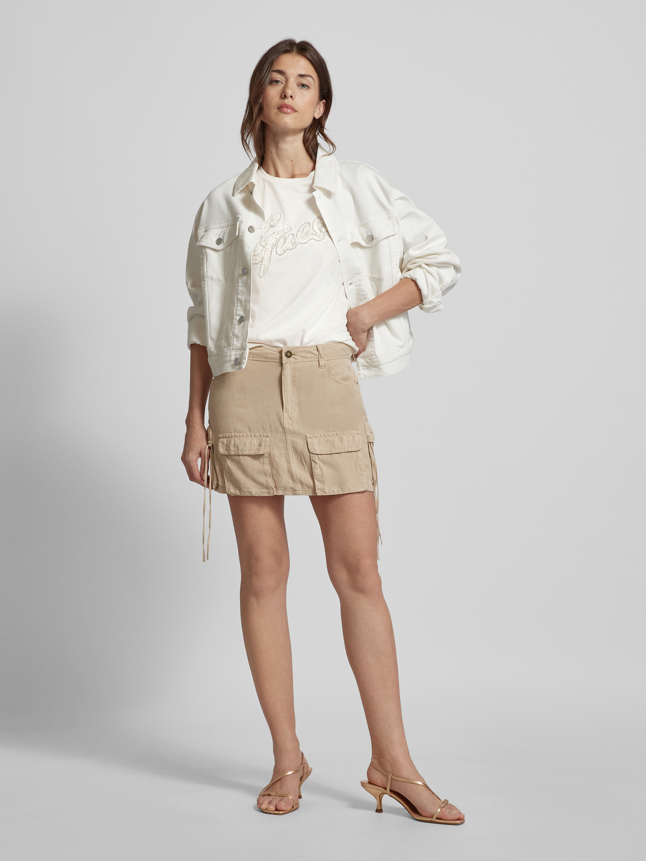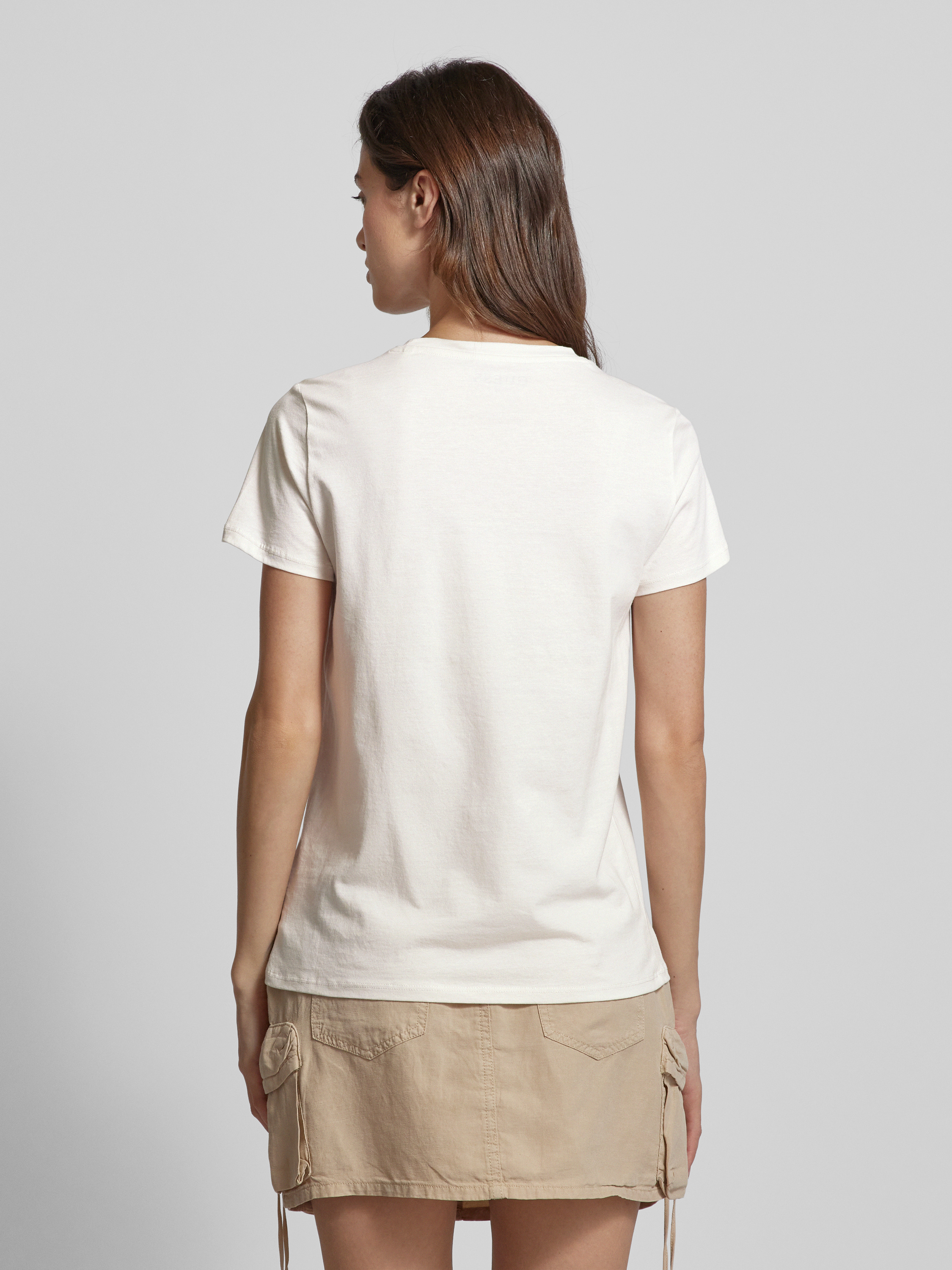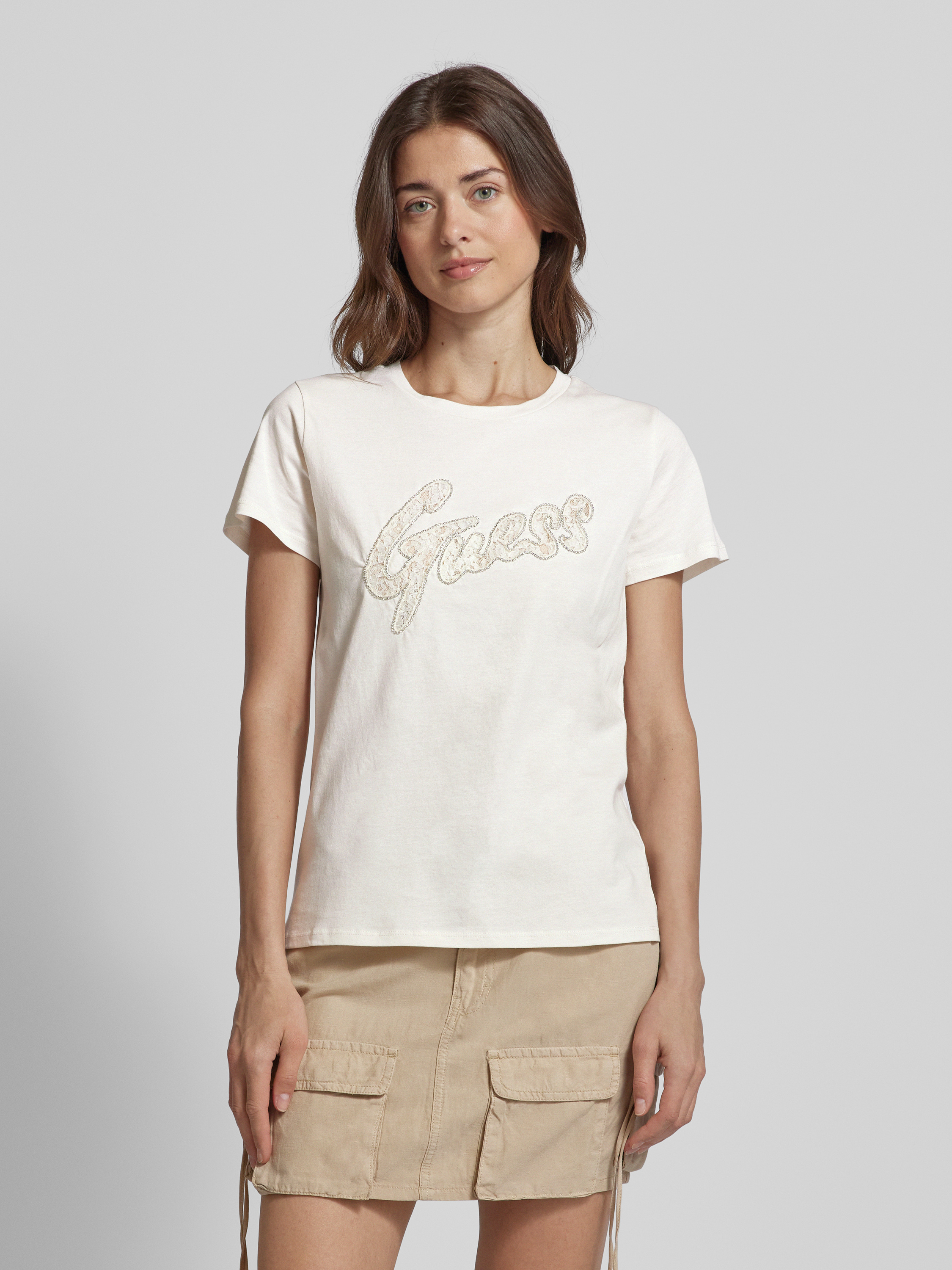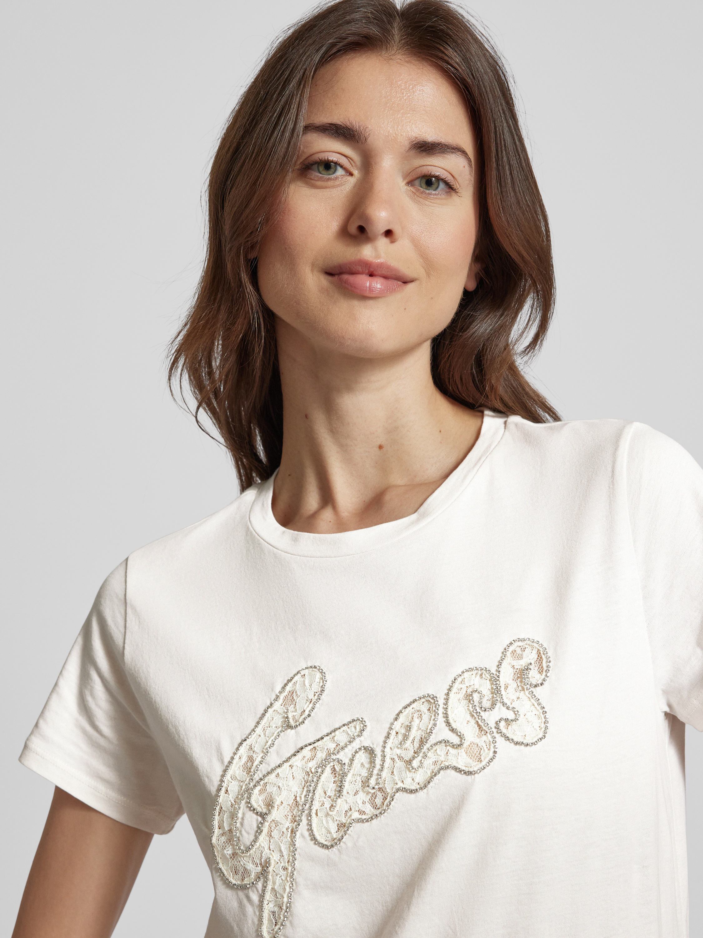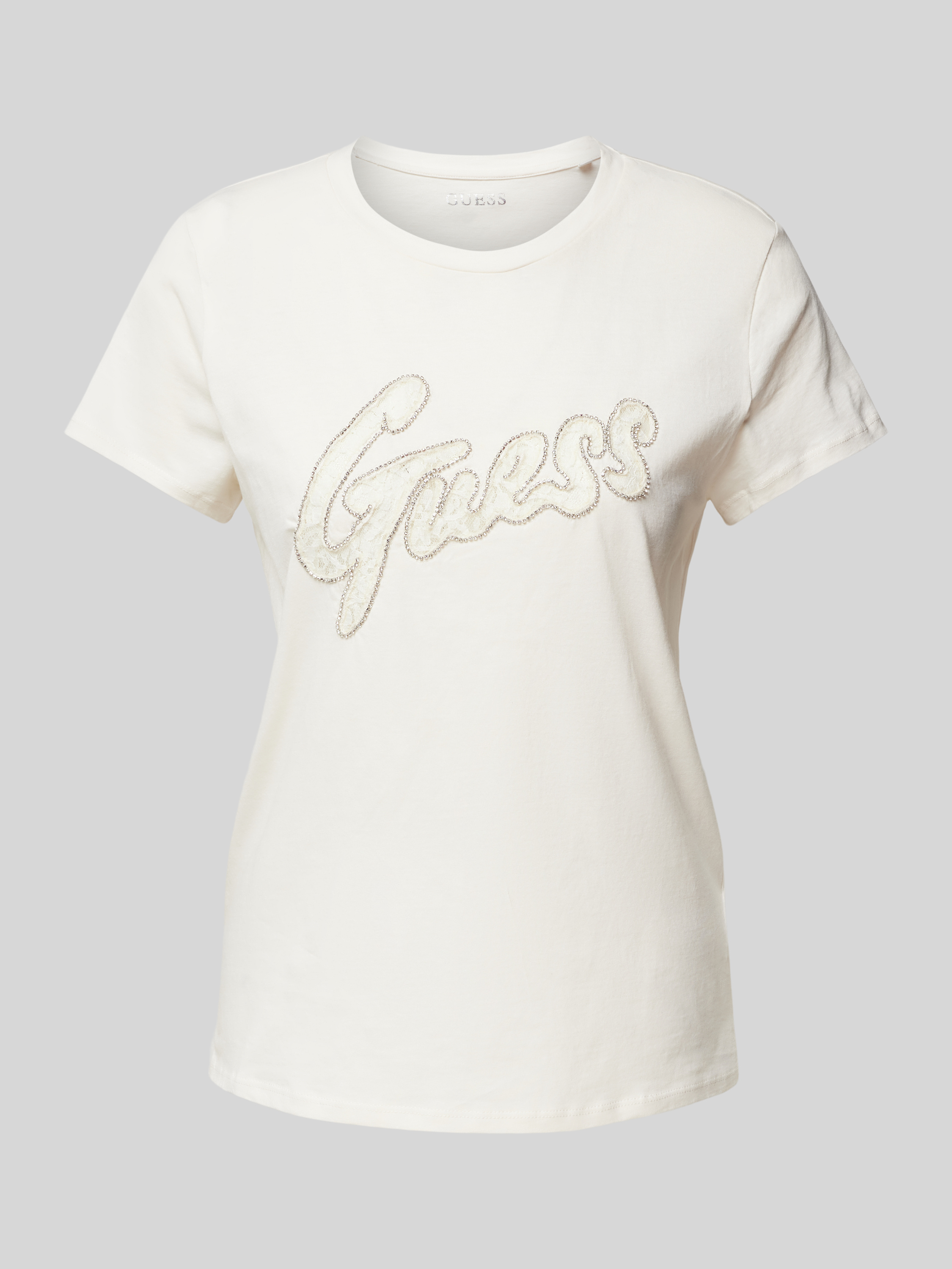 T-shirt z obszyciem kamieniami stras z logo - złamany biały