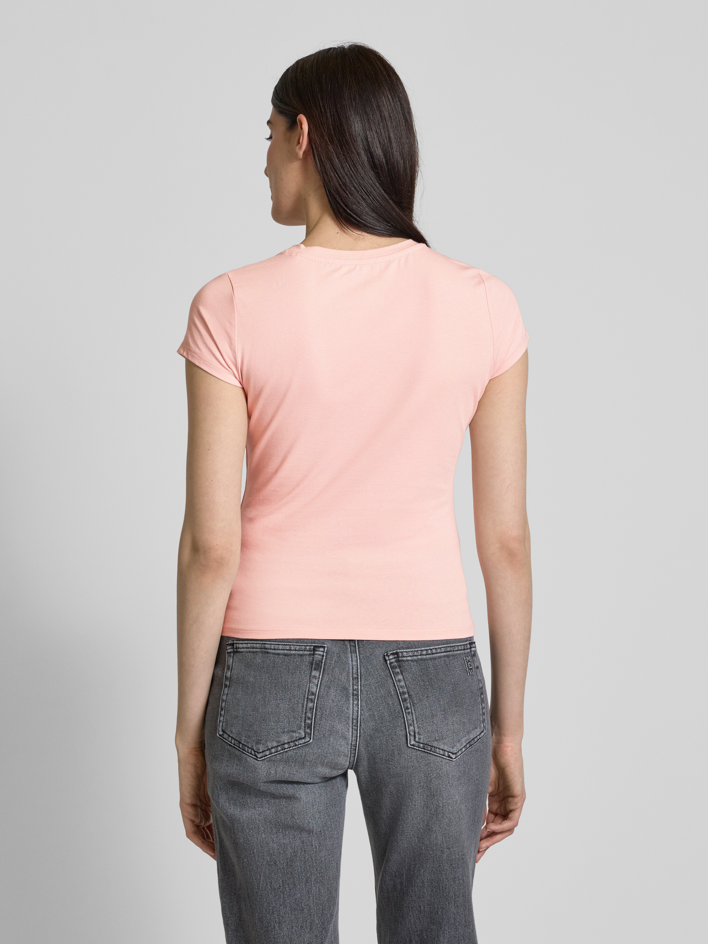 T-shirt z obszyciem z kamieni stras - różowy