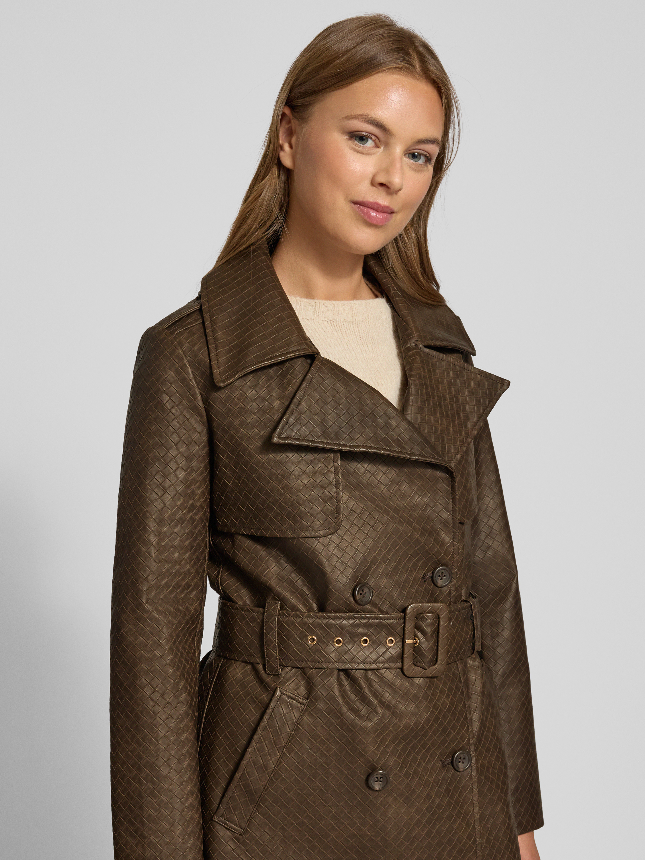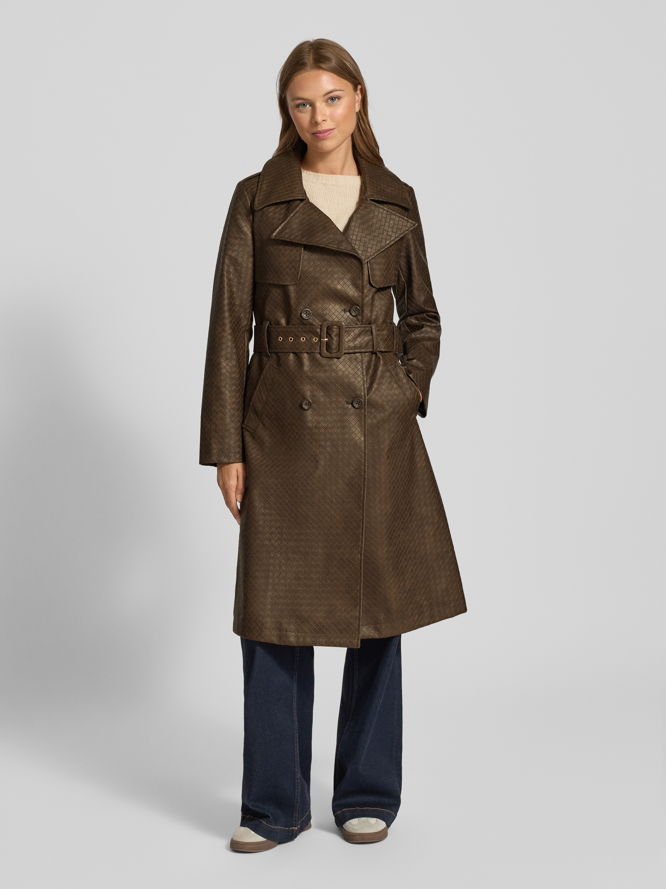 Trencz z paskiem w talii model ‘CARMEN’ - ciemnobrązowy