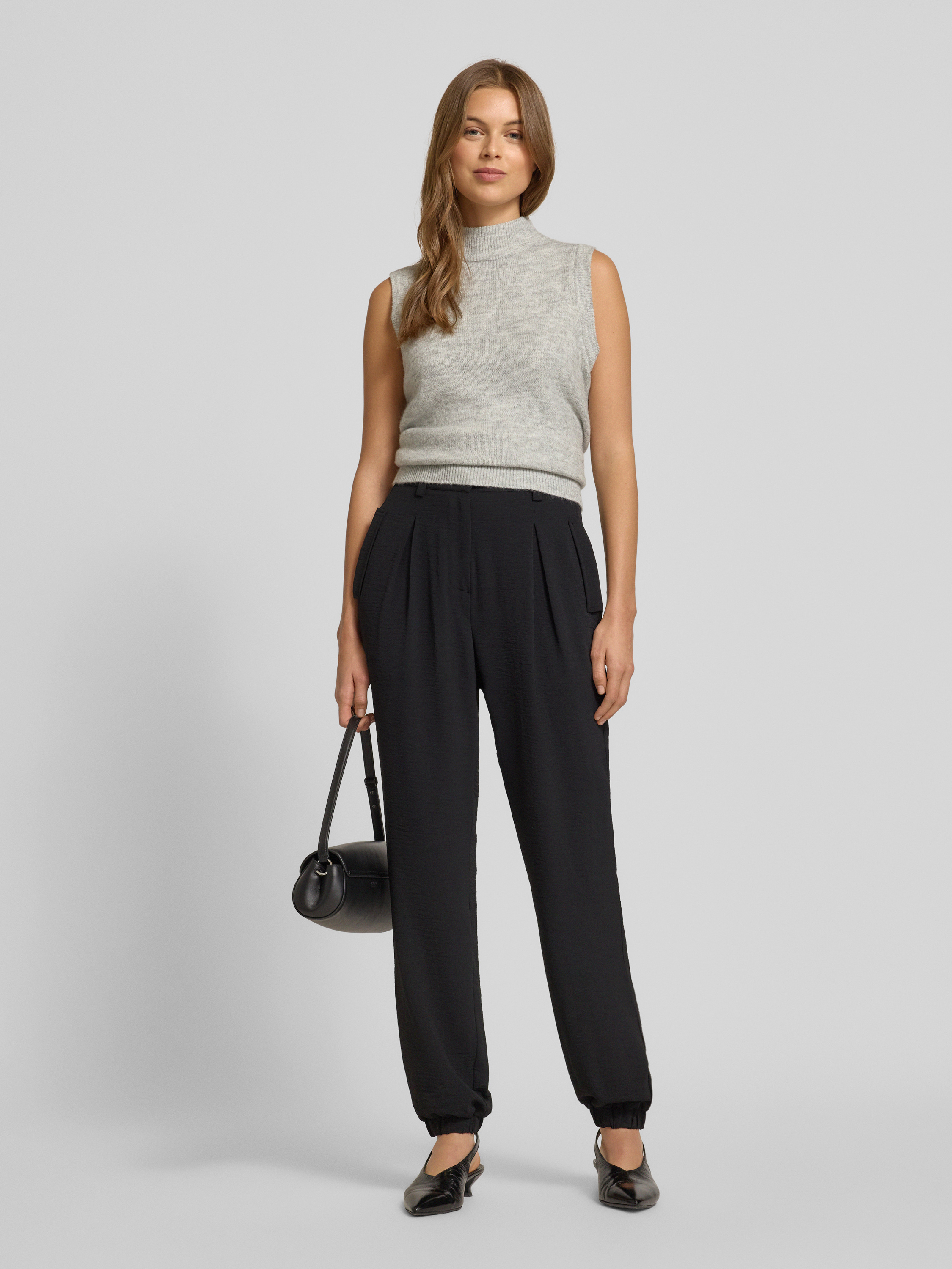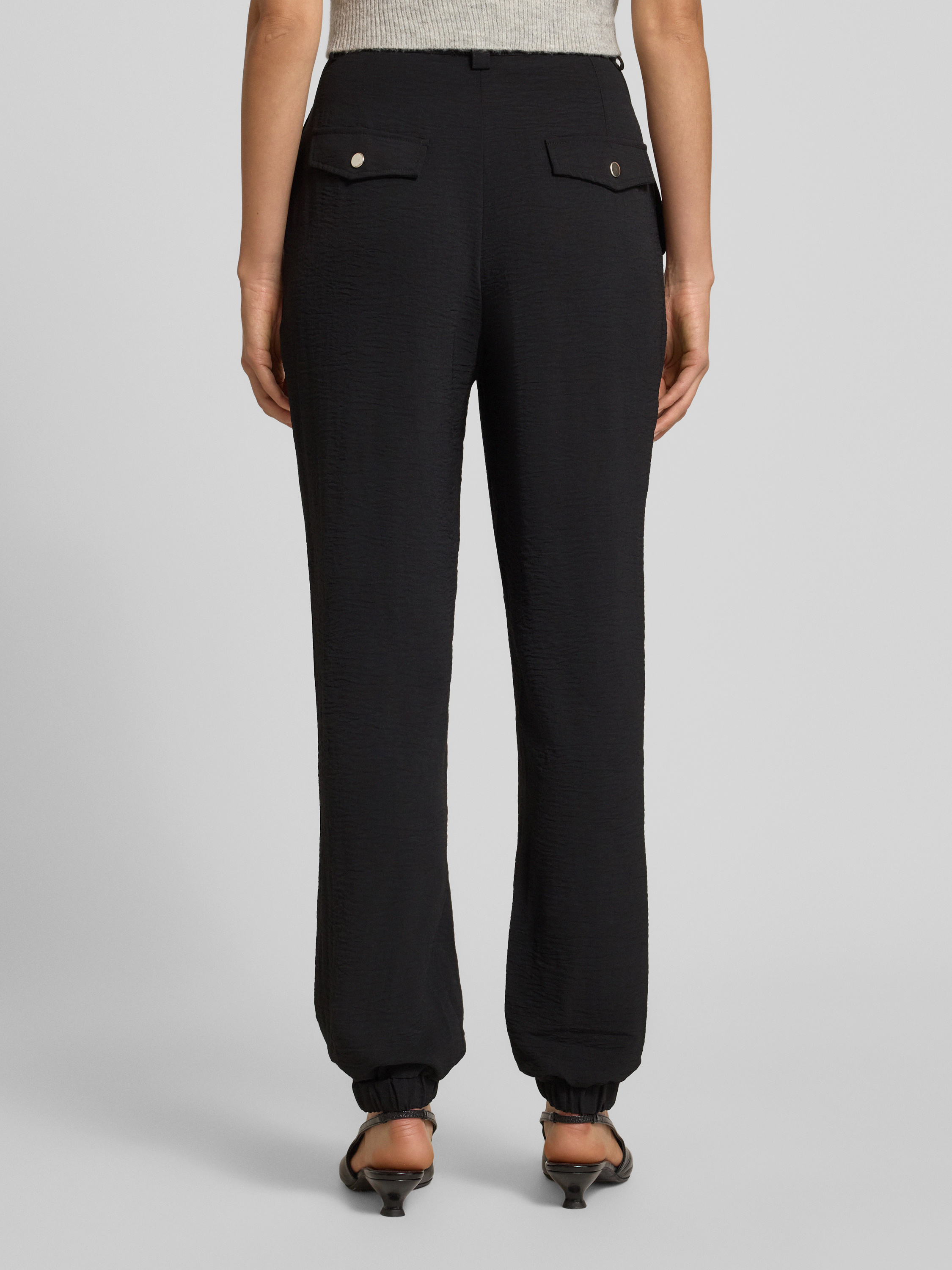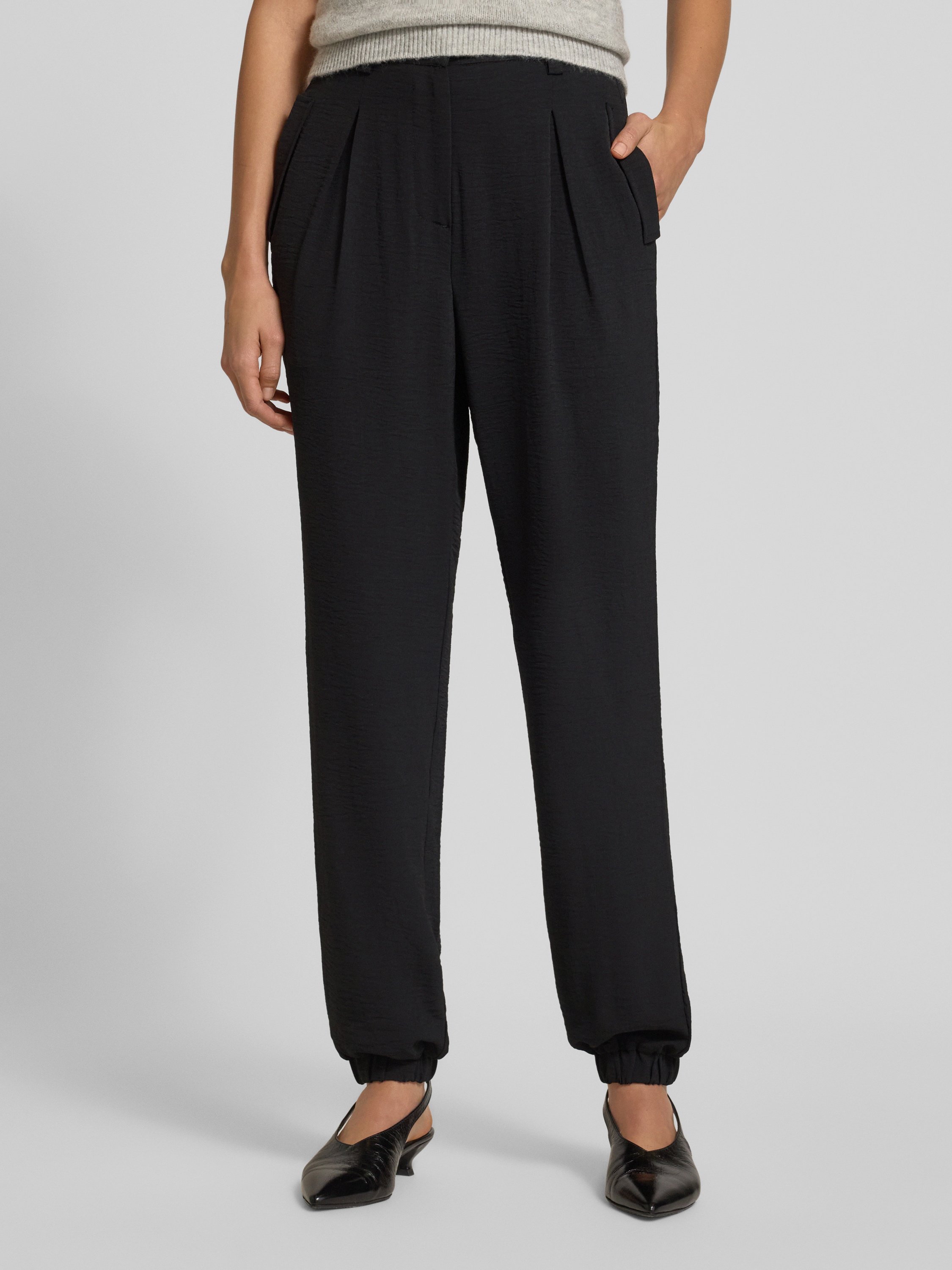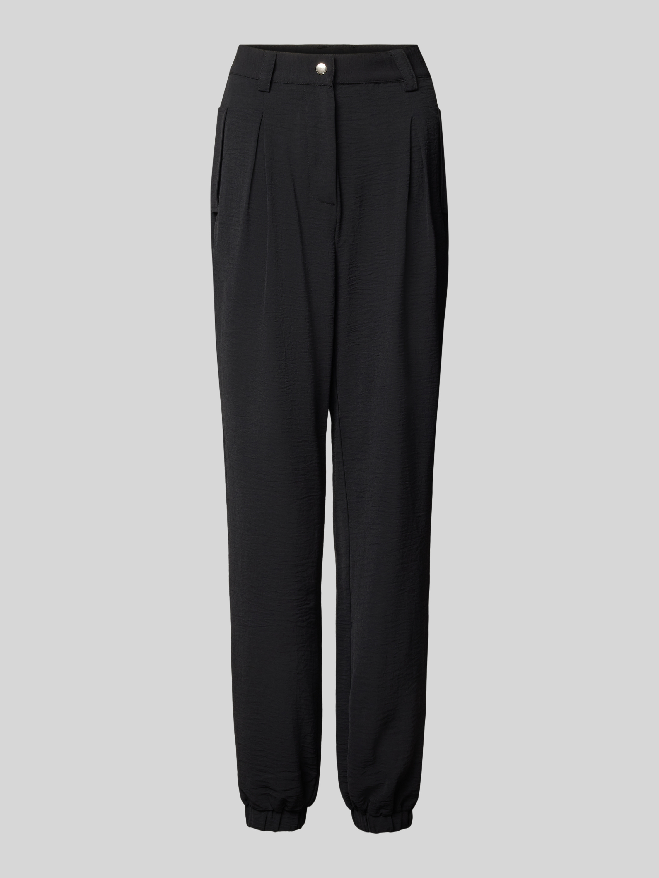 Spodnie materiałowe o kroju relaxed fit z kontrafałdami model ‘Nele’ - czarny