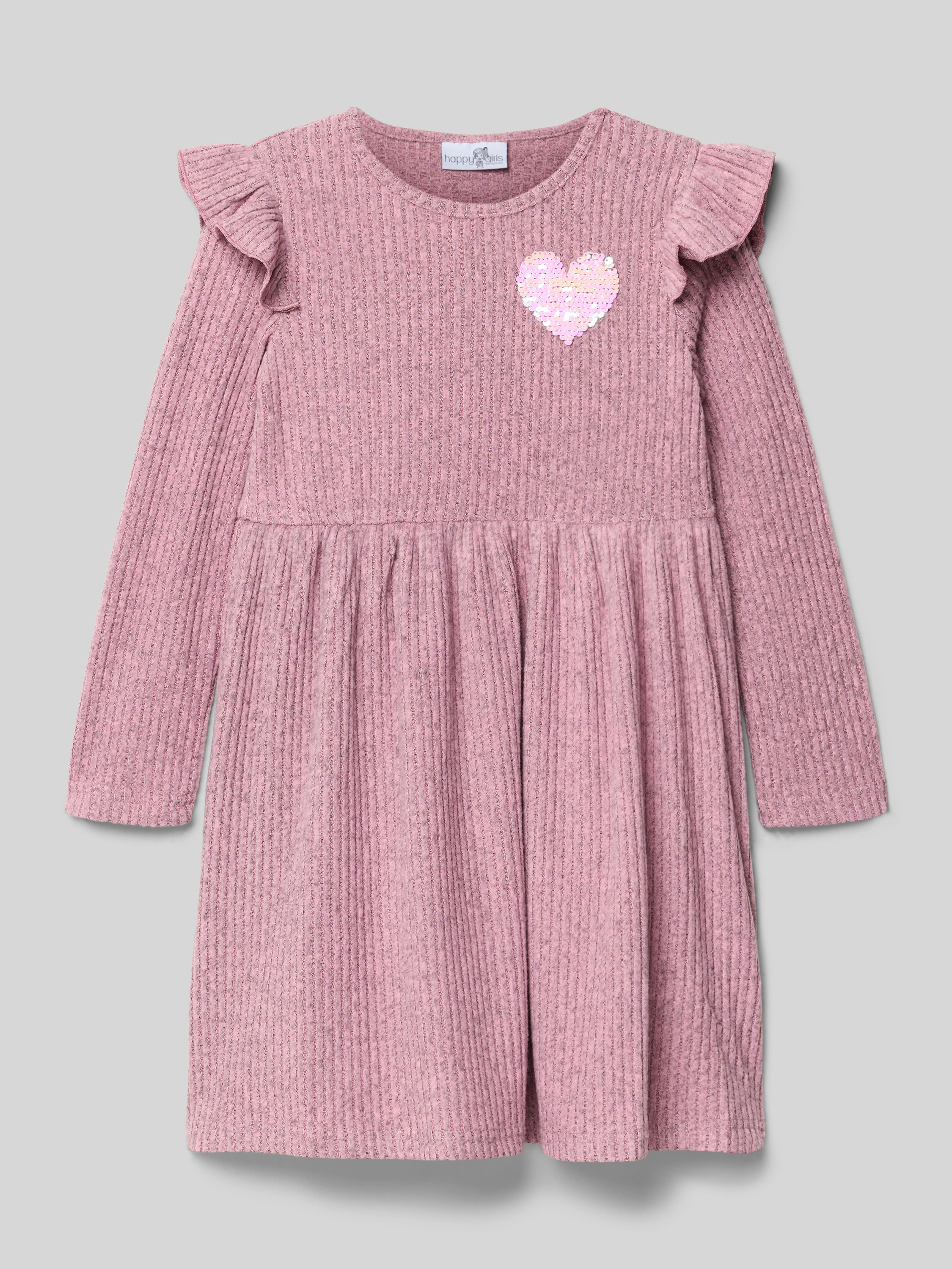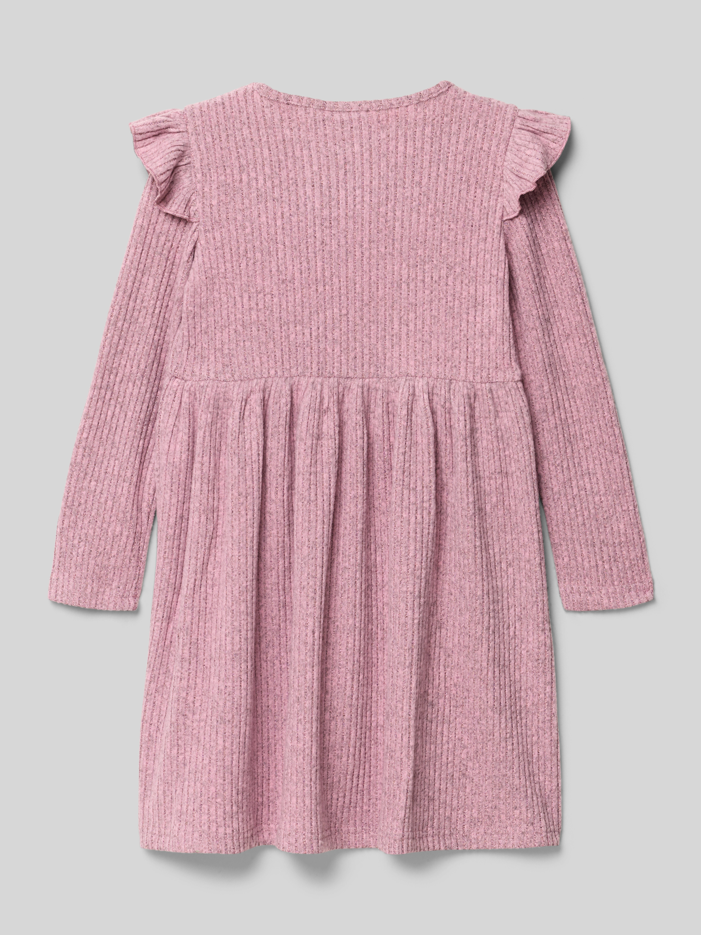 Sukienka midi z prążkowaną fakturą - brudnoróżowy