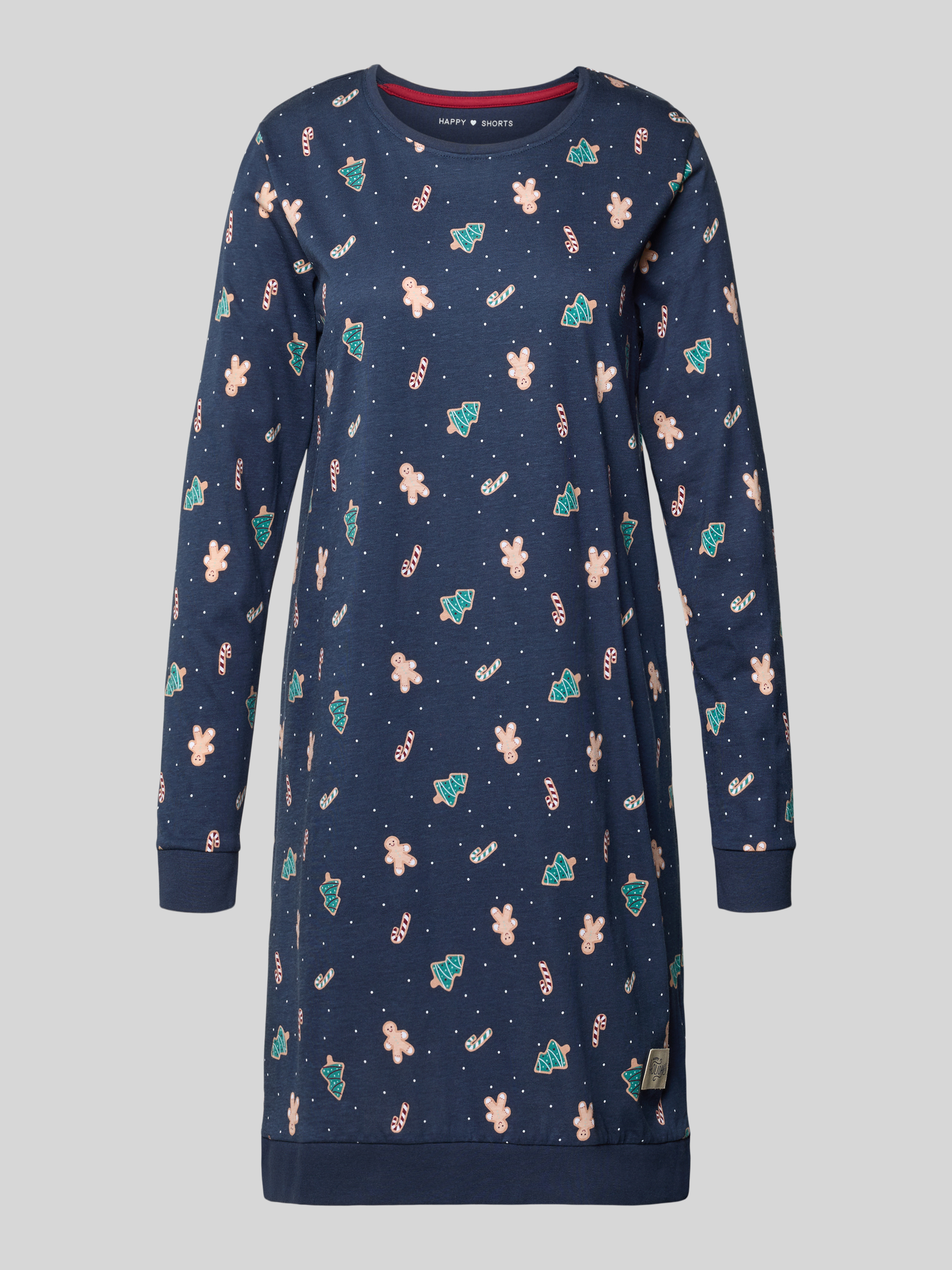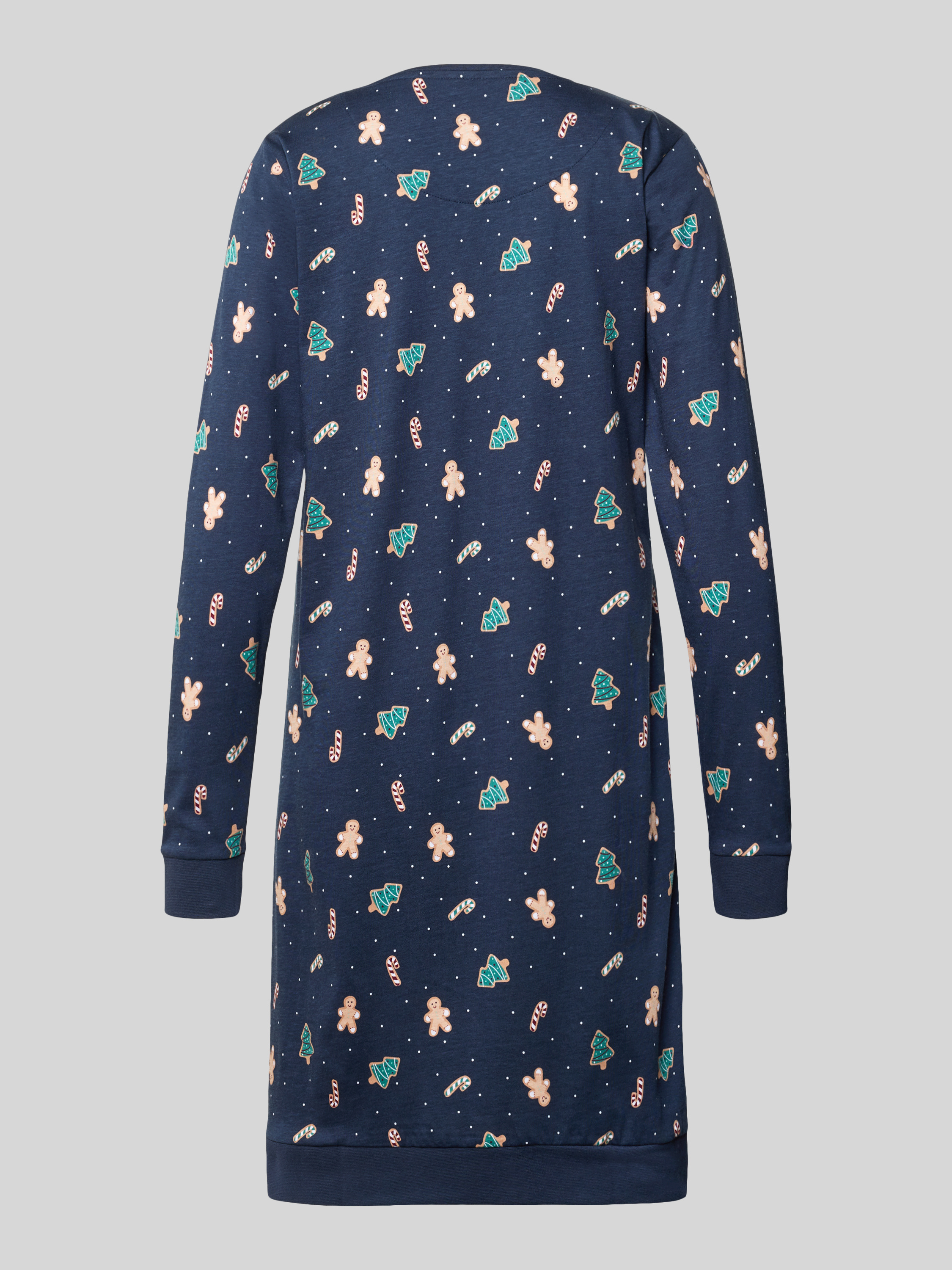 Koszula nocna o kroju relaxed fit z nadrukiem z motywem na całej powierzchni model ‘XMAS’ - granatowy