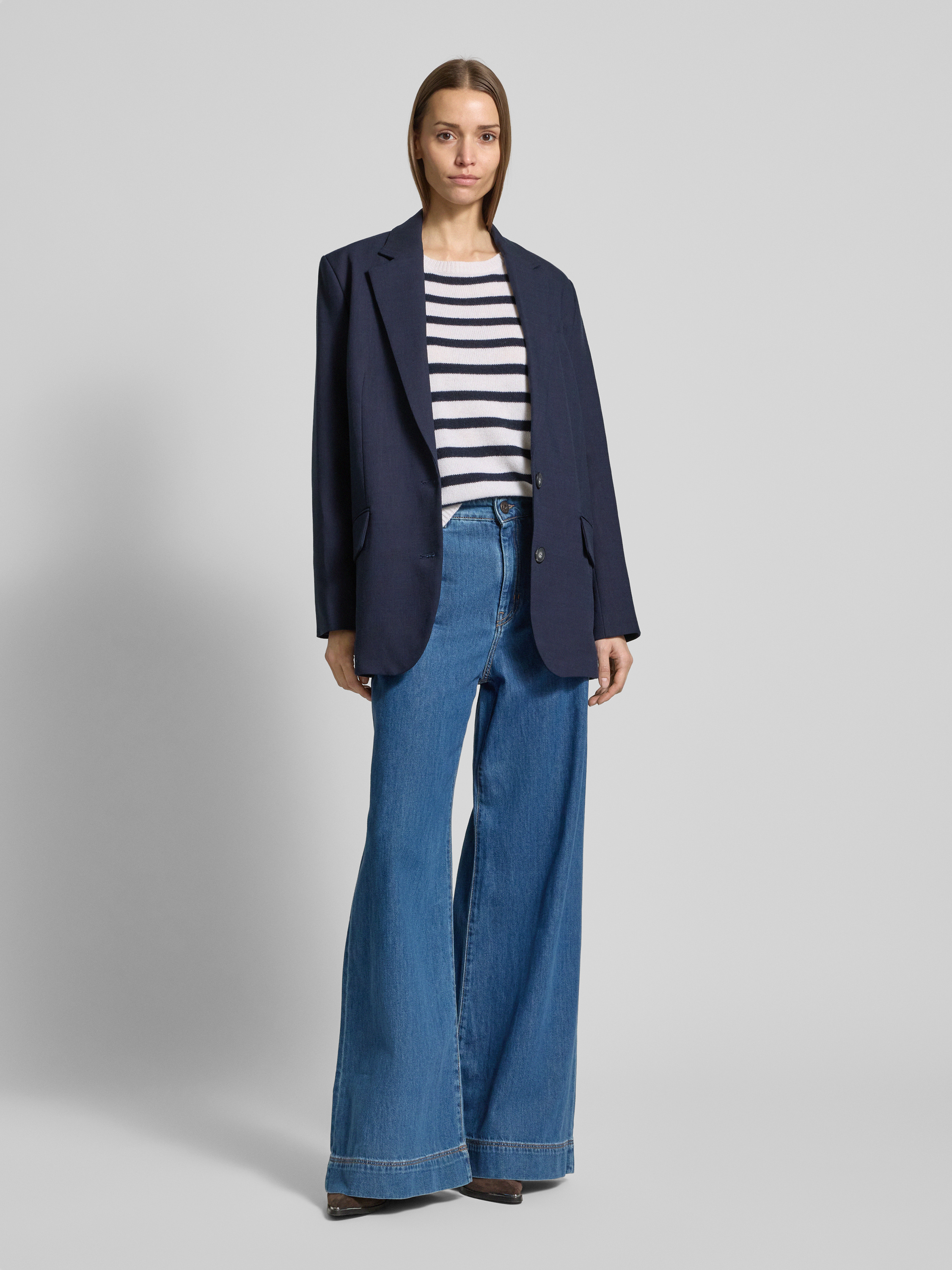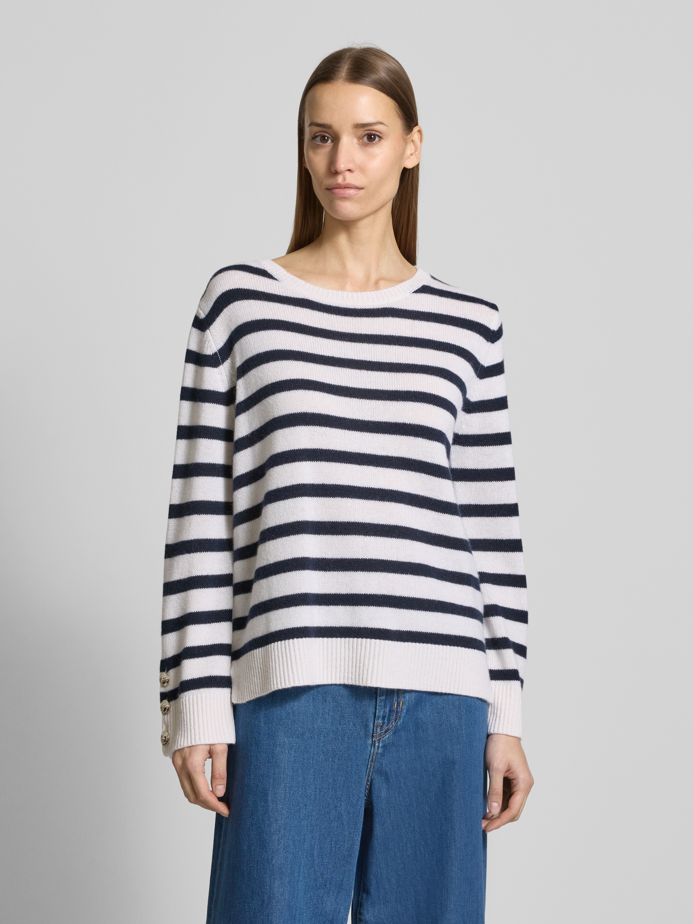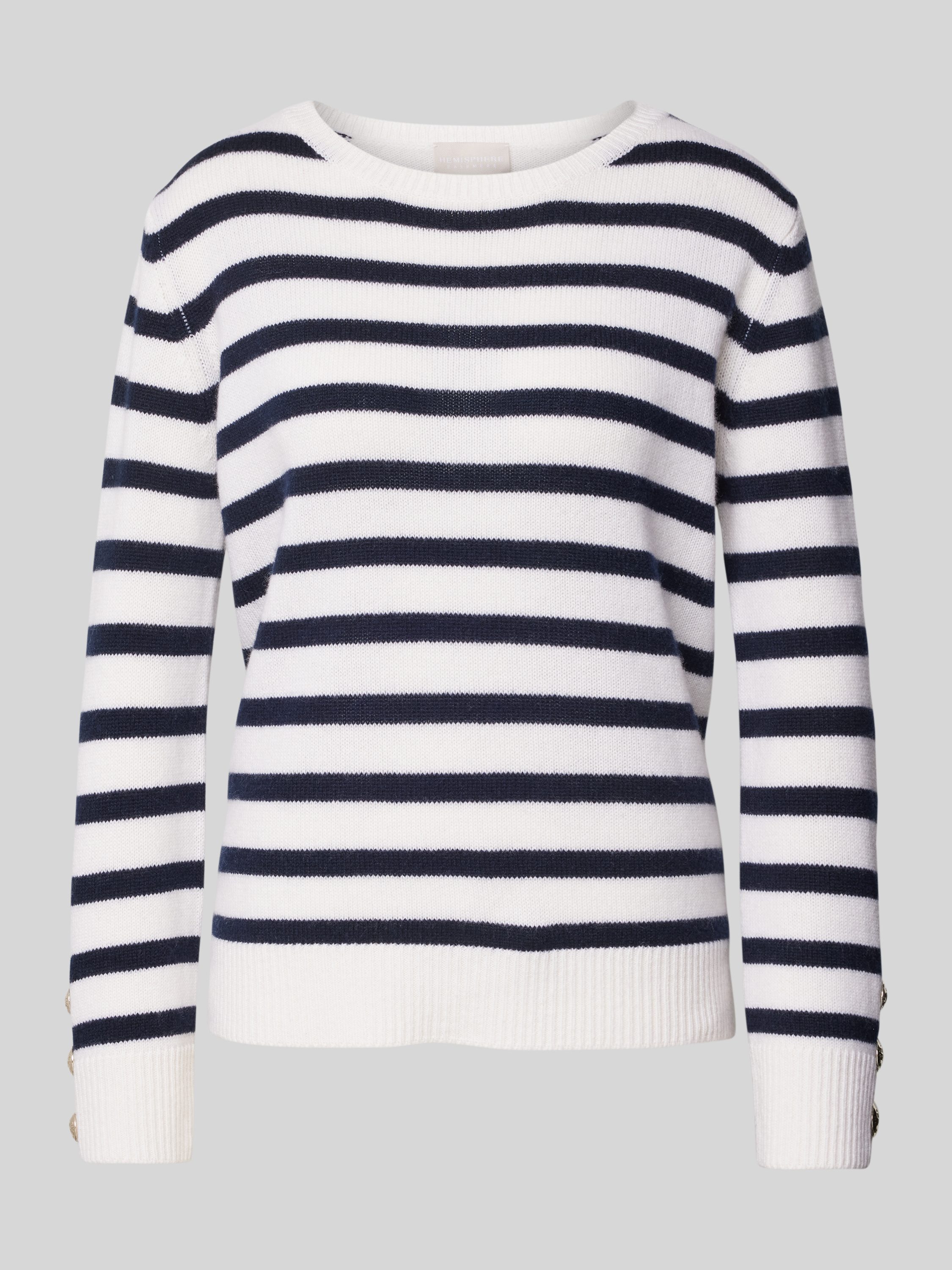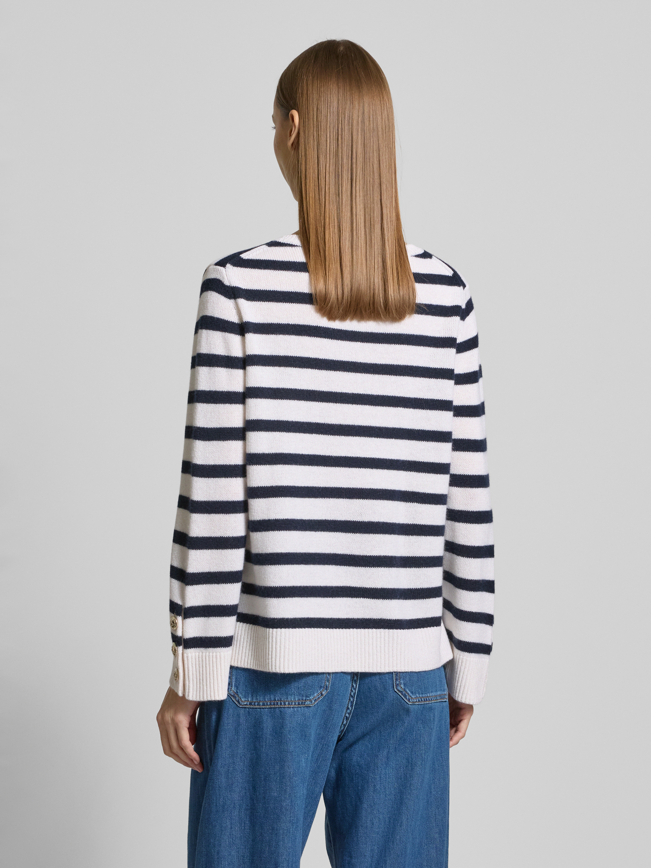 Sweter z dzianiny z prążkowanymi wykończeniami - granatowy
