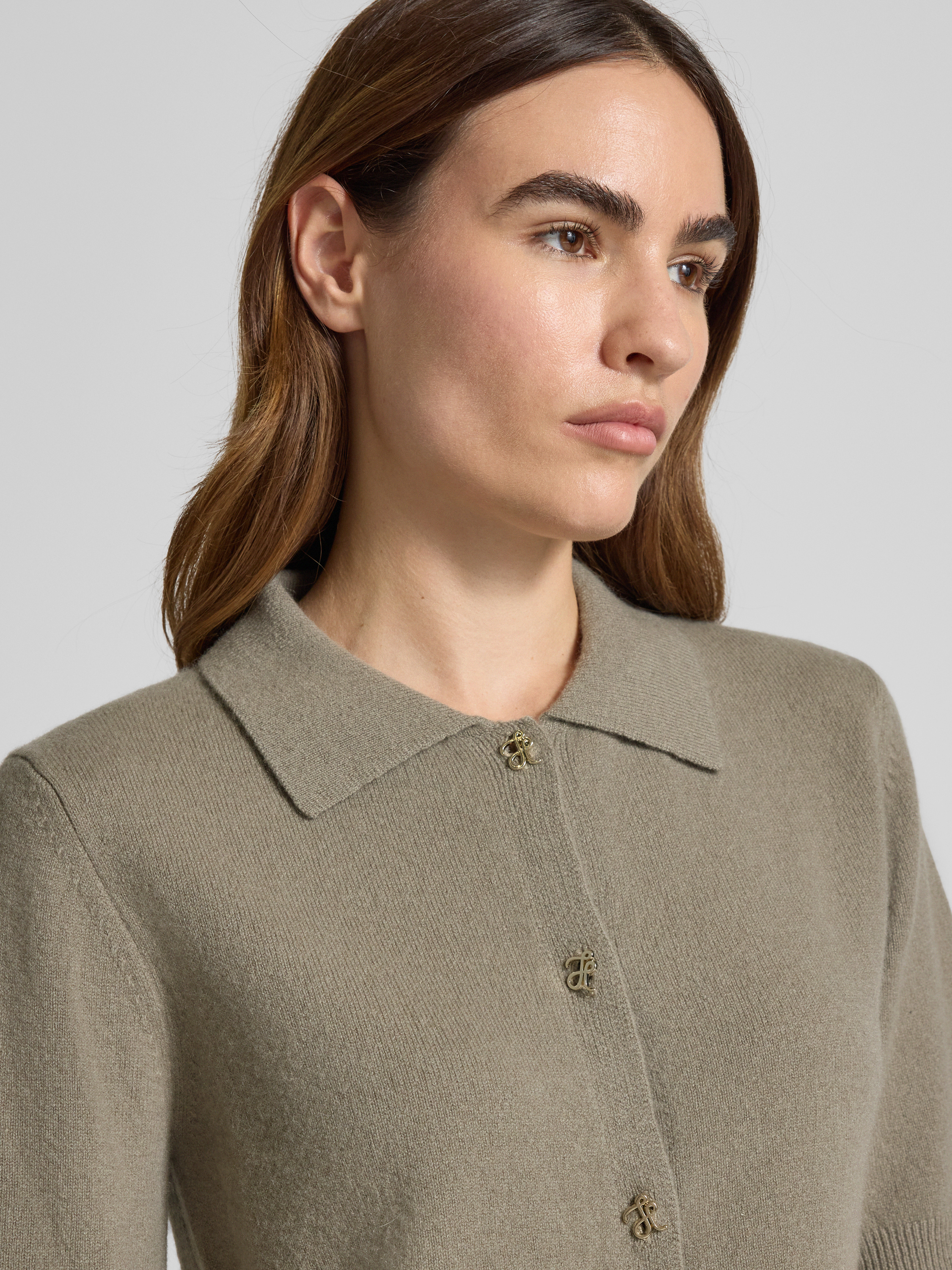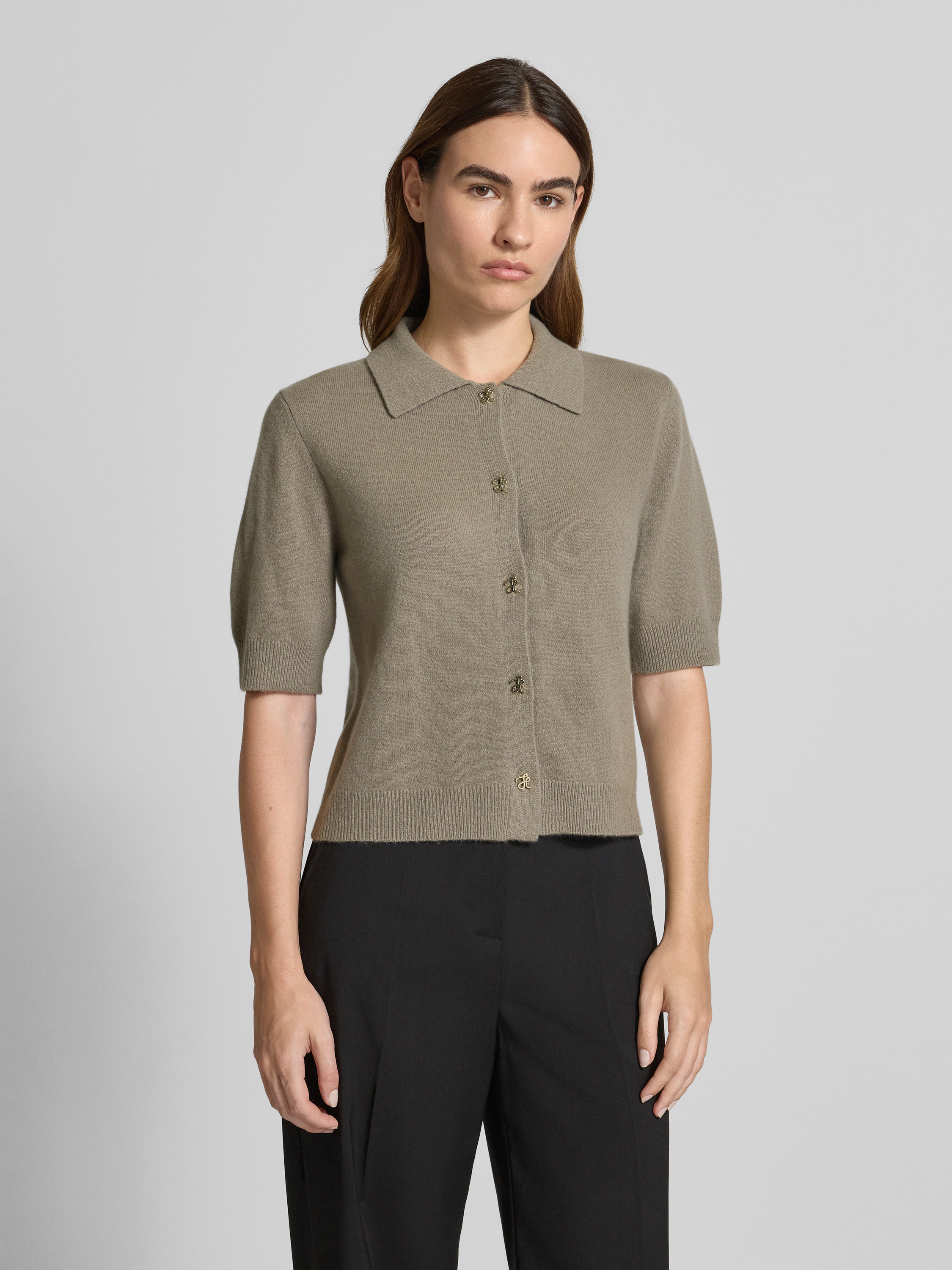 T-shirt o kroju regular fit z imitacji dzianiny z mieszanki kaszmiru - oliwkowy