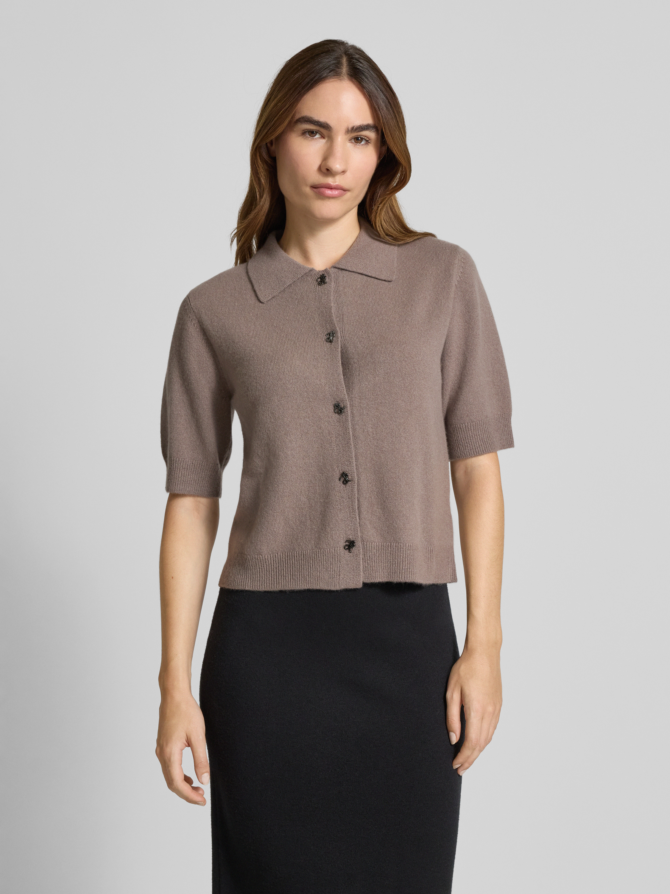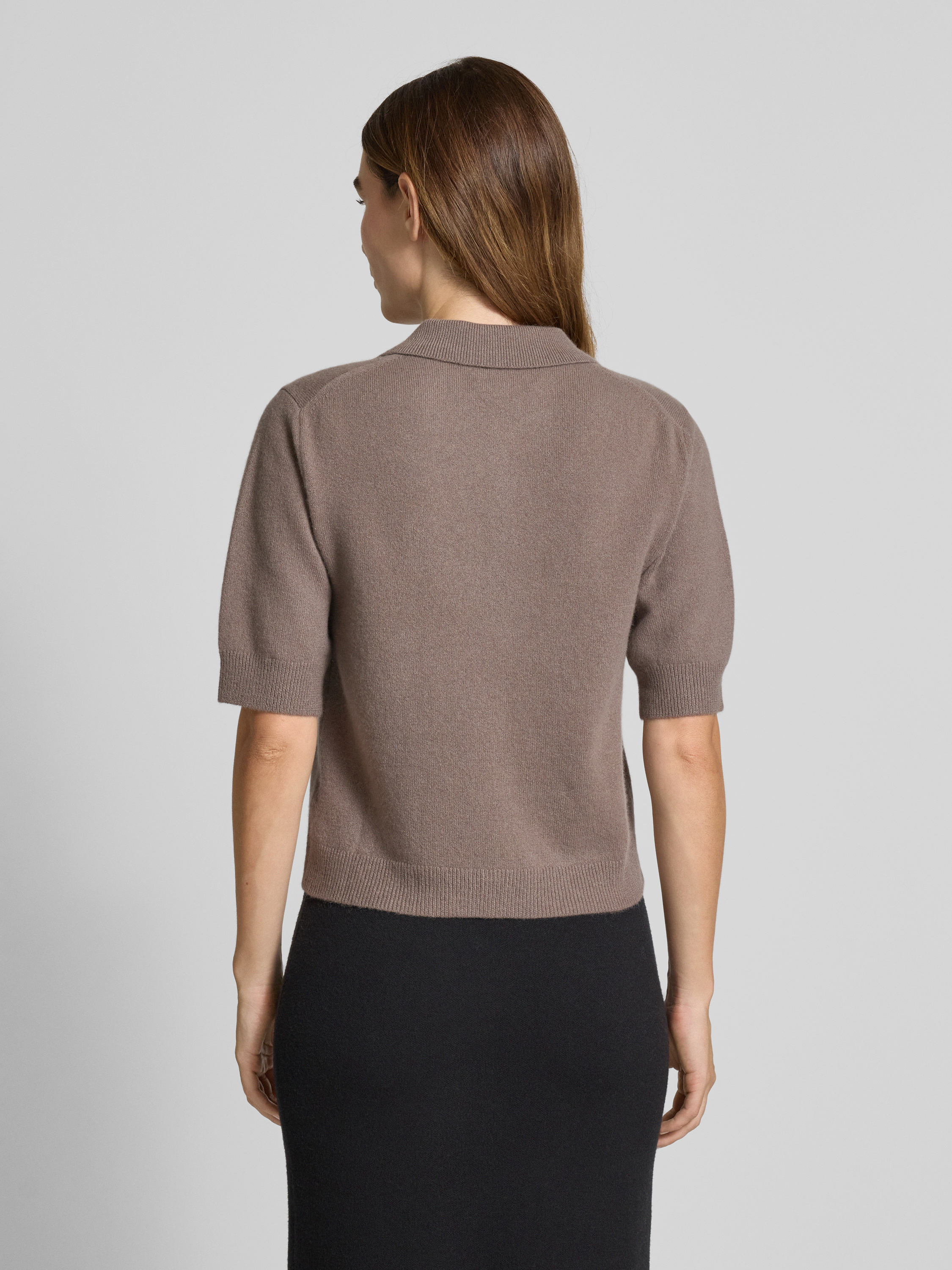 T-shirt o kroju regular fit z imitacji dzianiny z mieszanki kaszmiru - szarobrązowy