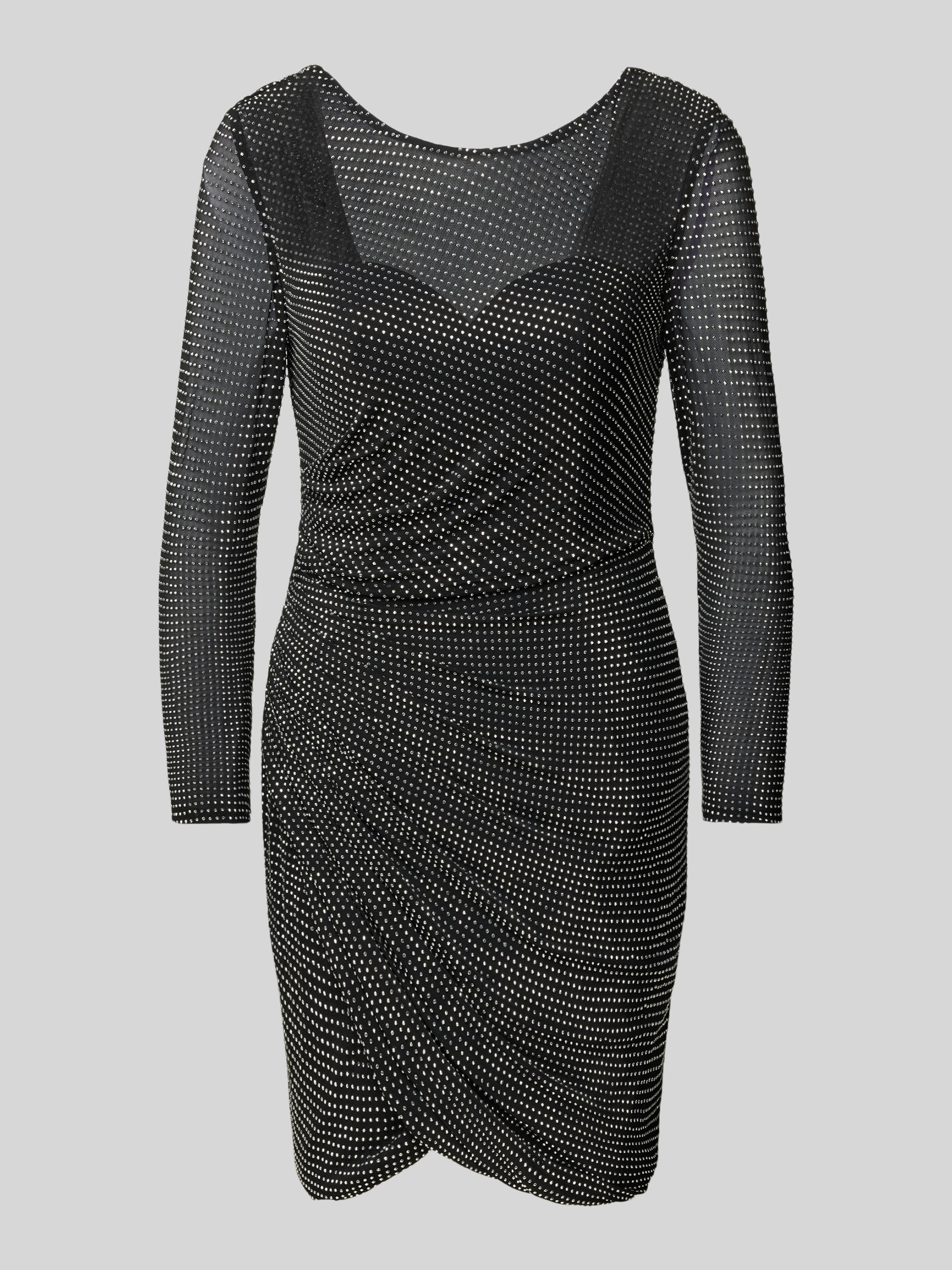 Sukienka koktajlowa o długości do kolan z obszyciem kamieniami stras - srebrny