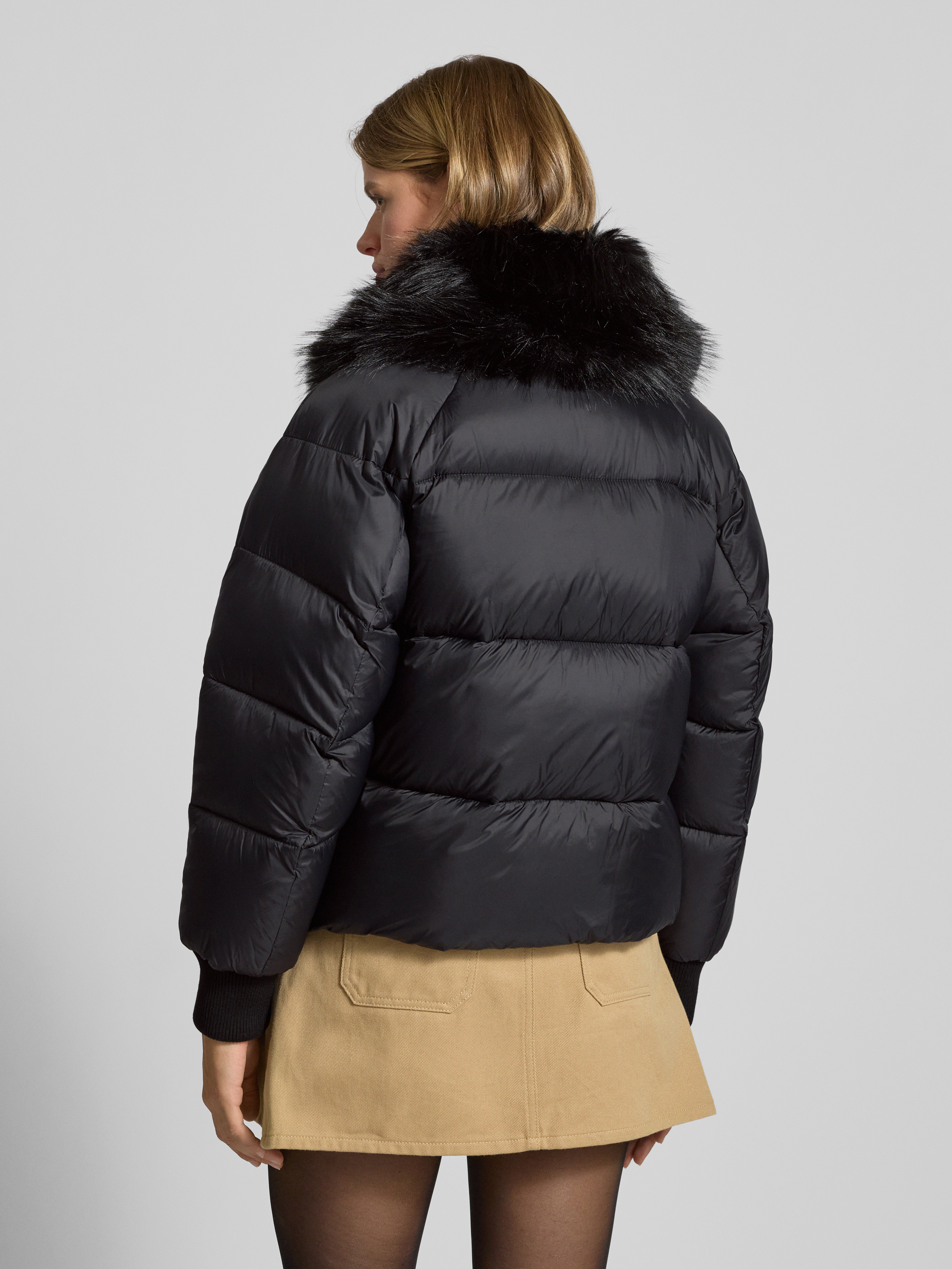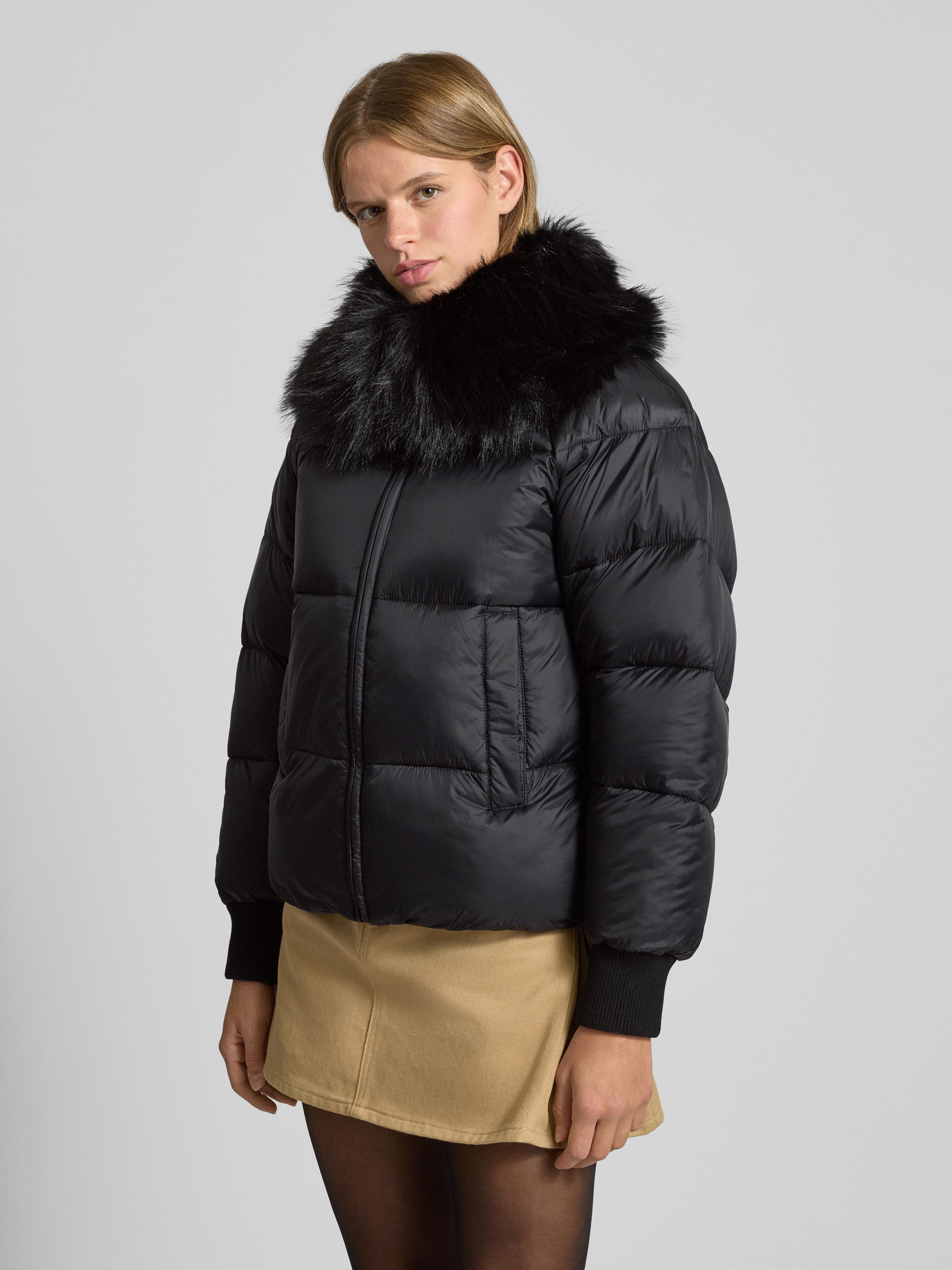 Kurtka pikowana o kroju regular fit z szerokim obszyciem ze sztucznego futra model ‘FUJI-1’ - czarny