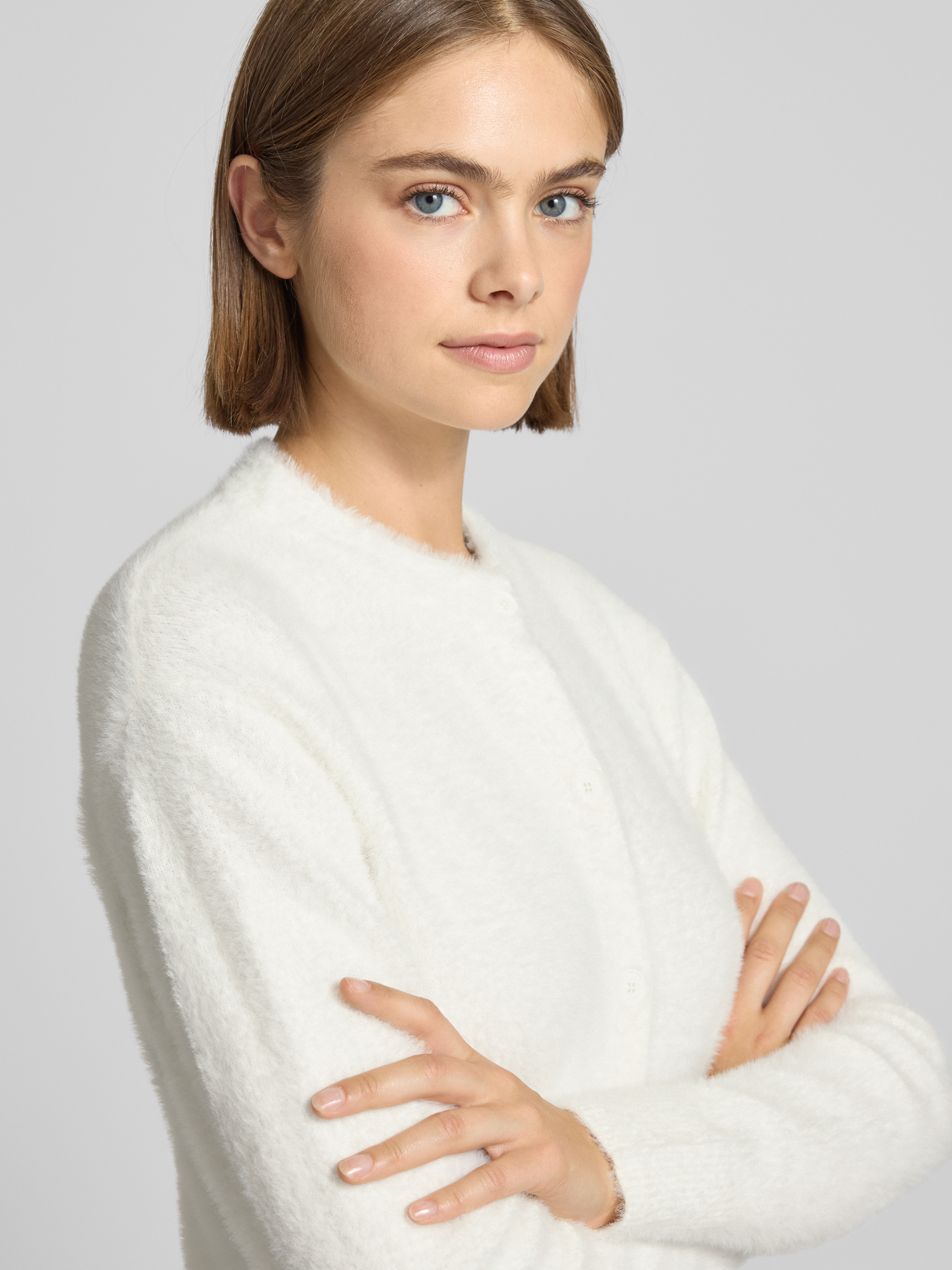 Kurtka z dzianiny o kroju regular fit z wyhaftowanym logo model ‘SFURRY’ - biały